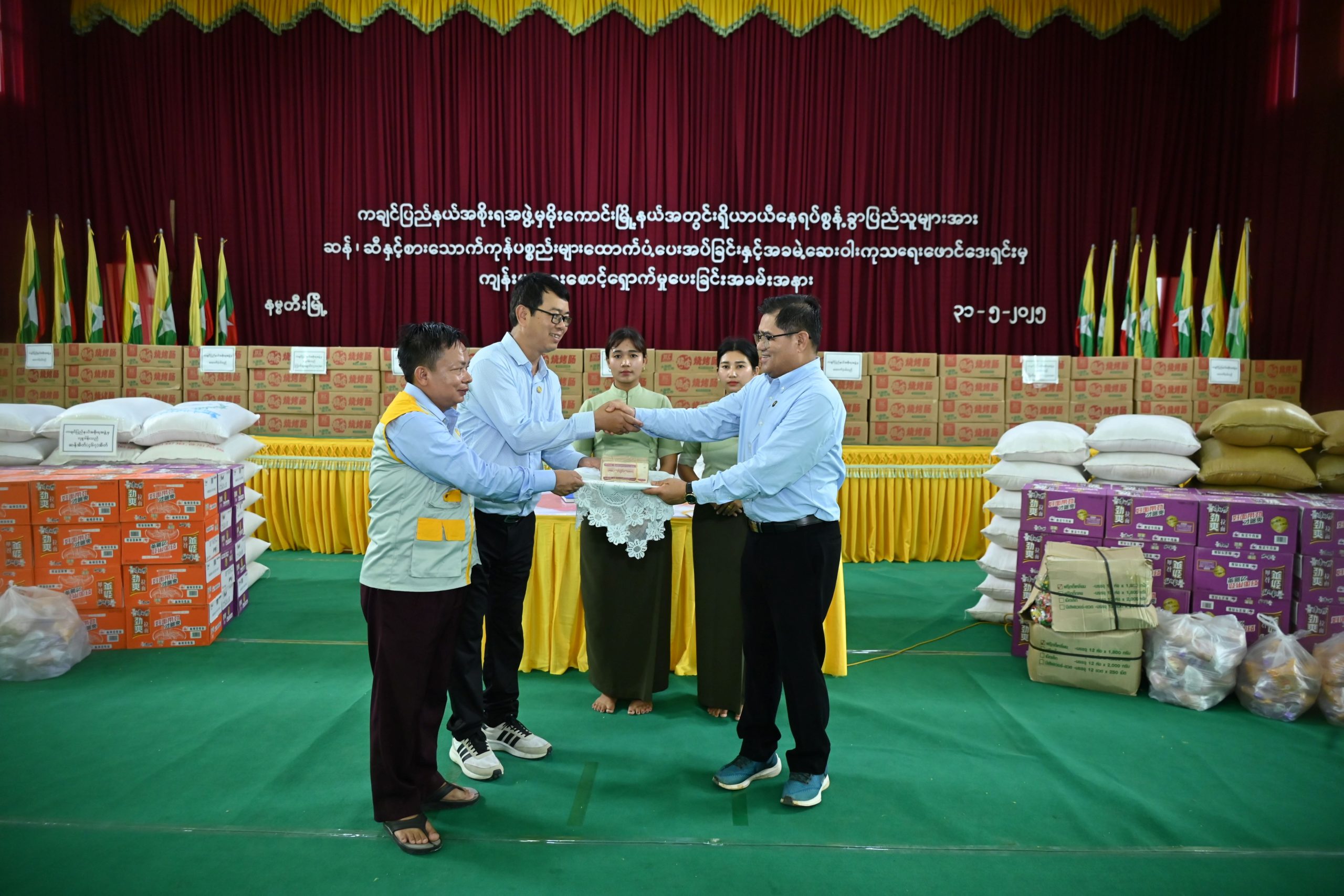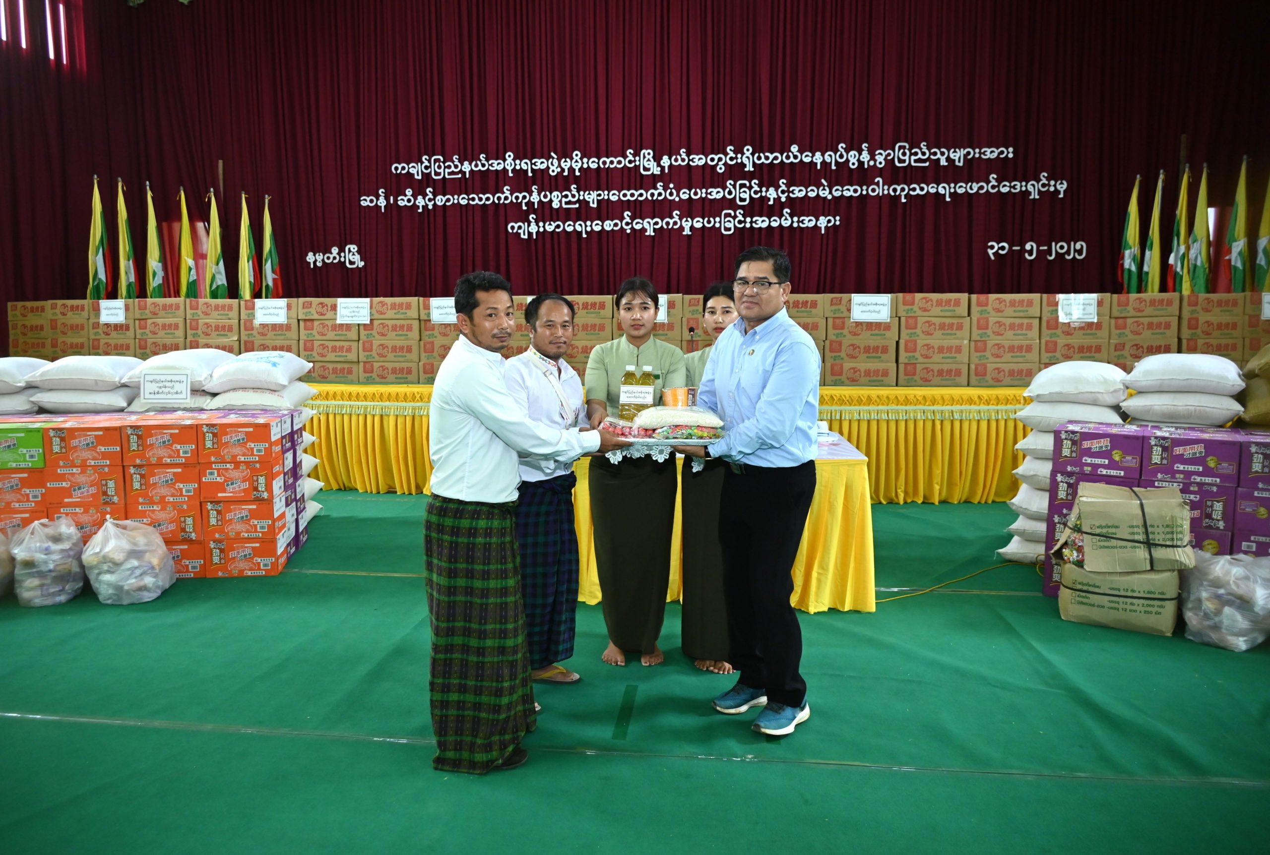 ဆက်လက်၍ ပြည်နယ်ဝန်ကြီးချုပ်နှင့်ပြည်နယ်အစိုးရအဖွဲ့ဝင် ဝန်ကြီးများဖြစ်သည့် စီးပွားရေးရာဝန်ကြီး ဦးမျိုးဆွေ၊ သယံဇာတရေးရာဝန်ကြီး ဦးတိန့်ဆောင်၊ လူမှုရေးရာဝန်ကြီး ဦးမိုးမင်းသိန်းနှင့် တာဝန်ရှိသူများက နမ္မတီးမြို့ရှိ အသင်းတော်အသီးသီးနှင့် ဆွေမျိုးနေအိမ်များတွင် ထပ်မံရောက်ရှိလာသော အိမ်ထောင်စု (၃၃၄)စု နှင့် ယခင်ရှိပြီးဖြစ်သည့် အိမ်ထောင်စု (၄၉၁)စု စုစုပေါင်း အိမ်ထောင်စု (၈၃၅)စုတို့အတွက် ဆန်အိတ် (၄၆၇)အိတ်၊ ဆီ (၃၄၄) ပိဿာနှင့် ကြက်အူချောင်းဖာ (၄၀၀) တို့အားလည်းကောင်း၊ ဟင်းသီးဟင်းရွက်မျိုးစေ့အိတ်များကိုလည်းကောင်း၊ ယာယီနေအိမ်အဆောက်အဦ ဆောက်လုပ်သည့် နမ္မတီးသကြားစက်ပိုင်မြေနေရာအတွက် ငွေကျပ် (၅၈) သိန်းကို လည်းကောင်း အသီးသီးပေးအပ်ခဲ့ကြသည်။