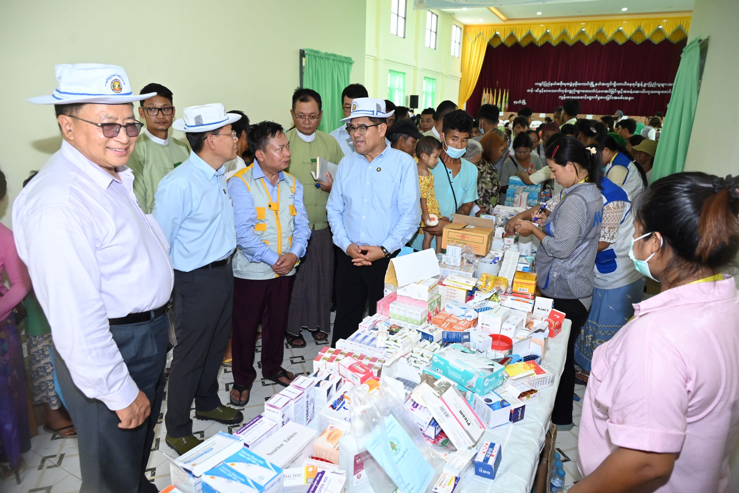 ယင်းနောက် အဆိုပါ မြို့တော်ခန်းမအတွင်း မြစ်ကြီးနားပြည်သူ့ဆေးရုံကြီး အထူးကုကွင်းဆင်းဆေးကုသရေးအဖွဲ့မှ အထူးကုဆရာဝန်ကြီးများ၊ ကျန်းမာရေးဝန်ထမ်းများနှင့် ပြည်နယ်အခမဲ့ဆေးဝါးကုသရေးဖောင်ဒေးရှင်းနှင့် နမ္မတီးမြို့၊ ဟိုပင်မြို့တို့မှ လူမှုပရဟိတအသင်းအဖွဲ့များ၏ ကူညီမှုဖြင့် အိမ်ထောင်စုများ၏ မိသားစုဝင်များ၊ သက်ကြီးဘိုးဘွားများ၊ ကလေးများအား အထွေထွေရောဂါစစ်ဆေးကုသပေးခြင်း၊ ဆေးဝါးများ အခမဲ့ပေးအပ်ခြင်းတို့ ဆောင်ရွက်မှုကို လှည့်လည်ကြည့်ရှု အားပေးခဲ့ကြသည်။