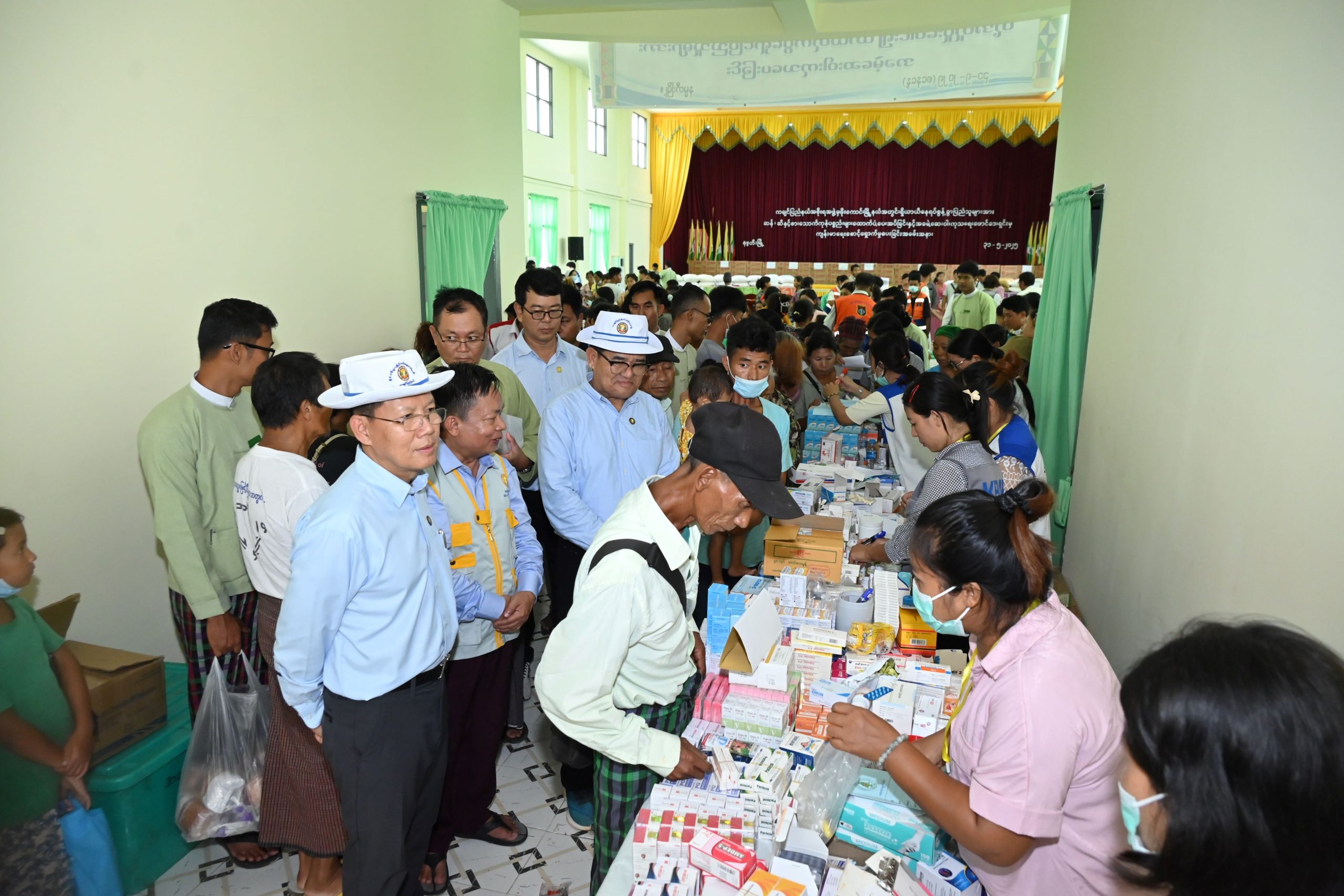 ယင်းနောက် အဆိုပါ မြို့တော်ခန်းမအတွင်း မြစ်ကြီးနားပြည်သူ့ဆေးရုံကြီး အထူးကုကွင်းဆင်းဆေးကုသရေးအဖွဲ့မှ အထူးကုဆရာဝန်ကြီးများ၊ ကျန်းမာရေးဝန်ထမ်းများနှင့် ပြည်နယ်အခမဲ့ဆေးဝါးကုသရေးဖောင်ဒေးရှင်းနှင့် နမ္မတီးမြို့၊ ဟိုပင်မြို့တို့မှ လူမှုပရဟိတအသင်းအဖွဲ့များ၏ ကူညီမှုဖြင့် အိမ်ထောင်စုများ၏ မိသားစုဝင်များ၊ သက်ကြီးဘိုးဘွားများ၊ ကလေးများအား အထွေထွေရောဂါစစ်ဆေးကုသပေးခြင်း၊ ဆေးဝါးများ အခမဲ့ပေးအပ်ခြင်းတို့ ဆောင်ရွက်မှုကို လှည့်လည်ကြည့်ရှု အားပေးခဲ့ကြသည်။