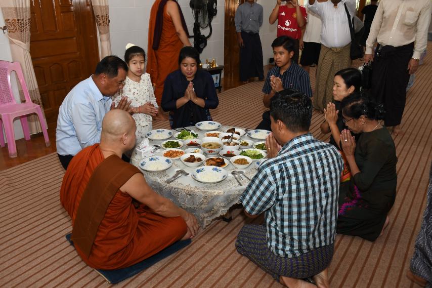 ထို့နောက် ပြည်နယ်တိုင်းရင်းသားရေးရာဝန်ကြီးနှင့် ၎င်းမိသားစုတို့က ဗန်းမော်ခရိုင်အတွင်းမှ ဘုန်းတော်ကြီးကျောင်းတိုက် (၁၉)တိုက်မှ တိုက်အုပ်ဆရာတော်တစ်ပါးလျှင် နဝကမ္မအလှူငွေအဖြစ် ငွေကျပ် (၁၀)သိန်းစီကို ဆက်ကပ်လှူဒါန်းခဲ့ကြကာ လှူဒါန်းမှုအစုစုတို့အတွက် ရေစက်ချတရားနာယူခဲ့ကြပြီး ကြွရောက်တော်မူကြသော ဆရာတော်၊ သံဃာတော်များအား နေ့ဆွမ်းဆက်ကပ် လှူဒါန်းခဲ့ကြကြောင်း သိရသည်။