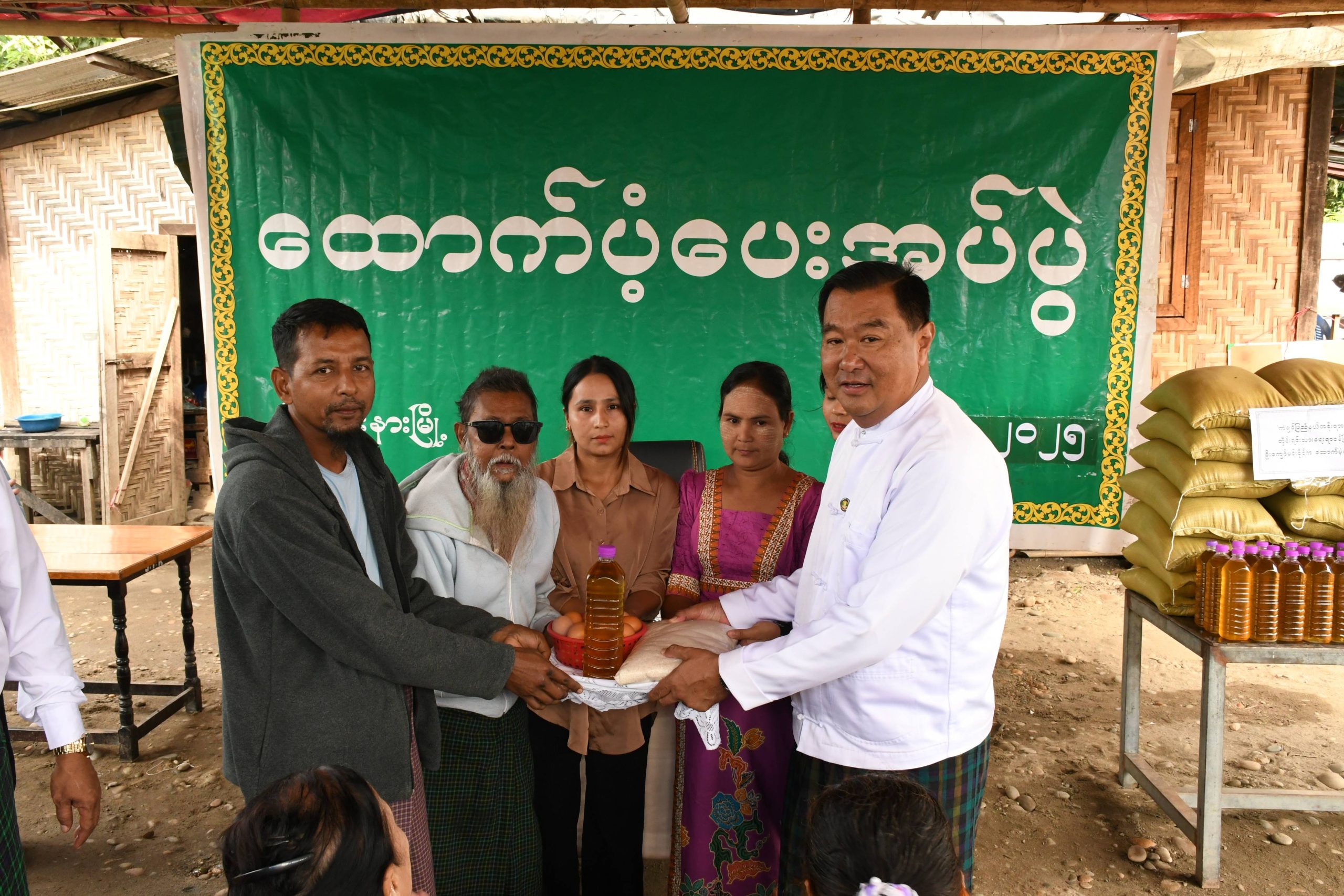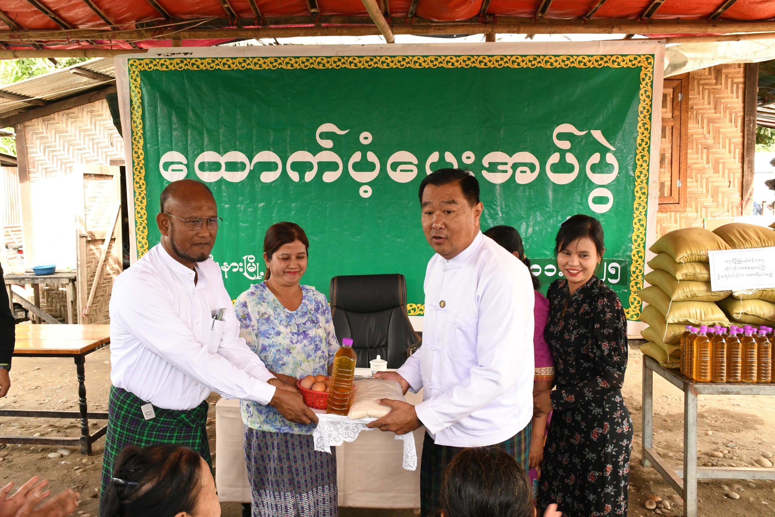 အလားတူ ရမ်ပူရပ်ကွက်၊ နယ်မြေ (၁၄)နှင့် နယ်မြေ (၁၅)အတွင်းရှိ ယာယီတိမ်းရှောင်စခန်း (၂)နှင့် (၃)သို့လည်း သွားရောက်ပြီး စခန်းများအတွင်းရှိ အိမ်ထောင်စုများနှင့် ရင်းရင်းနှီးနှီးတွေ့ဆုံကာ စခန်း (၂)အတွင်းရှိ အိမ်ထောင်စု (၄၄) စုတို့အတွက် ဆန် (၆)ပြည်ပါ အိတ် (၄၄)အိတ်၊ ဆီ (၆၀)ကျပ်သားဘူး (၄၄)ဘူးနှင့် ကြက်ဥများကိုလည်းကောင်း၊ စခန်း (၃) အတွင်းရှိ အိမ်ထောင်စု (၁၀၀)တို့အတွက် ဆန် (၆)ပြည်ပါအိတ် (၁၀၀)၊ ဆီ (၆၀)ကျပ်သားဘူး (၁၀၀)နှင့် ကြက်ဥများကို ထောက်ပံ့ပေးအပ်ခဲ့ပြီး ပြည်နယ်ဝန်ကြီးက ယခုလိုမိသားစုများအတွက် အလျဉ်းသင့်သလို ထောက်ပံ့ပေးနိုင်ရေး စီစဉ်ဆောင်ရွက်သွားမည်ဖြစ်ပြီး နိုင်ငံတော်မှလည်း လစဉ်ငွေကျပ် ၂၀၀၀၀ နှုန်းဖြင့် ပံ့ပိုးဆောင်ရွက်လျက်ရှိပါကြောင်း ပြောကြားခဲ့ကာ သက်ရွယ်ကြီးသည့် ဘိုး/ဘွားများအတွက် ချီးမြှင့်ထောက်ပံ့ငွေများကို ပေးအပ်ခဲ့သည်။