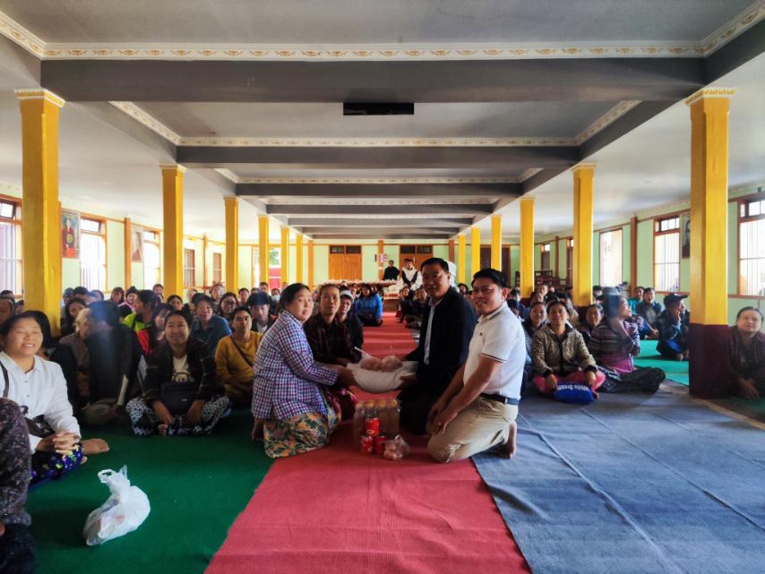 အလားတူ ဗန်းမော်ခရိုင်မှ ယာယီနေရပ်စွန့်ခွာ၍ သီတင်းသုံးနေထိုင်လျက်ရှိသော ဆရာတော် / သံဃာတော်များနှင့် သီလရှင်ဆရာကြီးတို့အား န၀ကမ္မ အလှူငွေ ၁၆ သိန်းနှင့် ဆေးပဒေသာပင် အတွက် ၁၀ သိန်းတို့အား ပေးအပ်လှူဒါန်းခဲ့ကြောင်းနှင့် သီရိမင်္ဂလာကျောင်းတိုက်အတွင်း အိမ် ထောင်စုများ ယာယီနေထိုင်နိုင်ရေးအတွက် ရွက်ဖျင်မိုးကာတဲများ ဆောက်လုပ်နေရာချထားပေးနေမှု ကို ကြည့်ရှုစစ်ဆေးခဲ့ကြကြောင်း သိရသည်။