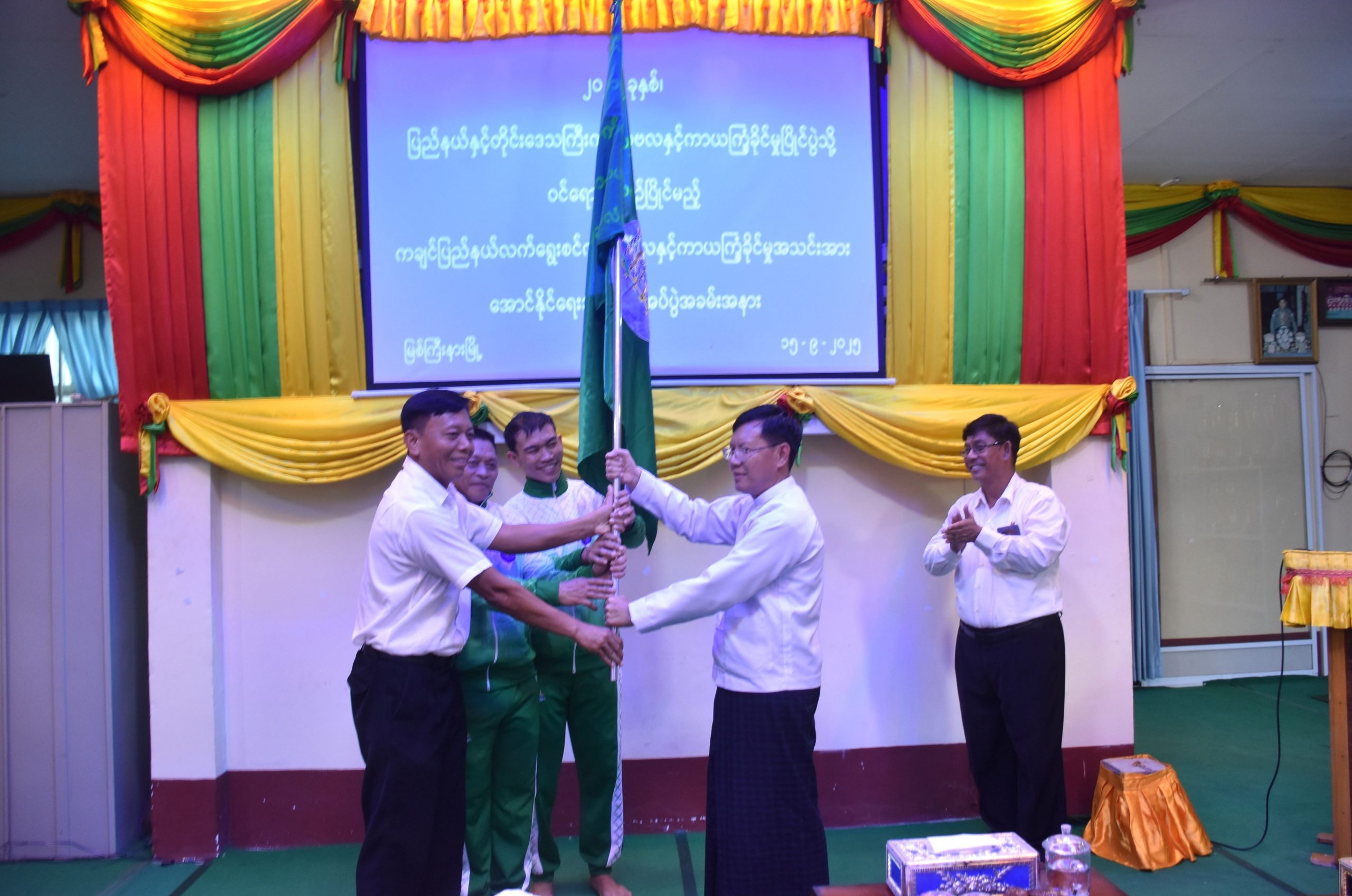 ယင်းနောက် ပြည်နယ်လက်ရွေးစင်အသင်းနည်းပြ ဦးဇော်မြင့်စိန်က အောင်နိုင်ရေးအတွက် ကြိုတင်ပြင်ဆင်လေ့ကျင့်ခဲ့မှုအခြေအနေများနှင့် ပြိုင်ပွဲဝင်ရောက်ယှဉ်ပြိုင်သွားမည့် အစီအမံများကို ရှင်းလင်းတင်ပြပြီး ပြည်နယ်ဝန်ကြီးက လက်ရွေးစင်အသင်းအတွက် အောင်နိုင်ရေးအလံနှင့် ချီးမြှင့်ထောက်ပံ့ငွေများကို အုပ်ချုပ်သူ၊ နည်းပြနှင့် အားကစားသမားများထံ ပေးအပ်ချီးမြှင့်ရာ အသင်းအုပ်ချုပ်သူက ကျေးဇူးတင်စကားနှင့် အောင်နိုင်ရေးအတွက် ကတိစကားပြောကြားခဲ့ကြောင်း သိရဿည်။
