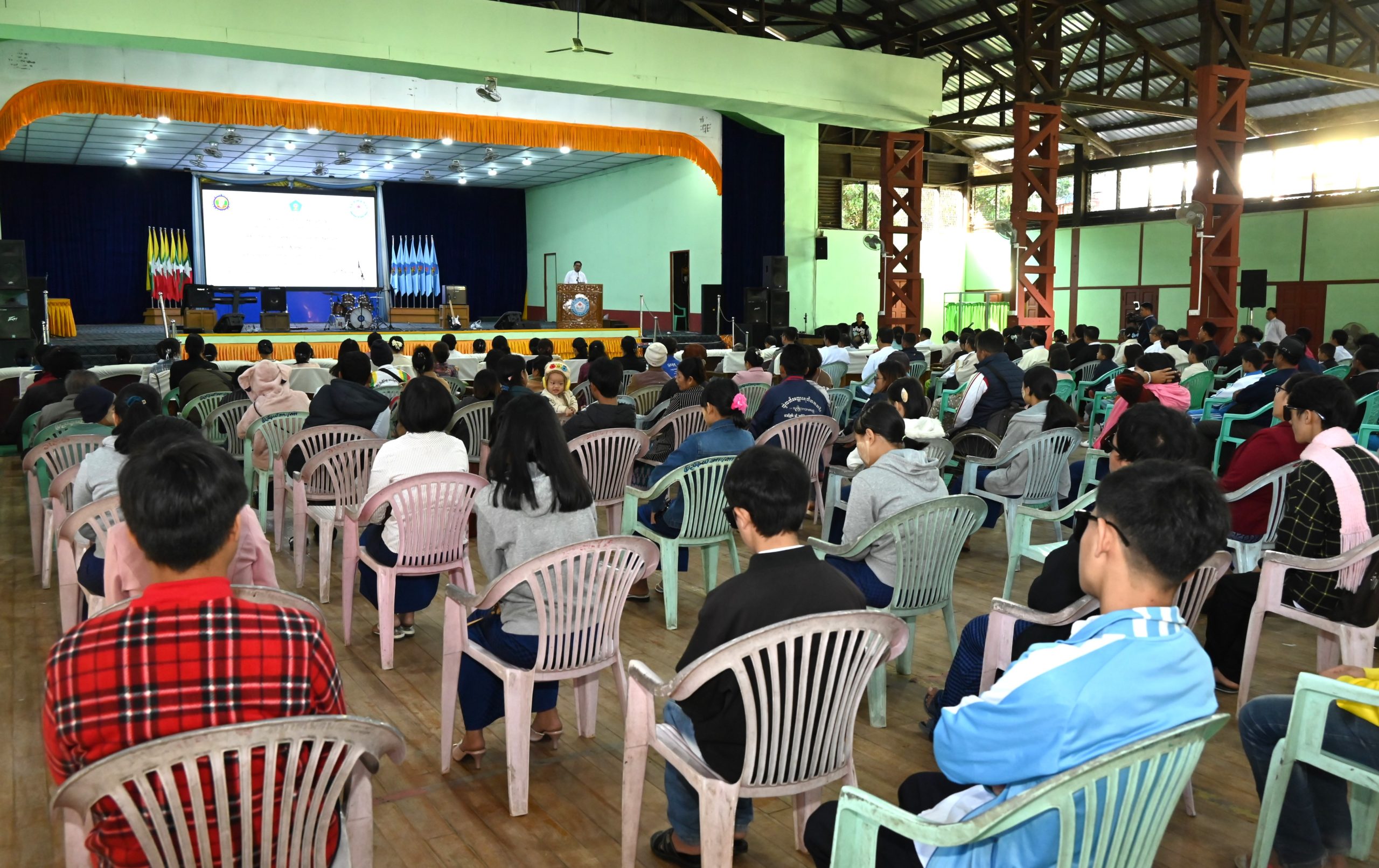 ၂၀၂၄ ခုနှစ် ဒီဇင်ဘာ ၃ ရက်နေ့တွင် ကျရောက်သည့် အပြည်ပြည်ဆိုင်ရာမသန်စွမ်းသူများနေ့ အထိမ်းအမှတ် အခမ်းအနားကို ကချင်ပြည်နယ်၊ မြစ်ကြီးနားမြို့ ပြည်သူ့အားကစားကွင်းအတွင်းရှိ မိုးလုံလေလုံအားကစားခန်းမ၌ ကျင်းပပြုလုပ်ရာ အခမ်းအနားကို ပြည်နယ်မသန်စွမ်းသူများအသင်း အဖွဲ့က အဖွင့်တေးသီချင်းဖြင့် သီဆိုဖျော်ဖြေဖွင့်လှစ်ပေးသည်။