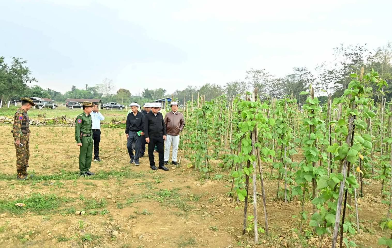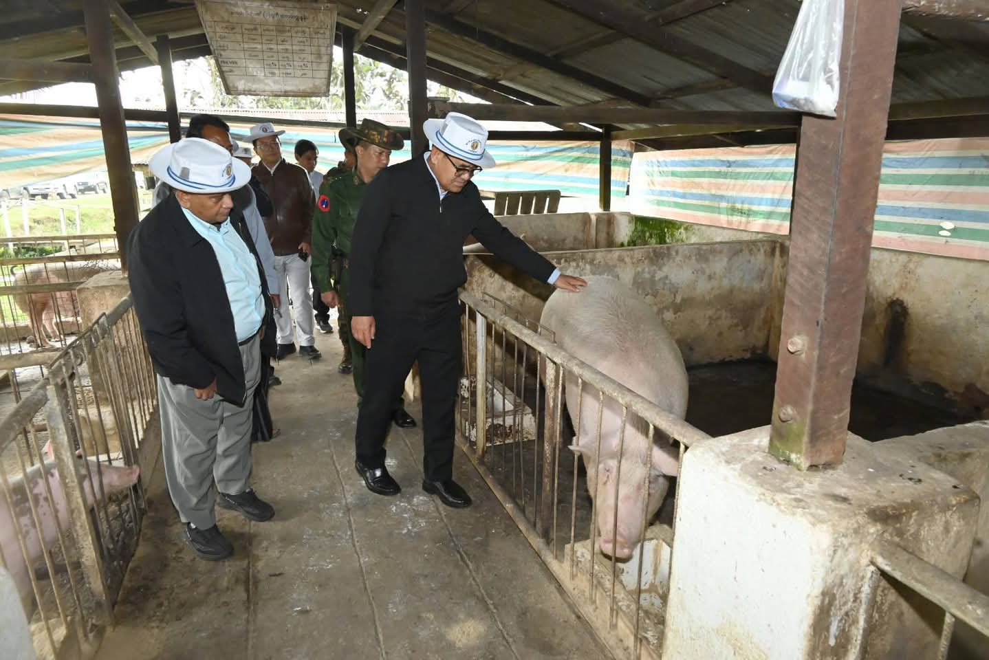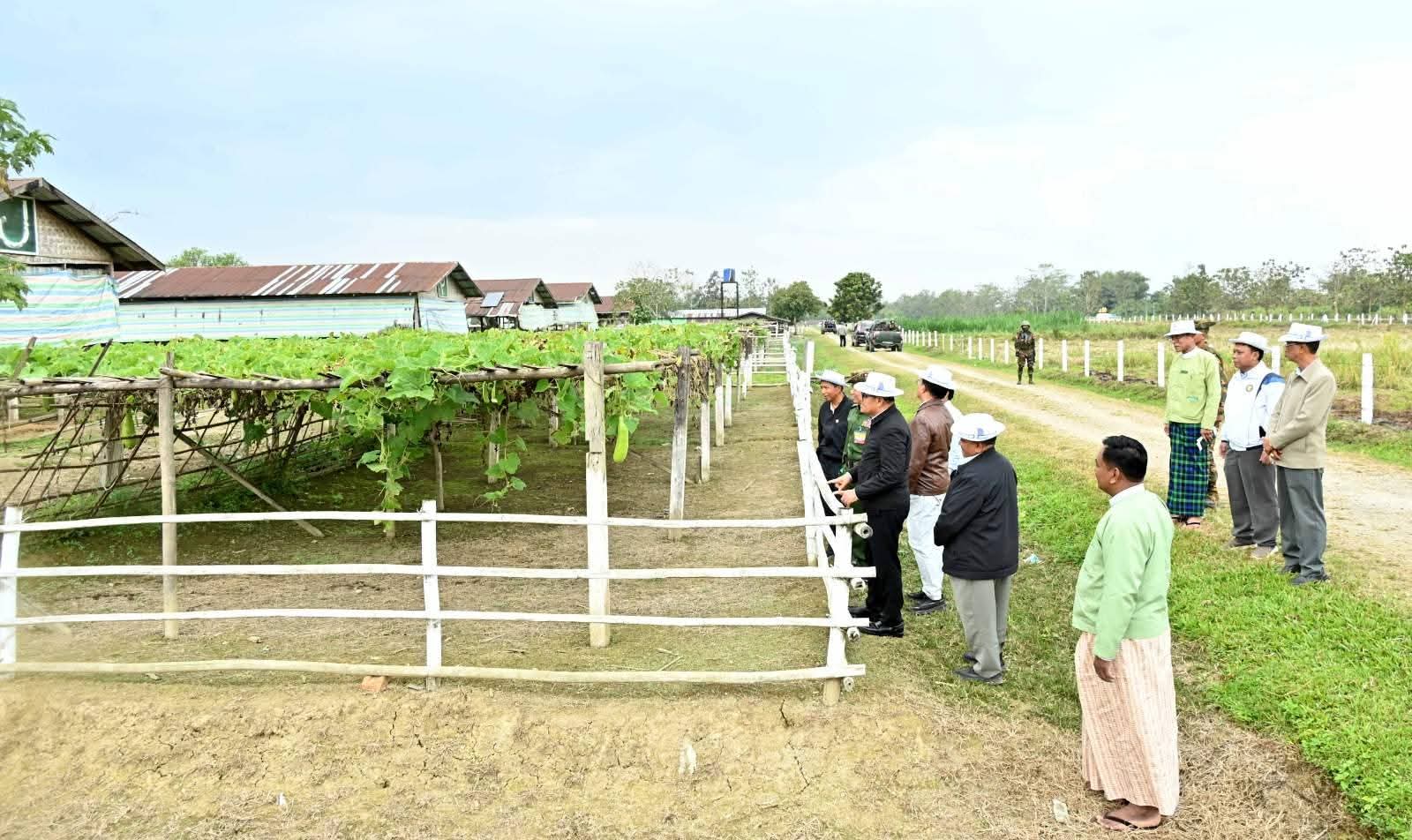 ထိုမှတစ်ဆင့် တနိုင်းမြို့အဝင် ကင်ဆားရာရပ်ကွက်အတွင်းရှိ ဒေသကွပ်ကဲမှုစစ်ဌာနချုပ် (တနိုင်း)၏ တပ်နယ်ဘက်စုံစိုက်ပျိုးမွေးမြူရေးခြံသို့ သွားရောက်ပြီး ခြံဝင်းအတွင်းရှိကြက်ခြံများ၌ အသားစားကြက်များ မွေးမြူထားရှိမှုအခြေအနေများကို လည်းကောင်း၊ ဘူးသီးပင်များ စိုက်ပျိုးအောင်မြင်ဖြစ်ထွန်းလျက်ရှိသည့် အခြေအနေများကိုလည်းကောင်း၊ နို့စားနွားများ စနစ်တကျ မွေးမြူထားရှိမှုအခြေအနေများနှင့် နွားစာအဖြစ် နေဗွီယာမြက်များ စိုက်ပျိုးထားရှိမှုများကိုလည်းကောင်း၊ ဥစားကြက်များ စနစ်တကျ မွေးမြူထားရှိမှု၊ အသားတိုးဝက်များ မွေးမြူထားရှိမှုနှင့် ခြံဝင်းအတွင်း တိုင်ထောင်ပဲပင်များ စိုက်ပျိုးဖြစ်ထွန်း အောင်မြင်နေမှုအခြေအနေများကိုလည်းကောင်း လှည့်လည်ကြည့်ရှုစစ်ဆေးပြီး မွေးမြူရေးနှင့် ကုသရေးဦးစီး ဌာနက အခမဲ့ပေးအပ်သည့် တိရစ္ဆာန်အစာအိတ်များနှင့်မွေးမြူရေးအထောက်အကူပြုဆေးဝါးများကို ပေးအပ်ချီးမြှင့်ကာ တပ်နယ်ရိက္ခာအပြင် ဒေသတွင်းရောင်းချပေးနိုင်မှုအခြေအနေများကို မေးမြန်းဆွေးနွေးခဲ့ကြကာ လိုအပ်သည့်မွေးမြူရေးဆိုင်ရာ နည်းပညာများနှင့် စိုက်ပျိုးရေးအတွက် မျိုးကောင်းမျိုးသန့်မျိုးစေ့များ ကူညီပေးနိုင်ရေး ဌာနဆိုင်ရာတာဝန်ရှိသူများနှင့် ပေါင်းစပ်ဆောင်ရွက်ပေးခဲ့ကြောင်း သိရသည်။