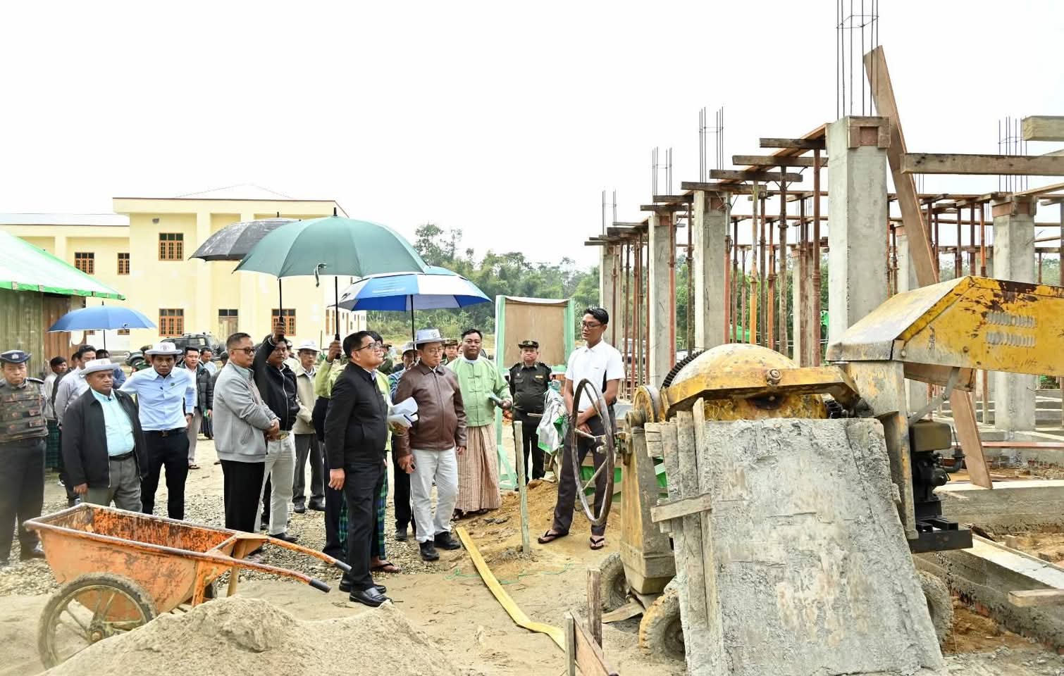 ထို့သို့ ကွင်းဆင်းစစ်ဆေးရာတွင် လုပ်ငန်းခွင်အတွင်းရှိ ရှင်းလင်းဆောင်၌ (၂)ခန်းတွဲ (၃)ထပ် အရာထမ်းအိမ်ရာ တည်ဆောက်ခြင်းလုပ်ငန်းများနှင့်စပ်လျဉ်း၍ တင်ဒါအောင်မြင်ခဲ့သည့် မနောရွှေစံအိမ်ကုမ္ပဏီမှ တာဝန်ရှိသူ၏ ရှင်းလင်းတင်ပြမှုများအပေါ် ပြည်နယ်ဝန်ကြီးချုပ်က တည်ဆောက်ရေး လုပ်ငန်းသုံးပစ္စည်းများ သယ်ယူရရှိမှုအခြေအနေများနှင့် လိုအပ်ချက်များကို မေးမြန်းဆွေးနွေးကာ သတ်မှတ်ဘဏ္ဍာနှစ်အတွင်း စံချိန်စံညွှန်းနှင့်အညီ သတ်မှတ်ချိန်ပြီးစီးအောင် ဆောင်ရွက်ရေးဌာနဆိုင်ရာတာဝန်ရှိသူများနှင့် ပေါင်းစပ်ညှိနှိုင်းဆောင်ရွက်ပေးခဲ့ကာ ၂၀၂၄-၂၀၂၅ ဘဏ္ဍာရေးနှစ် ပြည်နယ်ငွေလုံးငွေရင်း ရန်ပုံငွေကျပ်သန်း (၅၇၉)သန်းဖြင့် တည်ဆောက်လျက်ရှိသည့် (၂)ခန်းတွဲ (၃)ထပ် RCC ဝန်ထမ်းအိမ်ရာ အဆောက်အဦသစ်တည်ဆောက်နေမှုအခြေအနေများကို လှည့်လည်ကြည့်ရှုစစ်ဆေးခဲ့ကြသည်။