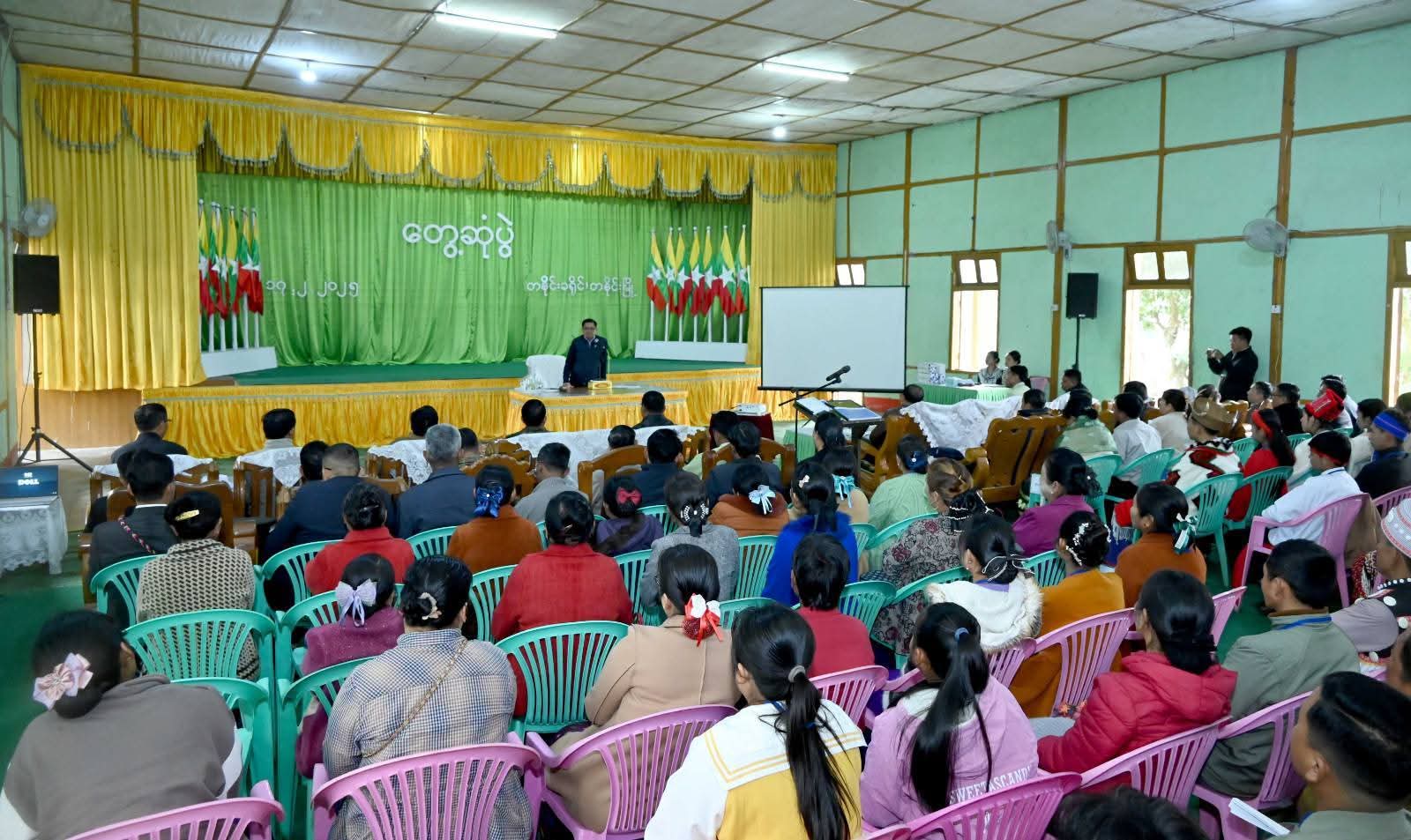 ထို့နောက် ခရိုင်စီမံအုပ်ချုပ်ရေးအဖွဲ့ ဥက္ကဋ္ဌ ဦးမိုးဇော်လင်းက တနိုင်းဒေသဖွံ့ဖြိုးတိုးတက်ရေး၊ ဆန်နှင့် ဆီဖူလုံရေးအတွက် သီးထပ်စိုက်စွမ်းအား တိုးမြှင့်ဆောင်ရွက်နိုင်ရေး နိုင်ငံ့စီးပွားမြှင့်တင်ရေး ရန်ပုံငွေမတည်မှုဖြင့် ဆောင်ရွက်လျက်ရှိသည့် လုပ်ငန်းများ၊ ဆန်စက်၊ ဆီစက်များ တိုးချဲ့တည်ထောင်နိုင်ရေး ဆောင်ရွက်ထားရှိမှုအခြေအနေများကို ရှင်းလင်းတင်ပြပြီး မြို့နယ်စီမံအုပ်ချုပ်ရေးအဖွဲ့ဥက္ကဋ္ဌက မြို့နယ်ဖွံ့ဖြိုးတိုးတက်ရေးအတွက် လိုအပ်ချက်များကို ရှင်းလင်းတင်ပြသည်။