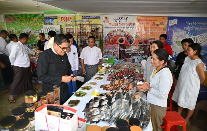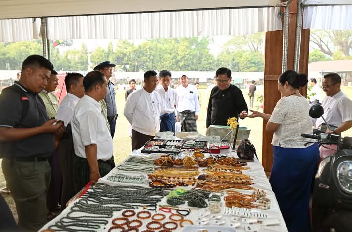 ထို့နောက် ပြည်နယ်ဝန်ကြီးချုပ်သည် ပြည်နယ်ဝန်ကြီးများ၊ ဌာနဆိုင်ရာတာဝန်ရှိသူများနှင့်အတူ မြစ်ကြီးနားမြို့ စီတာပူရပ်ကွက်အတွင်း ကျင်းပလျက်ရှိသော မြန်မာနှစ်သစ်အကြို MSME ပြပွဲနှင့် ဈေးရောင်းပွဲတော်သို့ သွားရောက်ပြီး ပွဲတော်အတွင်း ပြသရောင်းချလျက်ရှိသော ဒေသထွက် MSME ထုတ်ကုန်ပစ္စည်းများ ရောင်းချနိုင်မှုအခြေအနေများကို မေးမြန်းအားပေးခဲ့ကြပြီး ဒေသထွက်စိုက်ပျိုးရေးထွက်ကုန် ဟင်းသီးဟင်းရွက်များအား ပညာရေး၊ ကျန်းမာရေးဌာန ဝန်ထမ်းများ အတွက် ဝယ်ယူပေးအပ်ခဲ့ကာ ဆိုင်ခန်းများအား လှည့်လည်ကြည့်ရှုအားပေးခဲ့ကြကြောင်း သိရသည်။