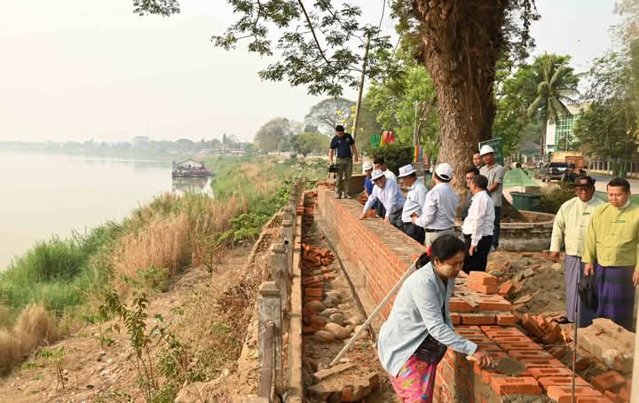 ကချင်ပြည်နယ်အစိုးရအဖွဲ့အနေဖြင့် မြစ်ကြီးနားမြို့အား ဧရာဝတီမြစ်ရေကြီးမြှင့်မှုမှ ကြိုတင်ကာကွယ်နိုင်ရေး ကျောက်စီရေထိန်းနံရံ၊ ရေတံခါးများနှင့် ဧရာဝတီမြစ်ကြောင်း ရှင်းလင်းရေးလုပ်ငန်း စီမံကိန်းများအား ဆောင်ရွက်လျက်ရှိရာ ပြည်နယ်ဝန်ကြီးချုပ် ဦးခက်ထိန်နန်သည် ဧပြီ ၃ ရက် နံနက် ၈ နာရီက မြစ်ကြီးနားမြို့ပေါ်ရှိ မြစ်ရေကာကွယ်ရေးလုပ်ငန်းများ ဆောင်ရွက်နေမှုကို တာဝန်ရှိသူများနှင့်အတူ လှည့်လည်ကြည့်ရှုစစ်ဆေးခဲ့ကြသည်။