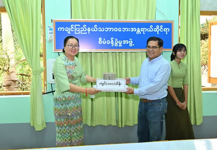 ယင်းနောက် ပြည်နယ်အစိုးရအဖွဲ့ရုံး၊ ခါကာဘိုရာဇီခန်းမ၌ ဖွင့်လှစ်ထားသော ကချင်ပြည်နယ်သဘာဝဘေးအန္တရာယ်ဆိုင်ရာစီမံခန့်ခွဲမှုအဖွဲ့ရုံး၌ မြန်မာနိုင်ငံအတွင်းရှိ အင်အားအလွန်ပြင်းထန် သော ငလျင်ဘေးဒဏ်ကို ထိခိုက်ခံစားခဲ့ရသော ဒေသများမှ ပြည်သူများအတွက် အလှူငွေပေးအပ် လှူဒါန်းပွဲသို့ တက်ရောက်ပြီး ပြည်နယ်ဝန်ကြီးချုပ်က ယခုလို ငလျင်ဘေးဒဏ်ခံစားနေရသော မိမိတို့ ညီအကိုမောင်နှမများအတွက် တတ်နိုင်သလောက် လာရောက်လှူဒါန်းမှုကို ကချင်ပြည်နယ်သူ/ ပြည်နယ်သားများကိုယ်စား အထူးပင်ဝမ်းမြောက်ဂုဏ်ယူပါကြောင်း ပြောကြားပြီး အလှူရှင် ဦးတင်အောင်နှင့် ဒေါ်နန်းညွှန်စိန်မိသားစုမှ လှူုဒါန်းသည့် အလှူငွေကျပ်သိန်း ၁၀၀ နှင့် ရွှေစွန်သိုက်သတ္တု တူးဖော်ရေးကုမ္ပဏီမှ လှူဒါန်းသည့် အလှူငွေကျပ်သိန်း ၁၀၀ လှူဒါန်းမှုအား လက်ခံရယူခဲ့သည်။