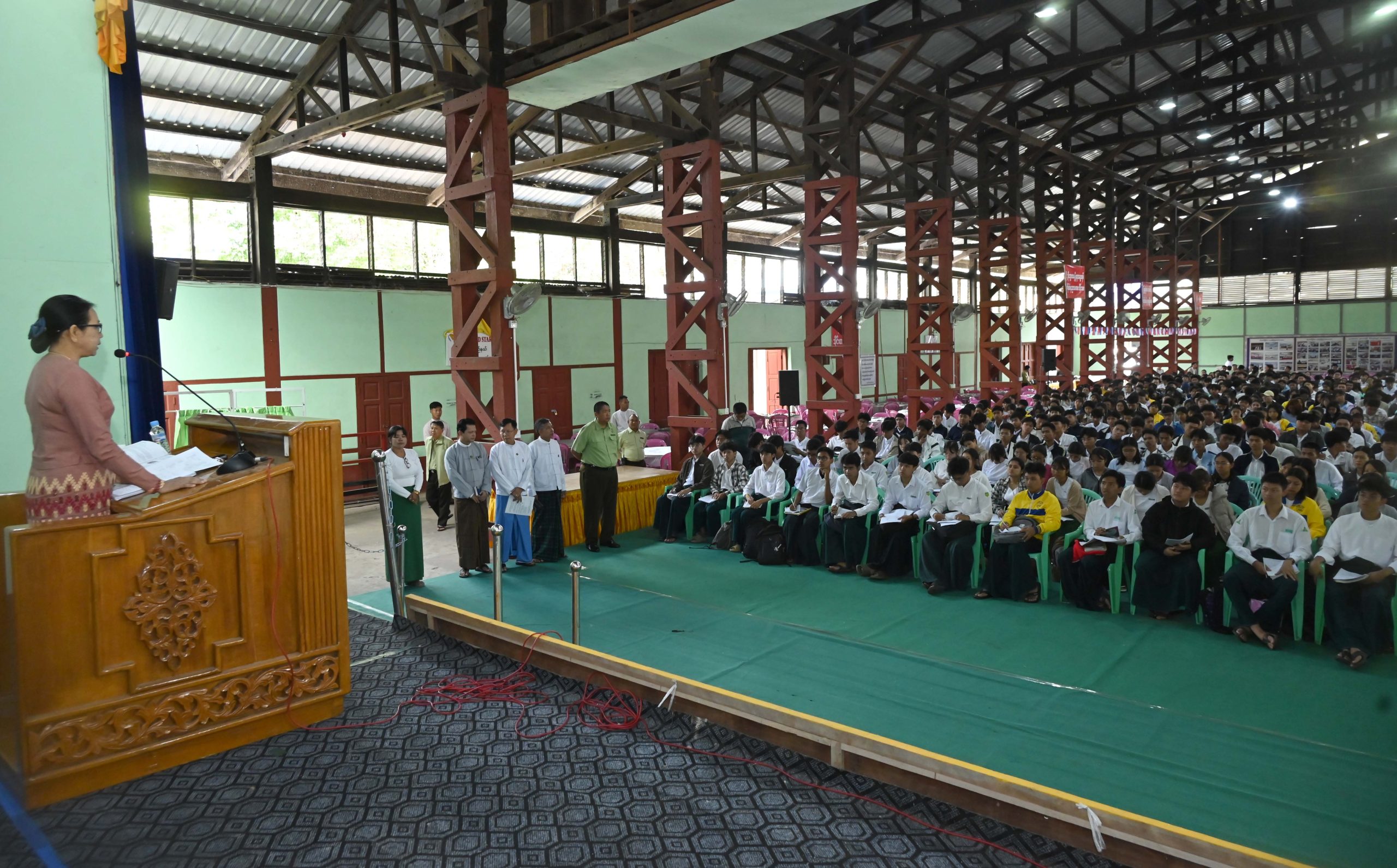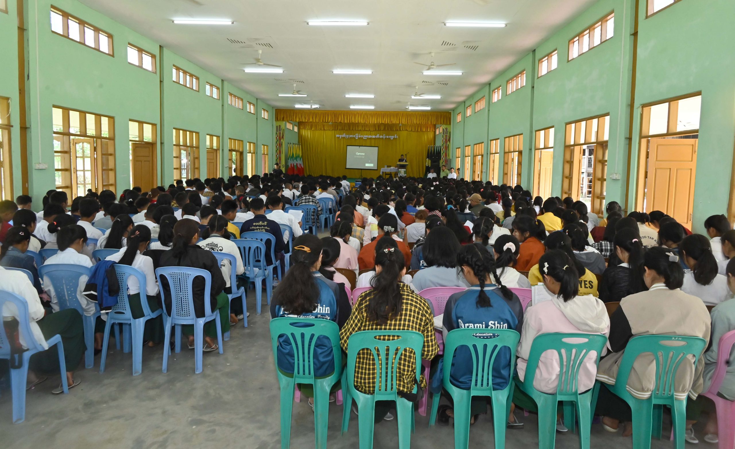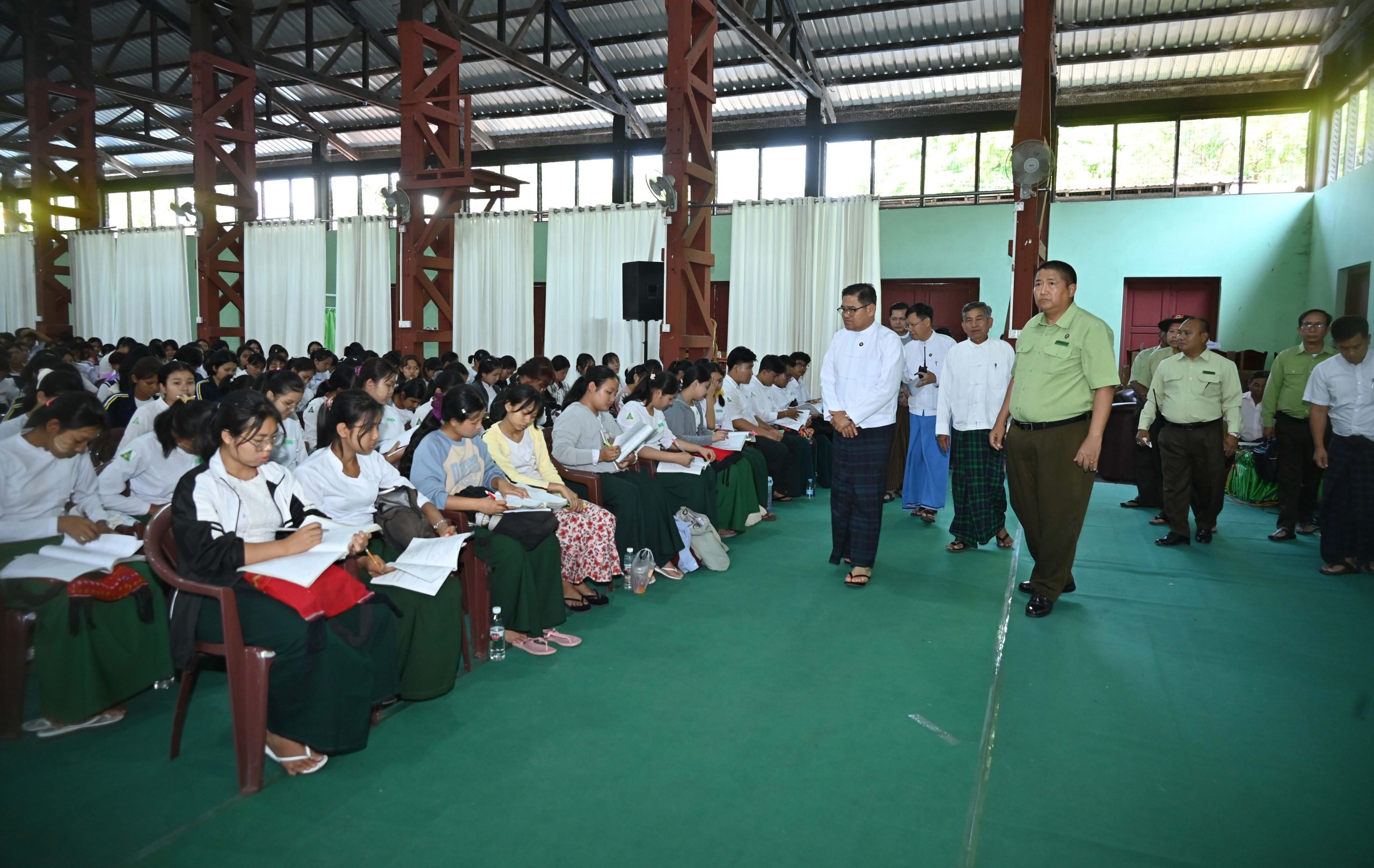 ထိုမှတစ်ဆင့် ပြည်သူ့အားကစားကွင်းအတွင်း မိုးလုံလေလုံအားကစားခန်းမ၌ မြစ်ကြီးနား၊ ဝိုင်းမော်၊ဗန်းမော်၊ချီဖွေမြို့နယ်များနှင့် ကိုယ်ပိုင်အထက်တန်းကျောင်း စုစုပေါင်း ကျောင်း (၁၃) ကျောင်းမှ Grade-12 ကျောင်းသား/ ကျောင်းသူ စုစုပေါင်း ၉၈၅ ဦးတို့အား Face To Face ပုံစံဖြင့် တက်ကြွစွာ ပြန်လည်လေ့ကျင့်သင်ကြားနေမှုများကို လိုက်လံကြည့်ရှုအားပေးခဲ့ကြသည်။