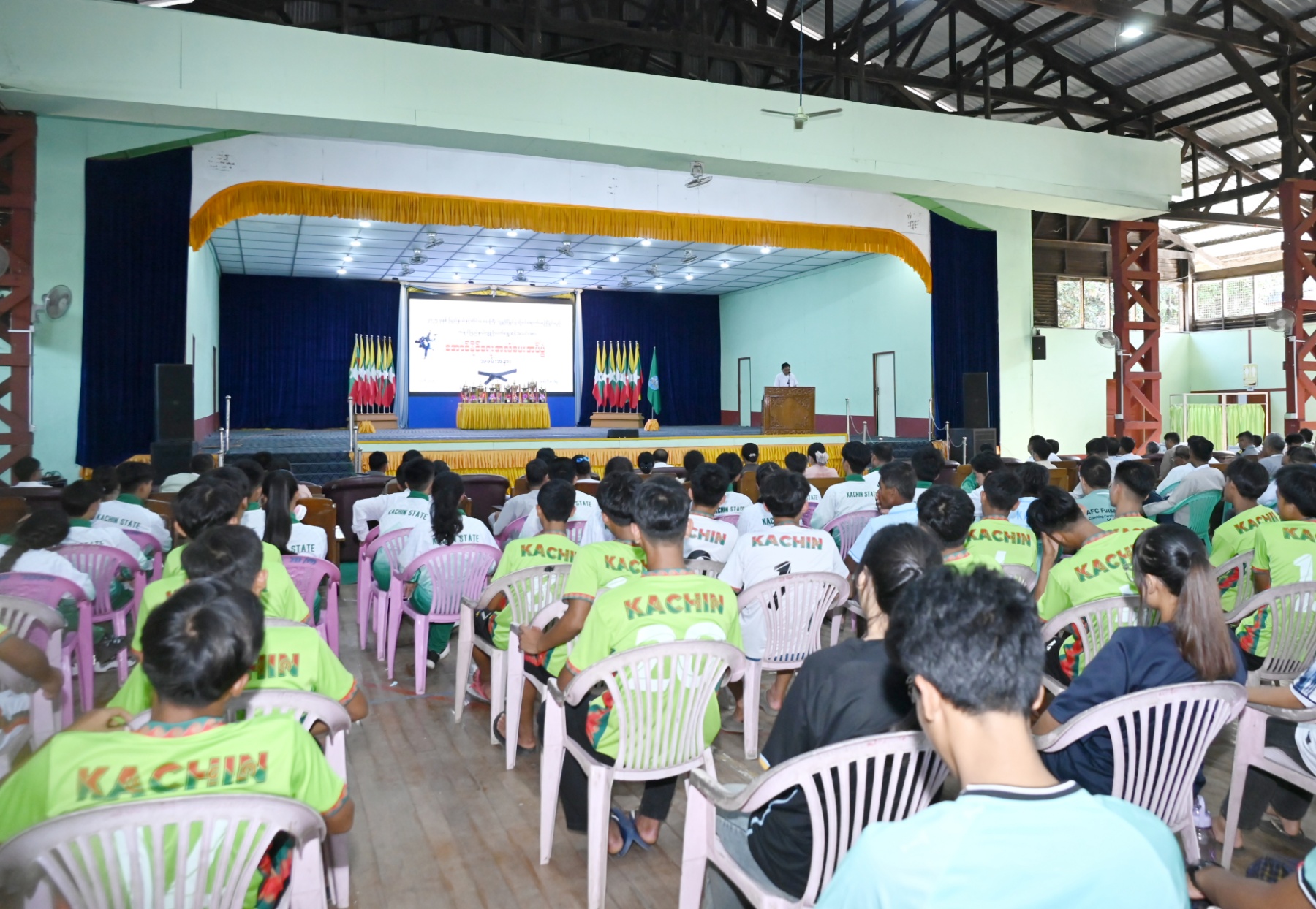 ယင်းနောက် ညနေ ၃ နာရီတွင် မြစ်ကြီးနားမြို့ မိုးလုံလေလုံအားကစားခန်းမ၌ ကျင်းပပြုလုပ်သော AFC Futsal Level-1 Coaching Certificate Course 2025 သင်တန်းဆင်းပွဲနှင့် ၂၀၂၅ ခုနှစ်၊ တိုင်းဒေသကြီးနှင့် ပြည်နယ် ဂျူဒိုအားကစားပြိုင်ပွဲများသို့ သွားရောက်ယှဉ်ပြိုင်ကြမည့် ပြည်နယ်လက်ရွေးစင်ဂျူဒိုအသင်းအား အောင်နိုင်ရေးအလံပေးအပ်ပွဲ အခမ်းအနားကို တက်ရောက်ခဲ့ကြသည်။