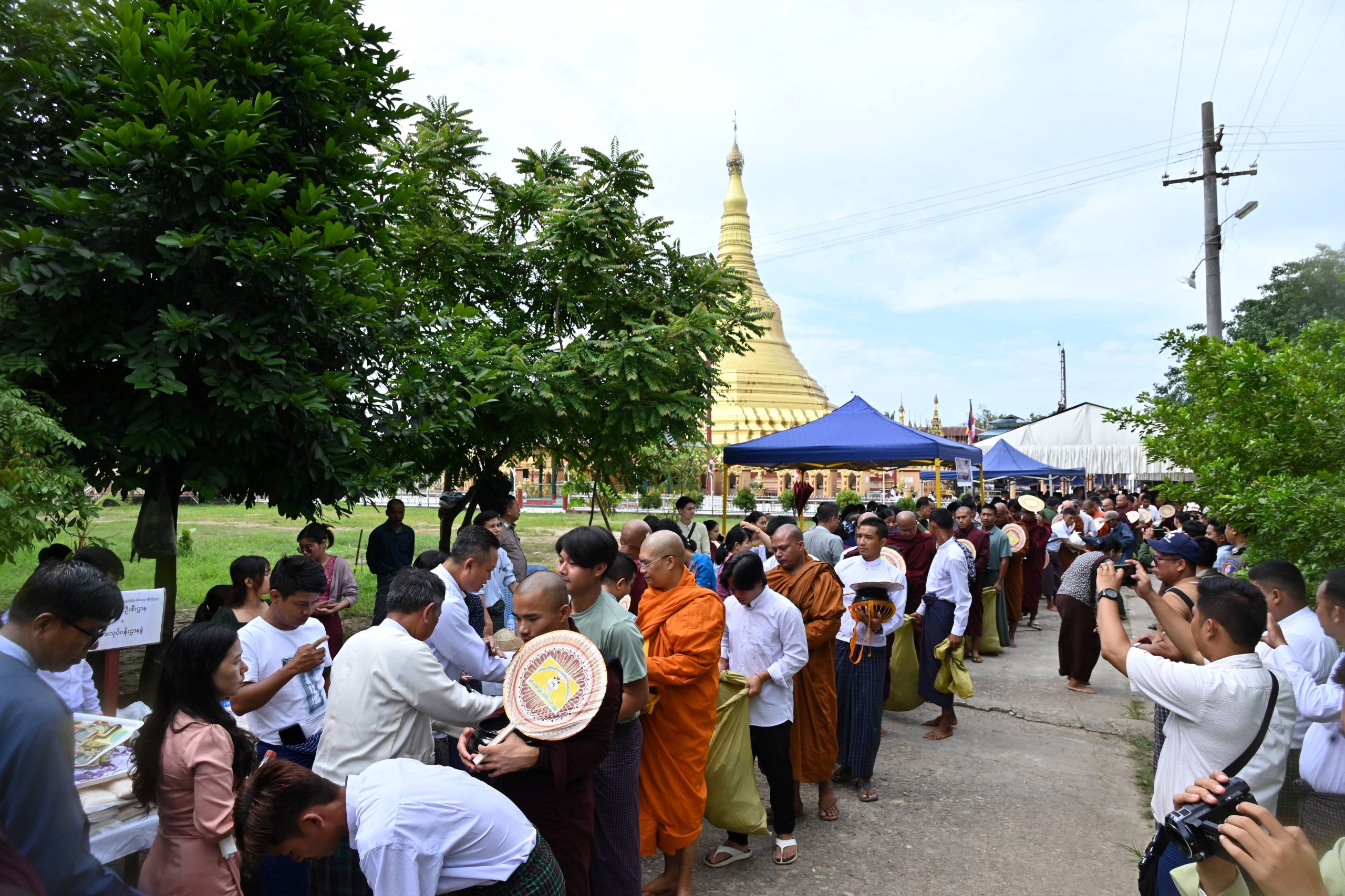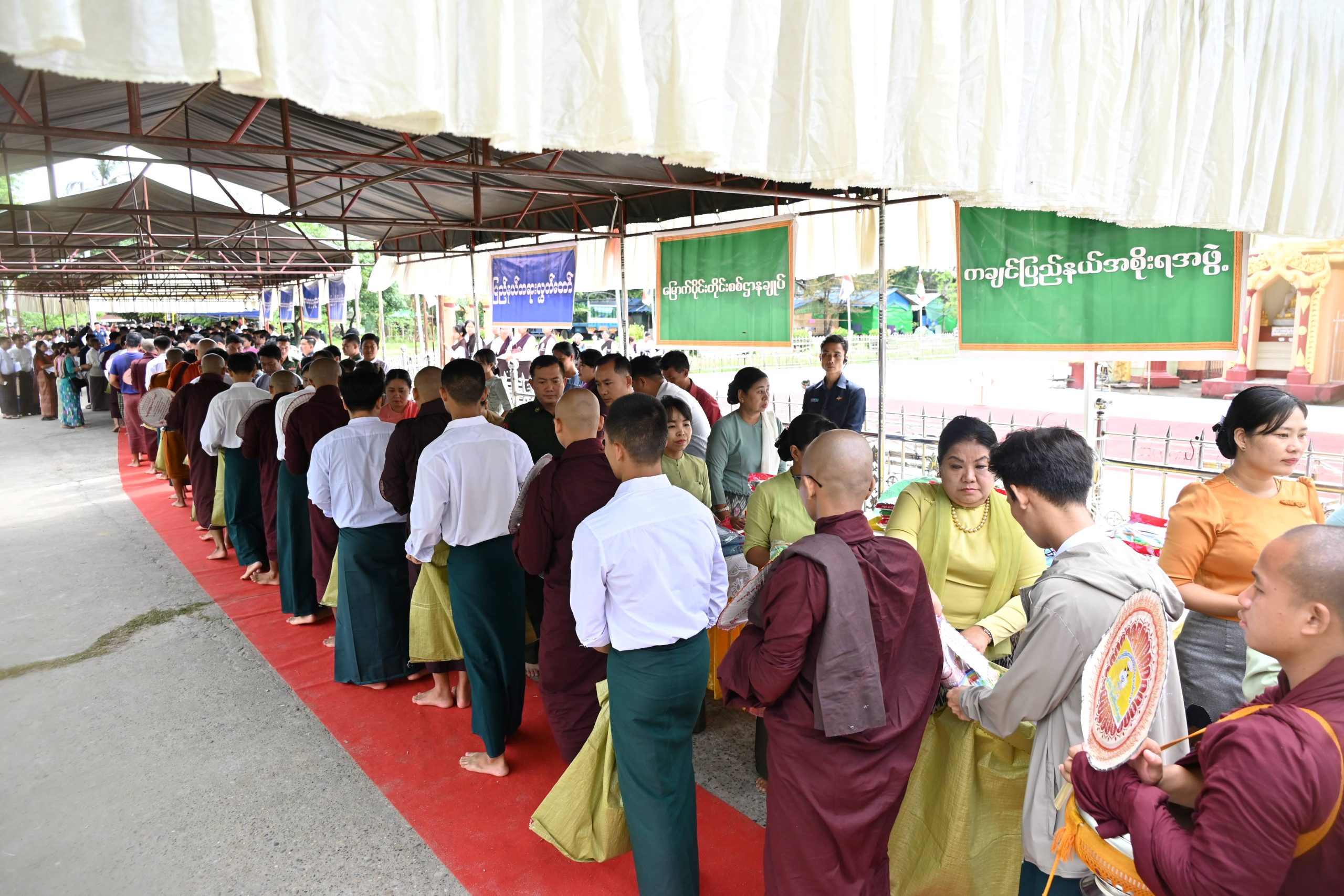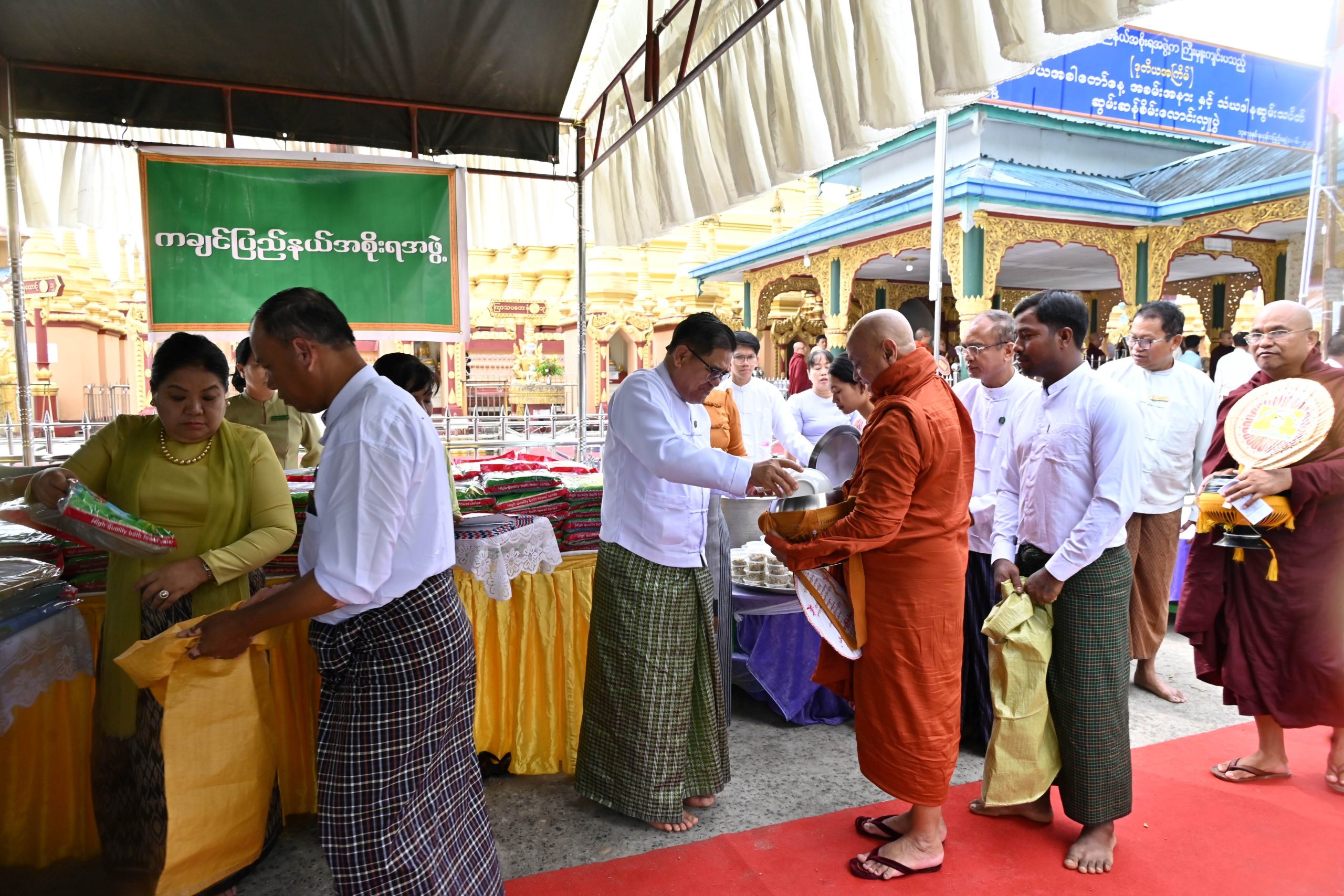 ယင်းနောက် ပြည်နယ်ဝန်ကြီးချုပ်နှင့် ဇနီး၊ မြောက်ပိုင်းတိုင်းစစ်ဌာနချုပ်နှင့် ဇနီး၊ ပြည်နယ်အစိုးရအဖွဲ့ဝင်များ၊ တပ်မတော်အရာရှိများနှင့် ပြည်နယ်အဆင့်ဌာနဆိုင်ရာများနှင့် ဒေသခံပြည်သူများက သတ်မှတ်နေရာအသီးသီးမှ ဘုရားအမှူးပြုသော ဆရာတော်/ သံဃာတော်များ၊ ရှင်သာမဏေ များနှင့် သီလရှင် ဆရာကြီး/ ဆရာလေးများအား ဆွမ်းသပိတ်၊ ဆွမ်းဆန်စိမ်း၊ ဝတ္ထုငွေနှင့် လှူဖွယ်ပစ္စည်းများကို ဆက်ကပ်လှူဒါန်းခဲ့ကြသည်။