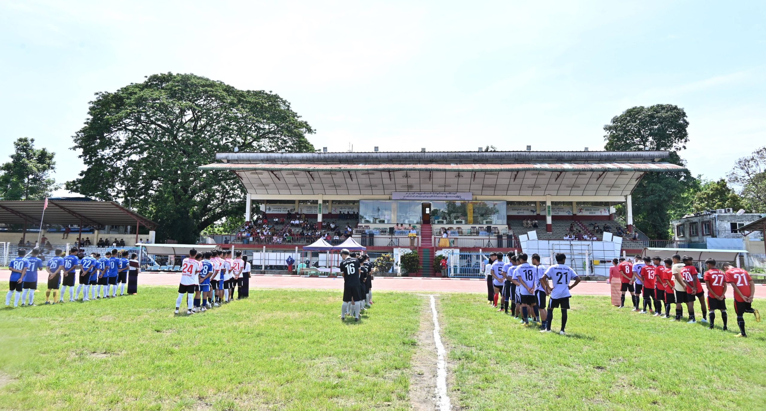 ဆက်လက်၍ ပြည်နယ်ဝန်ကြီးချုပ်နှင့် ဇနီးဒေါ်နန်ဆိုင်း၊ ပြည်နယ်တရားလွှတ်တော်တရား သူကြီးချူပ်၊ ပြည်နယ်အစိုးရအဖွဲ့ဝင် ဝန်ကြီးများနှင့် ၎င်းတို့၏ ဇနီးများ၊ ပြည်နယ်ဥပဒေချုပ်၊ ပြည်နယ်အဆင့် ဌာနဆိုင်ရာတာဝန်ရှိသူများနှင့် ဘောလုံးဝါသနာရှင်ပရိတ်သတ်များက အဖွင့် ပွဲစဉ်အဖြစ် Ram Hkye (ရန်းခေး)အသင်းနှင့် Asak Muk (အသက်မုန့်) အသင်းတို့၏ ယှဉ်ပြိုင် ကစားမှုကို ကြည့်ရှုအားပေးခဲ့ကြသည်။