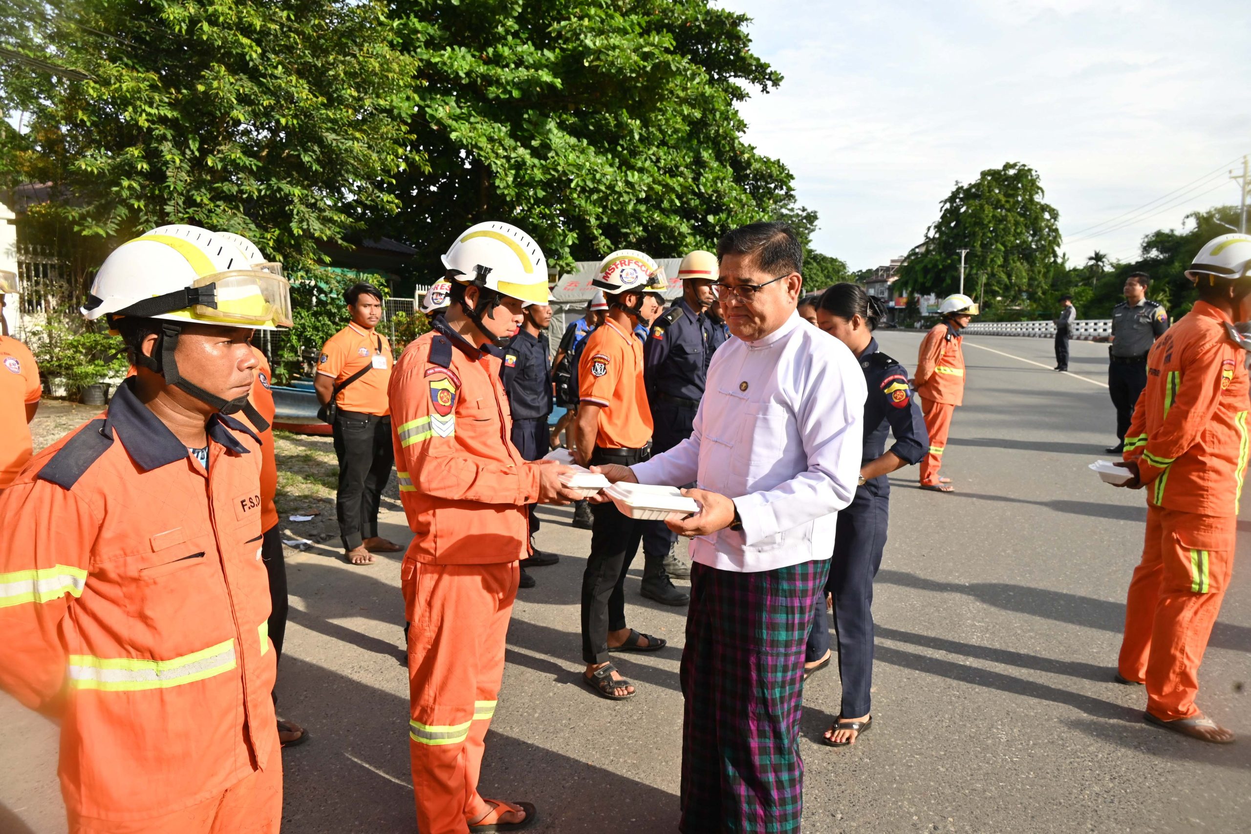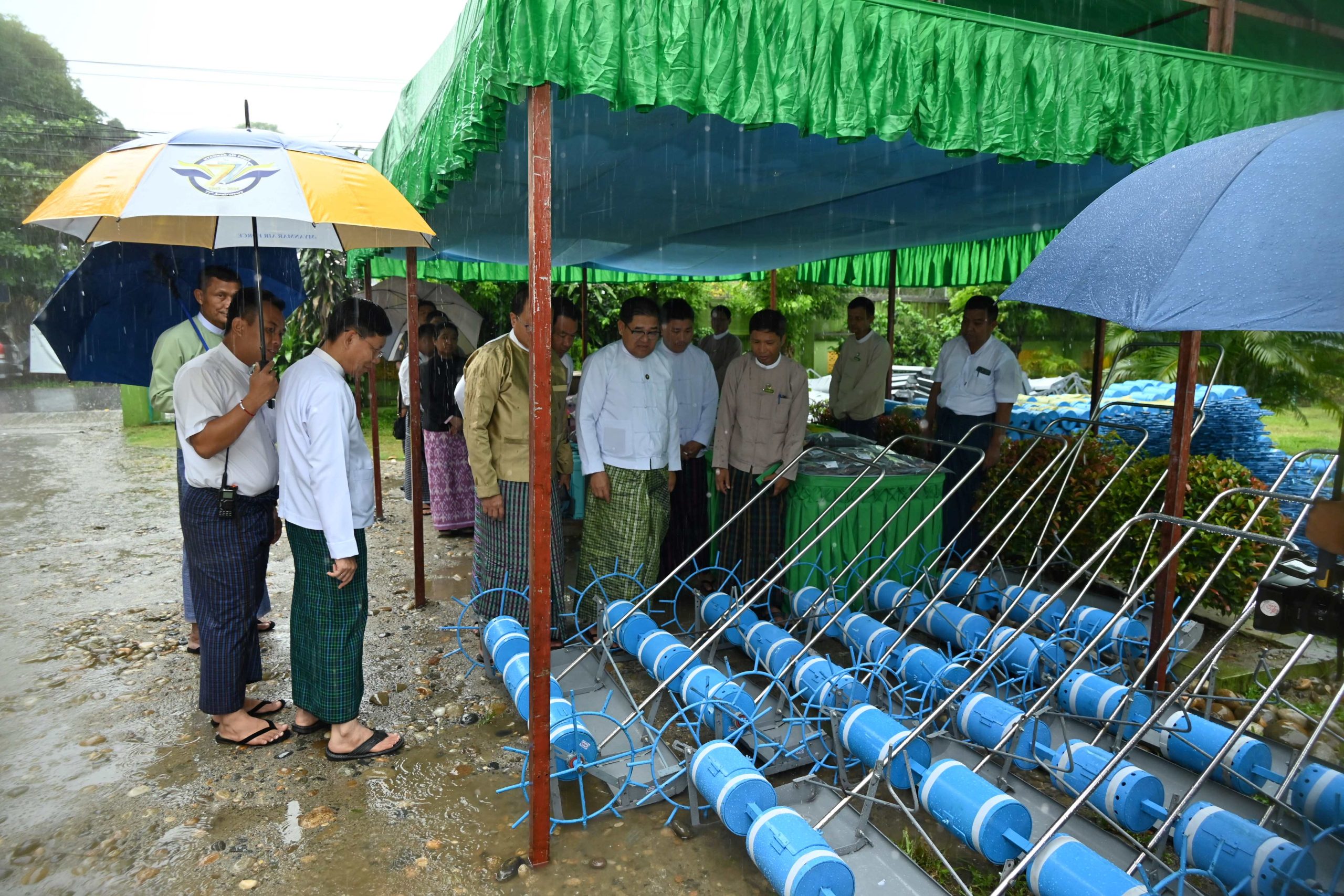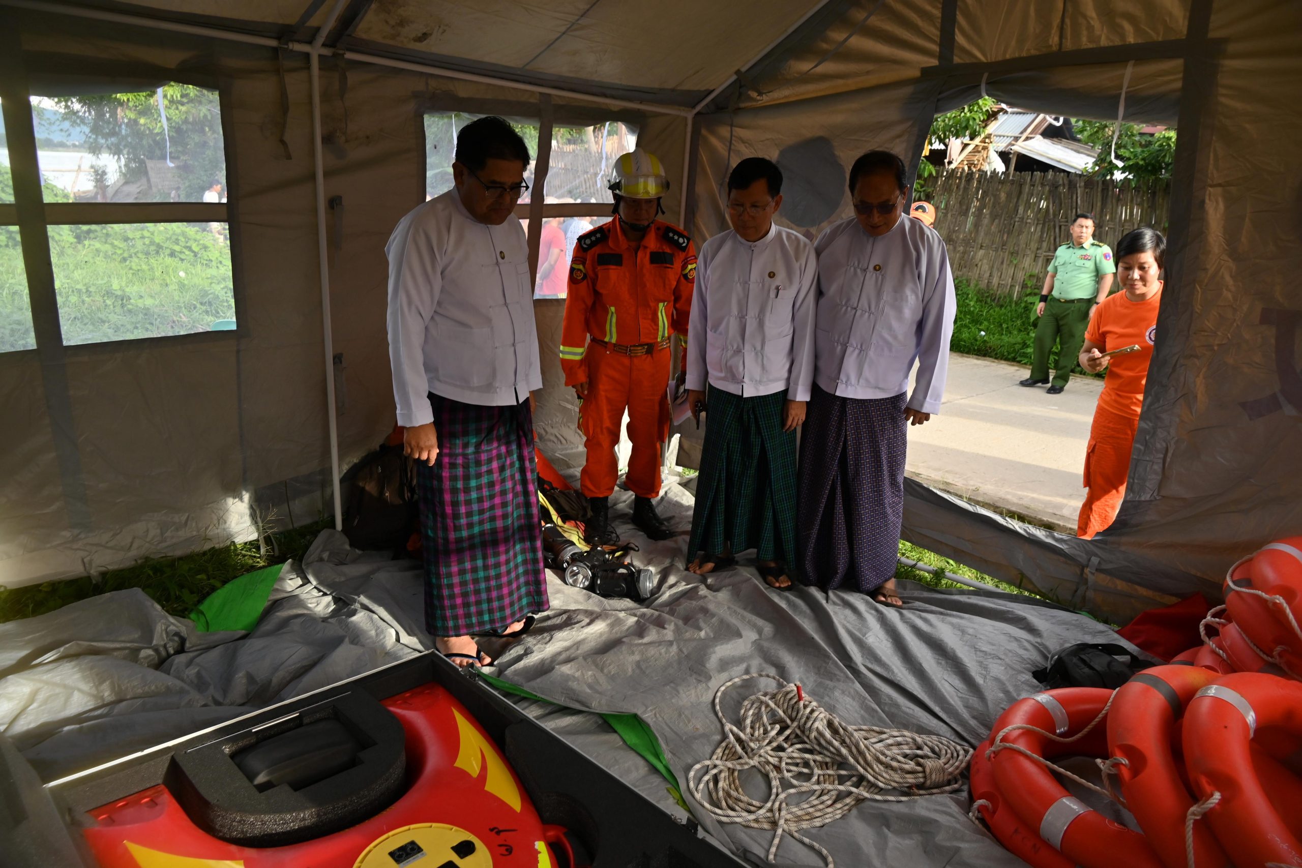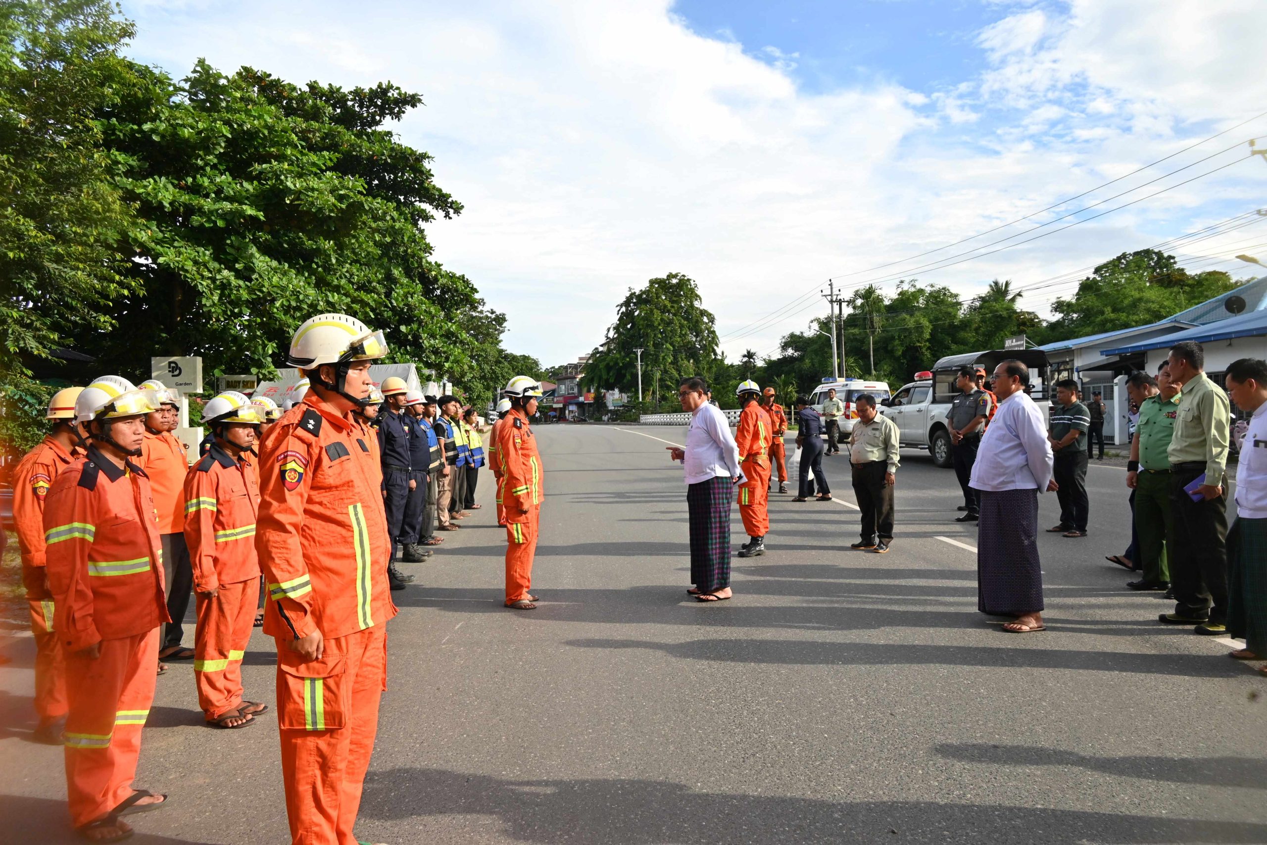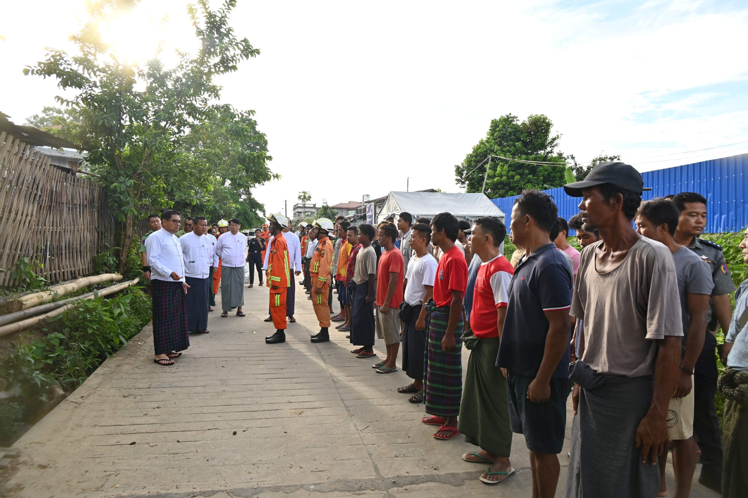 ထို့သို့ ကွင်းဆင်းစစ်ဆေးရာတွင် မြို့တွင်းမြစ်ရေမြင့်တက်လာနိုင်သည့် နေရာများအလိုက် မီးသတ်တပ်ဖွဲ့ဝင်များ၊ ဌာနဆိုင်ရာများ၊ လူမှုရေးအသင်းအဖွဲ့များစုဖွဲ့၍ ရေယာဉ်များ၊ မိုးကာတဲများနှင့် ရှာဖွေကယ်ဆယ်ရေးသုံးပစ္စည်းများ စုဆောင်းထားရှိသည့် စီတာပူတံတားအနီးရှိ ရေဘေးကယ်ဆယ်ရေးစုရပ်၌ လည်းကောင်း၊ ကျွန်းပင်ရပ်ကွက် စက်လှေဆိပ်ရှိ စုရပ်၌လည်းကောင်း စနစ်တကျကြိုတင်ပြင်ဆင် စုဖွဲ့ဆောင်ရွက်ထားရှိမှုများကို လှည့်လည်ကြည့်ရှုစစ်ဆေးခဲ့ကြပြီး ပြည်နယ်ဝန်ကြီးချုပ်က တပ်ဖွဲ့ဝင်များအား ဧရာဝတီမြစ်အထက်ပိုင်းတွင် မိုးအဆက်မပြတ်ရွာသွန်းလျက်ရှိသည့် အတွက် ကြိုတင်ကာကွယ်နိုင်ရေး စနစ်တကျစုဖွဲ့ထားခြင်းဖြစ်ကာ အရေးပေါ်အခြေအနေတွင် ယခုလို ကြိုတင်ပြင်ဆင်ခြင်းအားဖြင့် အများပြည်သူ၏ အသက်အိုးအိမ်စည်းစိမ်များကို ဆုံးရှုံးမှုနည်းသည်ထက်နည်းအောင် ကာကွယ်နိုင်မည်ဖြစ်ကြောင်း ပြောကြားခဲ့ကာ တပ်ဖွဲ့ဝင်များအတွက် ညနေစာအဖြစ် ထမင်းဘူးများကို ဖြန့်ဝေပေးအပ်ခဲ့ကြသည်။