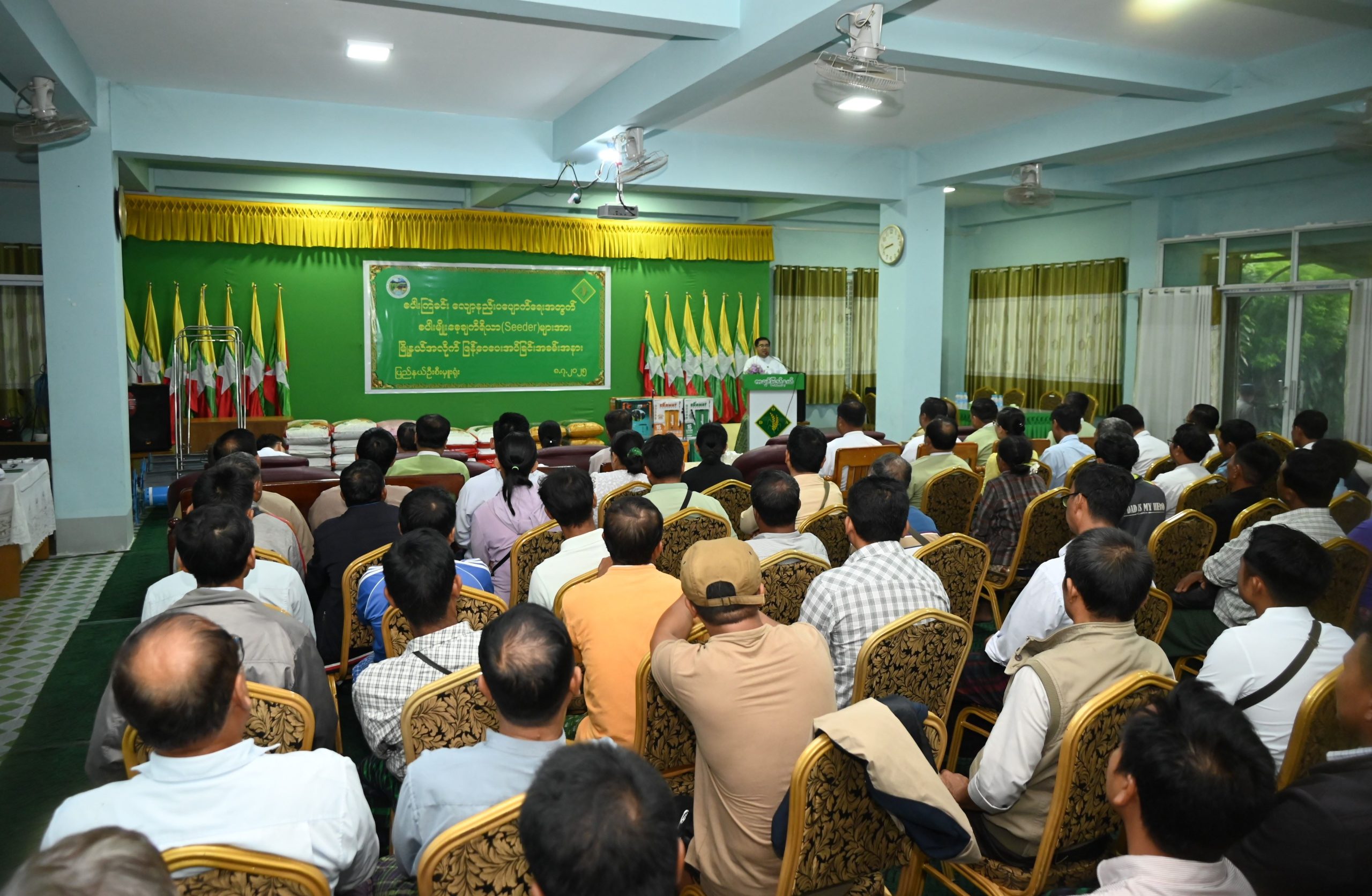 ကချင်ပြည်နယ်အတွင်း မိုးစပါးပန်းတိုင်အထွက်နှုန်းရရှိရေး၊ တောင်သူဝင်ငွေတိုးပွားရေးအတွက် စပါးစိုက်ပျိုးနည်းစနစ်မှန်ကန်စေရေးအတွက် စပါးကြဲခင်းများ လျော့နည်းပပျောက်လာစေရေး နည်းစနစ်ပြည့်ဝမှန်ကန်သည့် စပါးမျိုးစေ့ချကိရိယာ (Seeder) များအသုံးပြု၍ စိုက်ပျိုးနိုင်ရေး မြို့နယ်များအလိုက် တောင်သူများထံ ဖြန့်ဝေပေးအပ်ခြင်းအခမ်းအနားကို ယနေ့ နံနက် ၈ နာရီခွဲက ပြည်နယ်စိုက်ပျိုးရေးဦးစီးဌာနရုံး အစည်းအဝေးခန်းမ၌ ကျင်းပပြုလုပ်သည်။