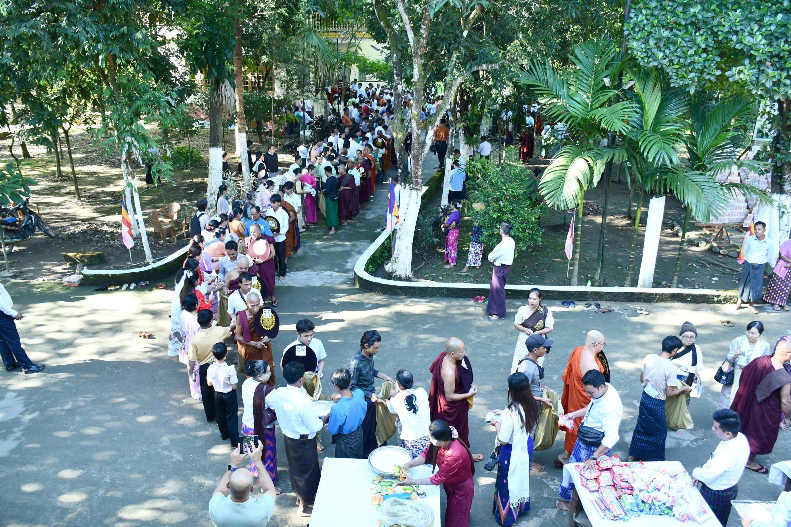 ထို့အတူ ပြည်နယ်ဝန်ကြီးချုပ်နှင့် ဇနီး၊ ပြည်နယ်တရားလွှတ်တော်တရားသူကြီးချုပ်၊ ပြည်နယ်အစိုးရအဖွဲ့ဝင်များနှင့် ၎င်းတို့၏ဇနီးများ၊ တာဝန်ရှိသူများသည် နံနက် (၈)နာရီကလည်း မြစ်ကြီးနားမြို့ ရန်အောင်မြင်(ဘုမ္မော)ကျောင်းတိုက်၌ ဗုဒ္ဓဘိသေကမင်္ဂလာ၊ ကံဆောင်မင်္ဂလာ ဦးညွတ်ဂုဏ ပူဇောမင်္ဂလာနှင့် သံဃာတော်များအား စာရေးတံမဲလှူဒါန်းခြင်း အခမ်းအနားသို့ တက်ရောက်ပြီး (၃၂)ကြိမ်မြောက် အသံမစဲ မဟာပဋ္ဌာန်းရွတ်ဖတ်ပူဇော်ပွဲ ပဋ္ဌာန်းသိမ်းအောင်ပွဲအဖြစ် ကျောင်းဝင်းအတွင်း၌ မြောက်ပိုင်းတိုင်းစစ်ဌာနချုပ်တိုင်းမှူး၏ ဇနီး၊ အလှူဒါယကာ၊ ဒါယိကာမများ၊ စေတနာအလှူရှင်များနှင့်အတူ ဘုရားအမှူးပြုသော ရန်အောင်မြင်ဆရာတော် ဦးစန္ဒောဘာသနှင့် ရဟန်း၊ သံဃာများ၊ သီလရှင်ဆရာကြီးများ စုစုပေါင်း အပါး (၂၀၀)ကျော်တို့အား ဆွမ်းဆန်တော်၊ ဝတ္ထုငွေနှင့် လှူဖွယ်ပစ္စည်းများကို သတ်မှတ်နေရာအသီးသီးမှ လောင်းလှူပူဇော်ခဲ့ကြကြောင်း သိရသည်။