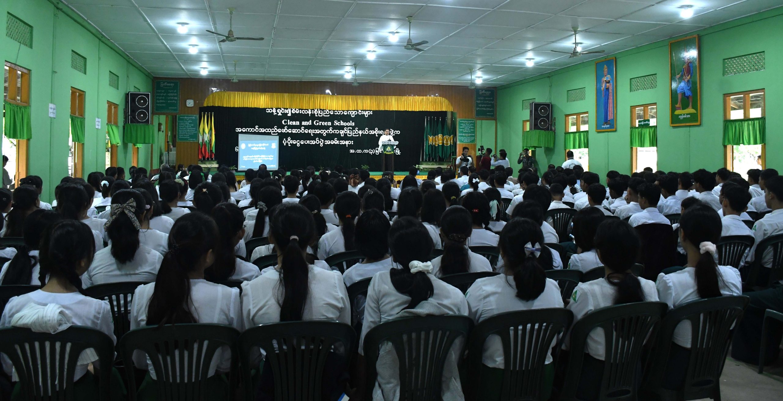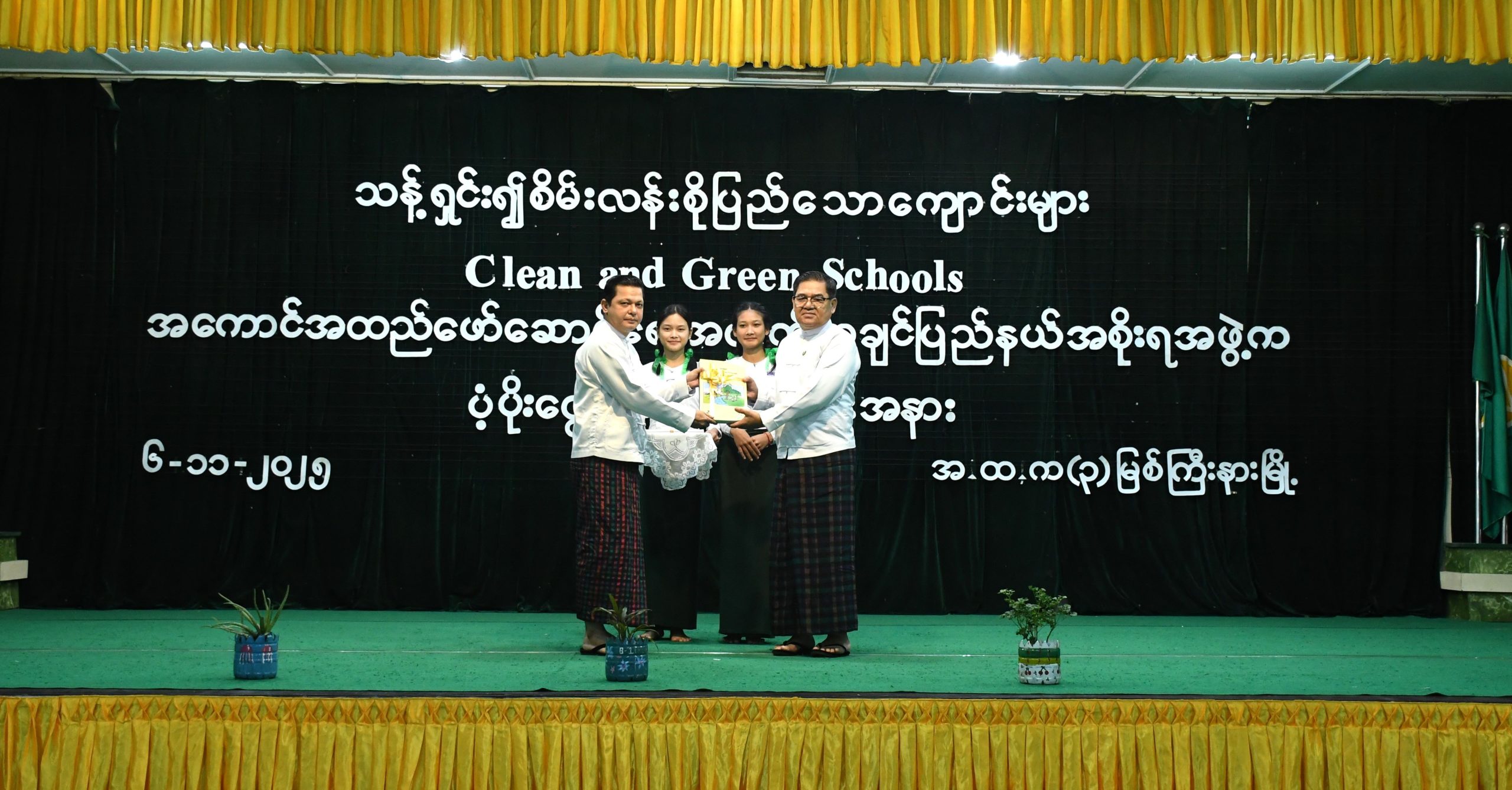 ထို့နောက် ကျောင်းသား/ ကျောင်းသူလေးများ၏ ပတ်ဝန်းကျင်ထိန်းသိမ်းရေးဆိုင်ရာ ကိုယ်တိုင်ရေး ကဗျာရွတ်ဆိုခြင်း၊ သန့်ရှင်း၍ စိမ်းလန်းစိုပြည်သောကျောင်းနှင့် ပတ်သက်သည့် ပုံပြင်တိုပြောခြင်းနှင့် “ပတ်ဝန်းကျင်လှပဖို့ ဒို့လူငယ်များ နိုးကြားစို့” တေးသီချင်းဖြင့် ကပြဖျော်ဖြေခြင်းတို့ကို ကြည့်ရှုအားပေးခဲ့ကြပြီး ဆုရကျောင်းသား/ ကျောင်းသူများနှင့်အတူ အမှတ်တရ စုပေါင်းမှတ်တမ်းတင်ဓာတ်ပုံရိုက်ကူးခဲ့ကြကာ ခန်းမအတွင်း ခင်းကျင်ပြသထားသော ကျောင်းပတ်ဝန်းကျင် သန့်ရှင်း၍ စိမ်းလန်းစိုပြည်ရေးလှုပ်ရှားဆောင်ရွက်မှုများနှင့် ပတ်ဝန်းကျင်ဆိုင်ရာအသိပညာပေး ပြခန်း/ပြကွက်များကို စိတ်ဝင်တစား လှည့်လည်ကြည့်ရှုအားပေးခဲ့ကြသည်။