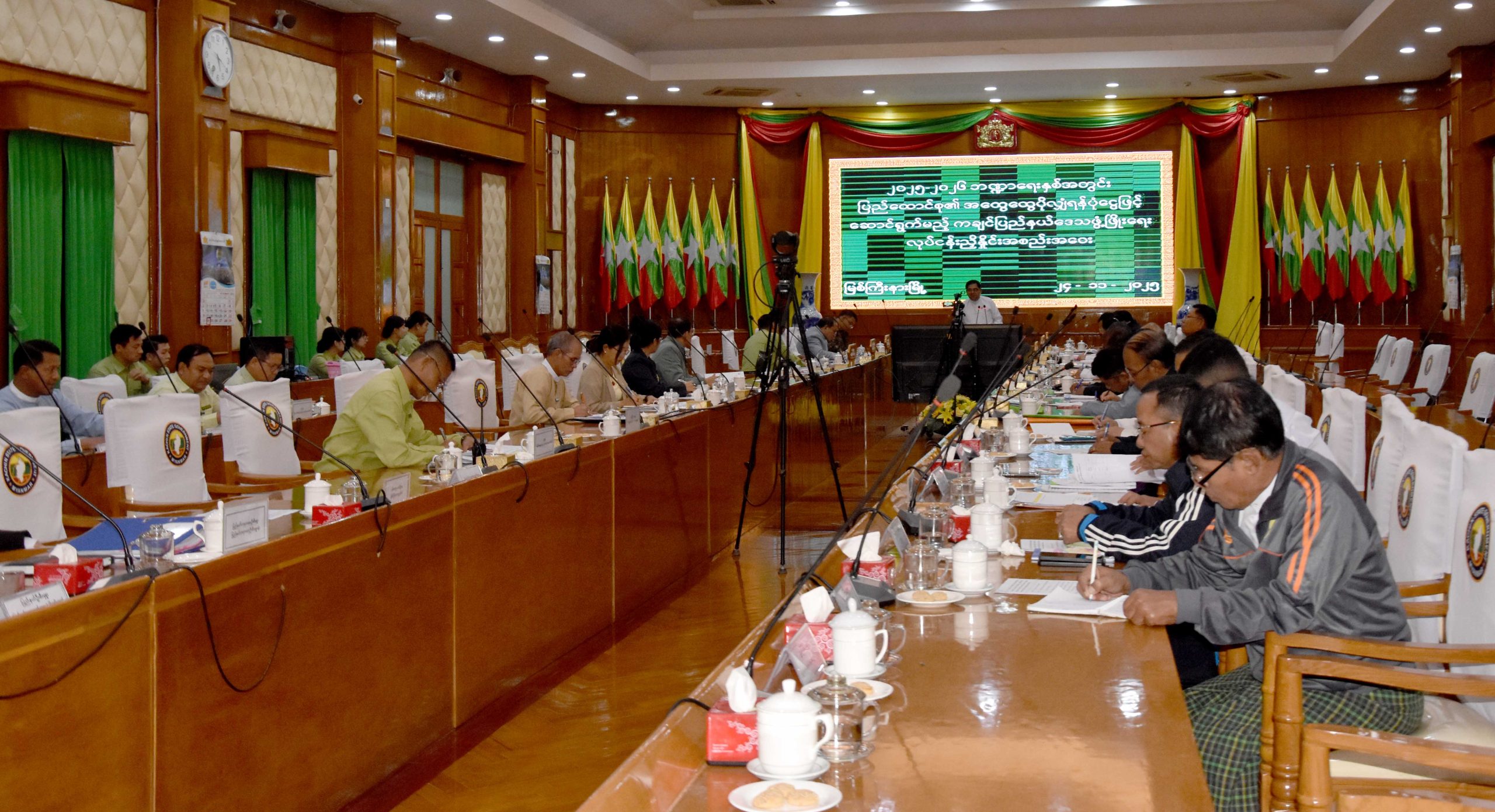 အလားတူ ကချင်ပြည်နယ်၏ ၂၀၂၅-၂၀၂၆ ဘဏ္ဍာရေးနှစ်၊ ပြည်ထောင်စု၏ အထွေထွေ ပိုလျှံရန်ပုံငွေဖြင့် ကချင်ပြည်နယ်အတွင်း ဆောင်ရွက်သွားမည့် ဒေသဖွံ့ဖြိုးရေးလုပ်ငန်းများနှင့်စပ်လျဉ်း၍ ဌာနအဖွဲ့ အစည်းများနှင့် လုပ်ငန်းညှိနှိုင်းအစည်းအဝေးကို နိုဝင်ဘာ ၂၄ ရက် ညနေ ၄ နာရီခွဲက ပြည်နယ်အစိုးရအဖွဲ့ရုံး မလိခခန်းမ၌ ကျင်းပပြုလုပ်သည်။