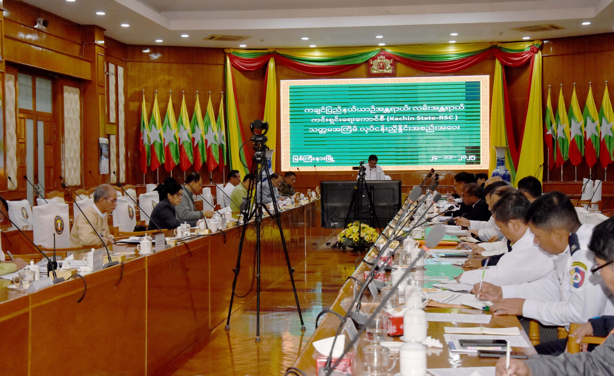 ယင်းနောက် အဆိုပါ အစည်းအဝေးခန်းမ၌ ကချင်ပြည်နယ်ယာဉ်အန္တရာယ်၊ လမ်းအန္တရာယ် ကင်းရှင်းရေးကောင်စီ (Kachin State RSC) သတ္တမအကြိမ် လုပ်ငန်းညှိနှိုင်းအစည်းအဝေးကို ကော်မတီအဖွဲ့ဝင်များနှင့် ဆက်လက်ကျင်းပပြုလုပ်ခဲ့ပြီး Kachin State RSC ဥက္ကဋ္ဌ၊ ပြည်နယ်ဝန်ကြီးချုပ်က ပြည်နယ်အတွင်းရှိ ပြည်သူများ ယာဉ်အန္တရာယ်၊ လမ်းအန္တရာယ်ကင်းရှင်းစေရေးနှင့် ယာဉ်အန္တရာယ်ကြောင့် အသက်ဆုံးရှုံးမှုများ မဖြစ်ပေါ်စေရေး၊ လူမှုစီးပွာဘဝများ ထိခိုက်ဆုံးရှုံးမှုလျော့နည်းစေရေးတို့အတွက် တာဝန်ရှိသူအသီးသီးတို့က အထူးကြီးကြပ်၍ ဝိုင်းဝန်းဆောင်ရွက်သွားကြရန် လိုအပ်ပါကြောင်း တိုက်တွန်းမှာကြားသည်။