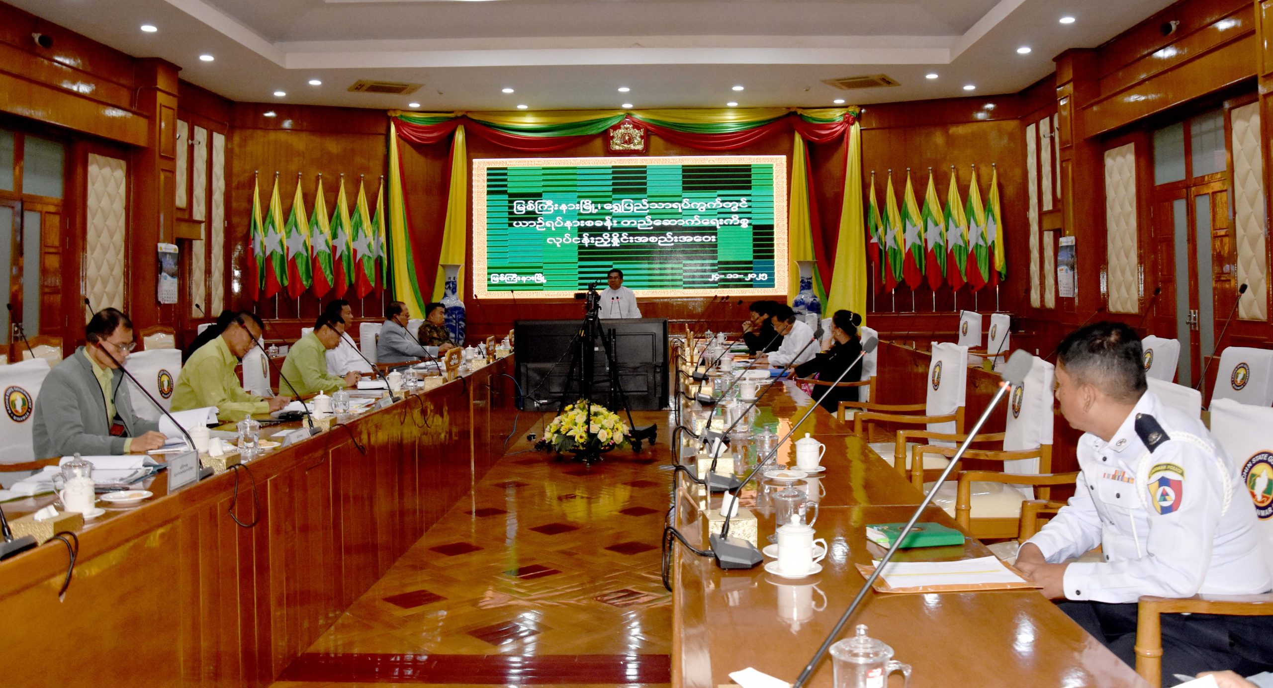 ထို့နောက် ပြည်နယ်အစိုးရအဖွဲ့ အတွင်းရေးမှူးက ပြည်နယ်အတွင်း အထွေထွေပိုလျှံရန်ပုံငွေဖြင့် ဆောင်ရွက်မည့် လုပ်ငန်းများနှင့်စပ်လျဉ်း၍ အလေးထားလိုက်နာဆောင်ရွက်ရေး ညွှန်ကြားချက်များကို ရှင်းလင်းတင်ပြပြီး ရန်ပုံငွေတွင် ပါဝင်သော ဌာနဆိုင်ရာများက ဆောင်ရွက်သွားရမည့် လုပ်ငန်းစီမံကိန်းများနှင့်ပတ်သက်၍ သက်ဆိုင်ရာကဏ္ဍအလိုက် အသီးသီးရှင်းလင်းတင်ပြကြရာ ပြည်နယ်ဝန်ကြီးချုပ်က လုပ်ငန်းများ ဆောင်ရွက်ရာတွင် နိုင်ငံတော်ဘဏ္ဍာငွေလေလွင့်ဆုံးရှုံးမှုမရှိစေရေး ဘဏ္ဍာရေးဆိုင်ရာလုပ်ထုံးလုပ်နည်း၊ ညွှန်ကြားချက်များကို အလေးထားလိုက်နာဆောင်ရွက်ရေးနှင့် လိုအပ်သည်များကို ညှိနှိုင်းပေါင်းစပ်ဆောင်ရွက်ပေးခဲ့သည်။