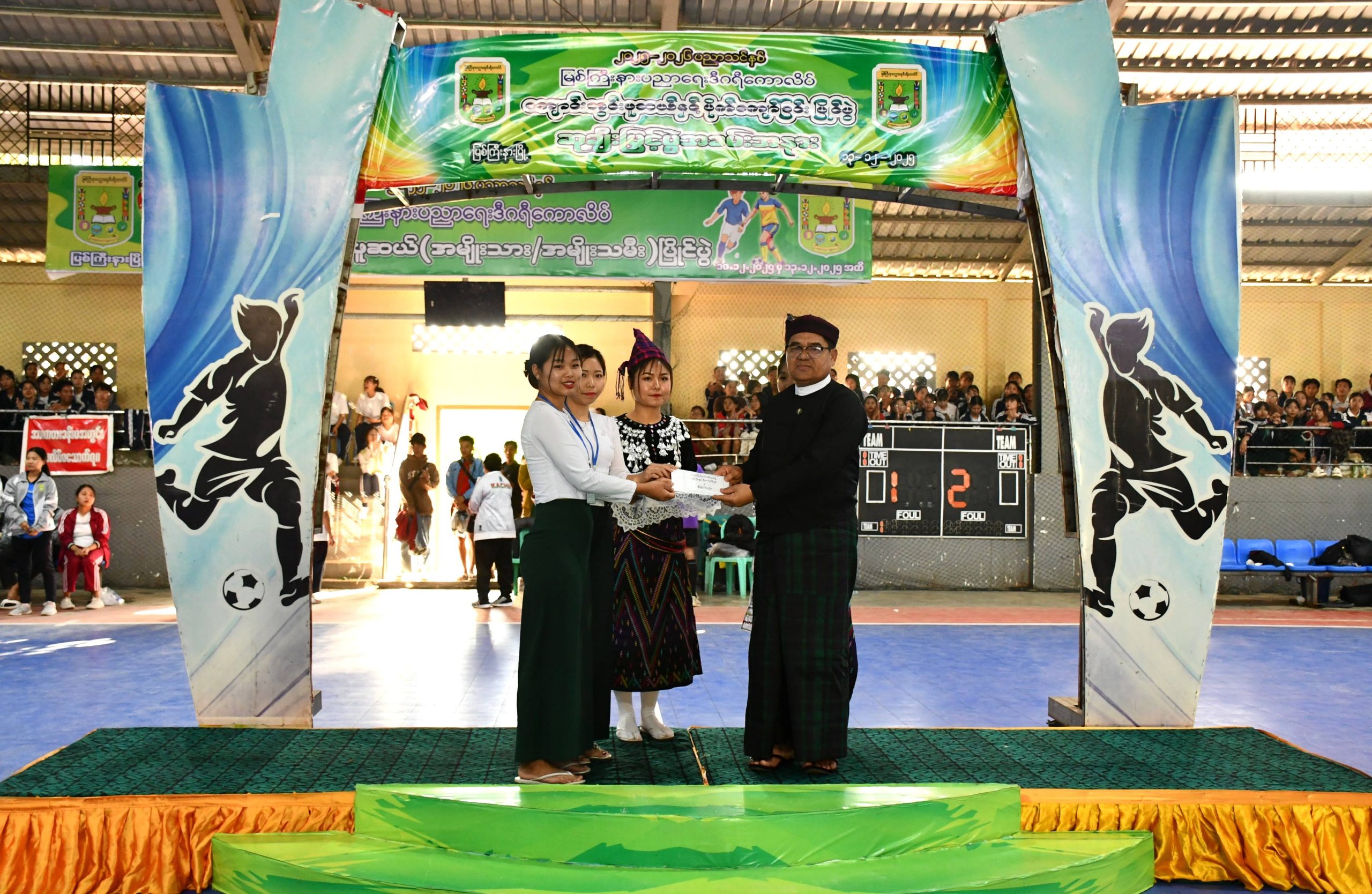 ဆက်လက်၍ ပြည်နယ်ဝန်ကြီးချုပ်က အမျိုးသားဖူဆယ်ဘောလုံးပြိုင်ပွဲ၌ ပထမဆုရ ဗန္ဓုလအသင်းအား တစ်ဦးချင်းလည်ဆွဲဆုတံဆိပ်၊ ဂုဏ်ပြုချီးမြှင့်ငွေနှင့် တံခွန်စိုက်ဆုဖလားတို့အား ချီးမြှင့် ပေးအပ်ခဲ့ကြောင်းသိရသည်။