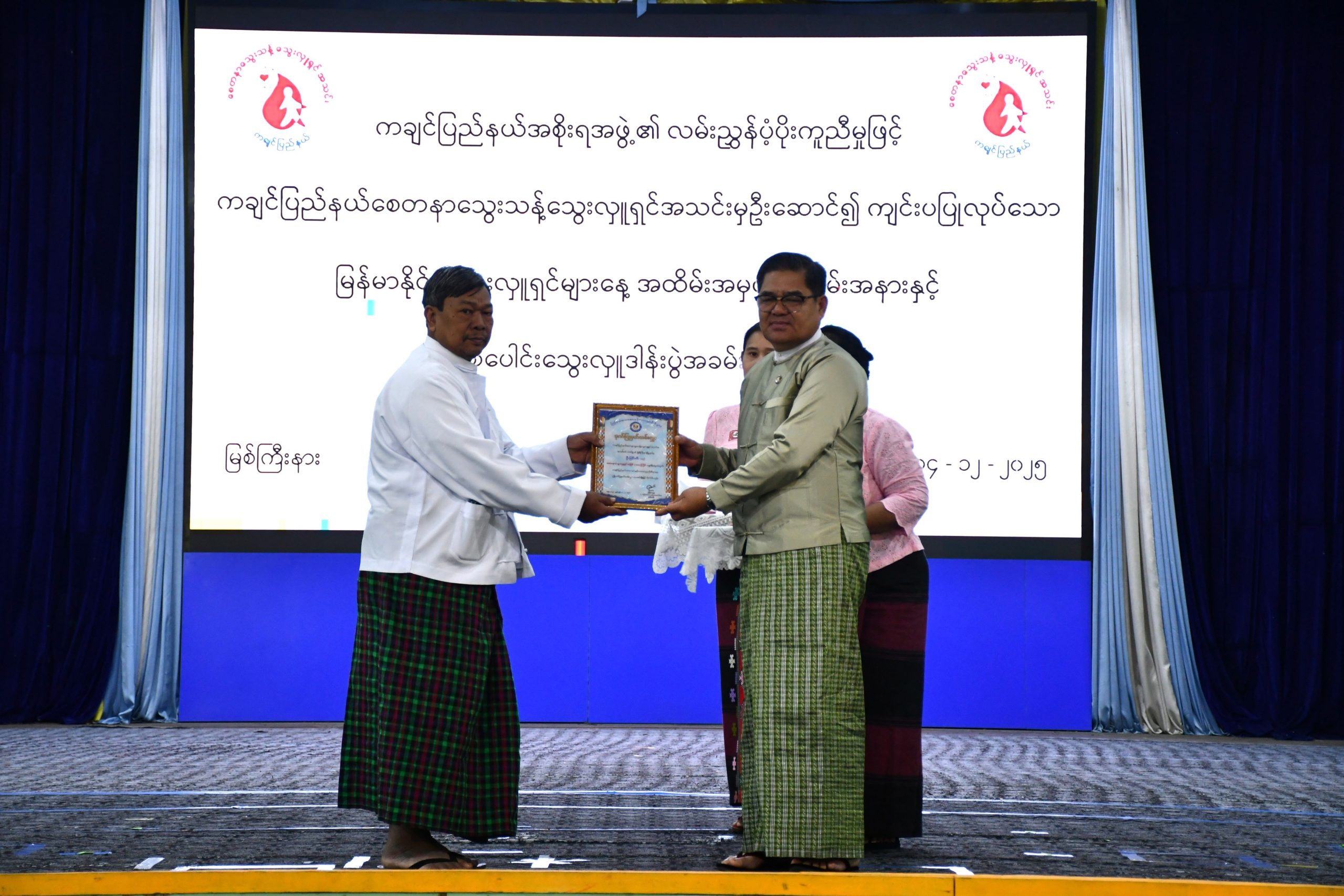 ဆက်လက်၍ ပြည်နယ်ဝန်ကြီးချုပ်နှင့် ဇနီး၊ ပြည်နယ်တရားလွှတ်တော်တရားသူကြီးချုပ်၊ ပြည်နယ်အစိုးရအဖွဲ့ဝင် ဝန်ကြီးများက စေတနာသွေးသန့်သွေးလှူရှင် အကြိမ်(၁၀၀)နှင့်အထက် သွေးလှူရှင် (၄) ဦးအပါအဝင် အကြိမ် (၄၀)နှင့်အထက် သွေးလှူရှင် (၈)ဦးနှင့် (၁၀)ကြိမ်နှင့်အထက် သွေးလှူရှင်များအားဂုဏ်ပြုမှတ်တမ်းလွှာ၊ ဂုဏ်ပြုချီးမြှင့်ငွေများနှင့် အမှတ်တရဂုဏ်ပြုလက်ဆောင်များကို အသီးသီးပေးအပ်ချီးမြှင့်ခဲ့ကြသည်။