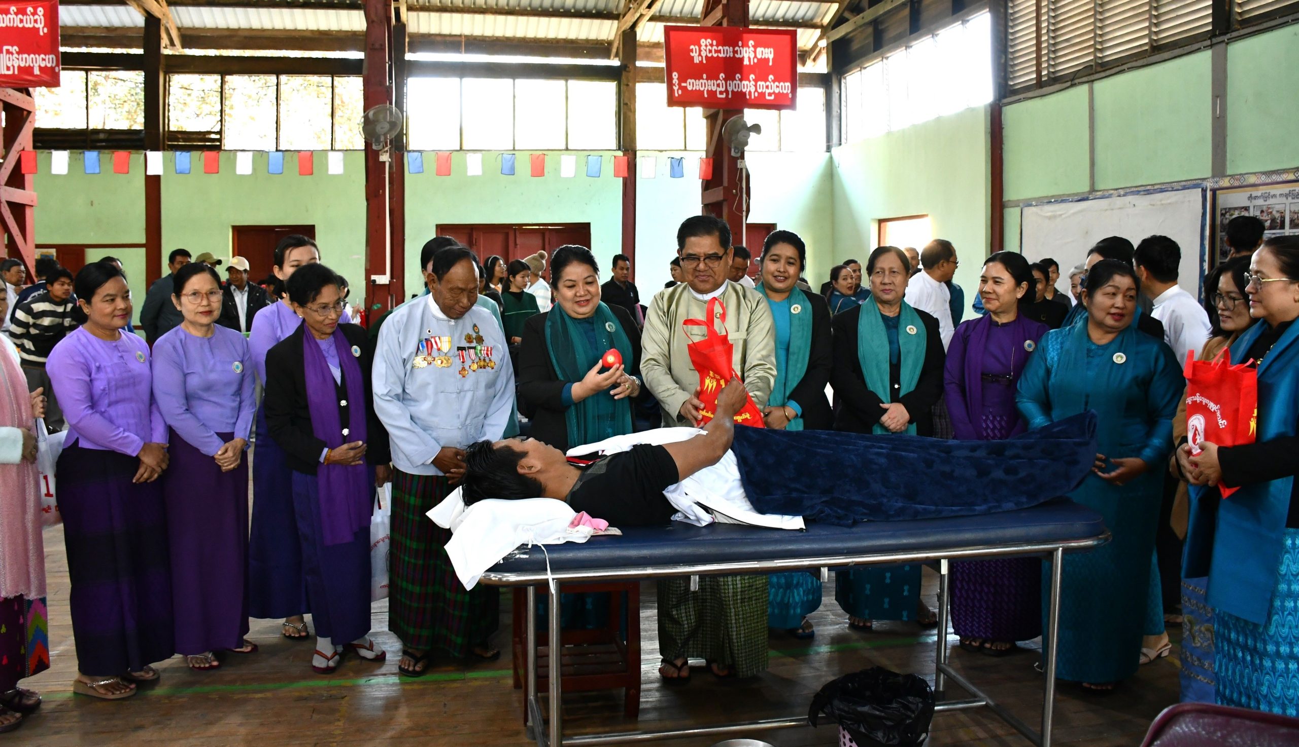 အခမ်းအနားသို့ ပြည်နယ်ဝန်ကြီးချုပ် ဦးခက်ထိန်နန်နှင့် ဇနီးဒေါ်နန်ဆိုင်း၊ ပြည်နယ်တရား လွှတ်တော်တရားသူကြီး ချုပ်၊ ပြည်နယ်အစိုးရအဖွဲ့ဝင်များ၊ ဌာနဆိုင်ရာတာဝန်ရှိသူများနှင့် စေတနာသွေးသန့်သွေးလှူရှင်များ တက်ရောက်ခဲ့ကြပြီး ပြည်နယ်ဝန်ကြီးချုပ်က ယနေ့မျက်မှောက်ကာလတွင် ရောဂါအသစ်အဆန်းများ ပေါ်လာသည်နှင့်အမျှ လူနာများကို ဆေးကုသရာတွင် သွေးသည် မရှိမဖြစ်လိုအပ်လာပါကြောင်း၊ ထို့ကြောင့် သွေးသည် အသက်၊ အသက်သည် သွေးဖြစ်သည့်အတွက် စေတနာသွေးလှူရှင်များ၏ကဏ္ဍသည် ပိုမိုအရေးကြီးလာပါကြောင်း၊ သို့ဖြစ်ပါ၍ ယနေ့အခမ်းအနားတွင် အကြိမ်(၁၀၀)နှင့်အထက် သွေးလှူရှင် (၄)ဦးနှင့် ပုံမှန်သွေးလှူရှင်များကိုပါ ဂုဏ်ပြုခြင်းပင်ဖြစ်ပါကြောင်း၊ သို့ဖြစ်ပါ၍ မွန်မြတ်သည့်အလှူရှင်များဖြစ်သည့် စေတနာ့သွေးသန့်သွေးလှူရှင်များကို ဂုဏ်ပြုချီးမြှင့်ရသည့်အတွက် အထူးပင်ဝမ်းမြောက်ဂုဏ်ယူပါကြောင်း ဂုဏ်ပြုပြောကြားသည်။