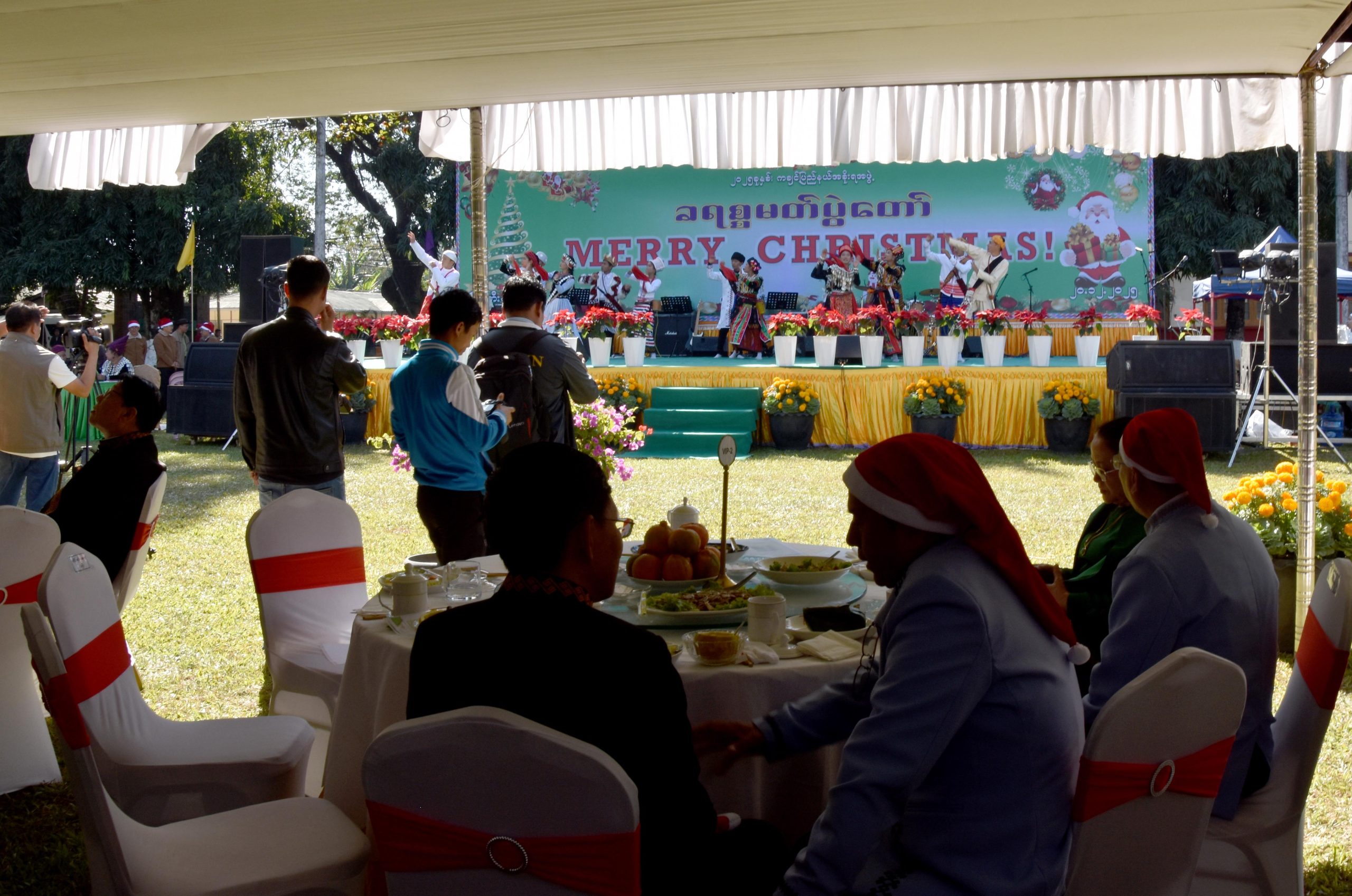 ယင်းနောက် ပြည်နယ်ဝန်ကြီးချုပ်နှင့်ဇနီးတို့က ဘုန်းတော်ကြီးများ၊ သိက္ခာတော်ရဆရာများနှင့် ပါဝင်ကူညီကြသော ရိုးရာယဉ်ကျေးမှုအဖွဲ့များအတွက် ခရစ္စမတ်လက်ဆောင်များကို ပေးအပ်လှူဒါန်းခဲ့ပြီး ကောင်းချီးပေးဆုတောင်းခြင်းဖြင့် ဝတ်ပြုခြင်းအစီအစဉ်ကို ရုပ်သိမ်းလိုက်ကြကာ အခြေခံပညာကျောင်းများမှ ကျောင်းသား/ ကျောင်းသူလေးများ၏ ခရစ္စမတ်တေးသီချင်း သရုပ်ဖော်အကအလှများ၊ တိုင်းရင်းသားရိုးရာအကအလှများဖြင့် ဖျော်ဖြေတင်ဆက်မှုကို ကြည့်ရှုအားပေးပြီး ပွဲတော်တက်ရောက်လာသူများနှင့်အတူ ခရစ္စမတ်နေ့လယ်စာကိုအတူတကွ ပျော်ရွှင်စွာသုံးဆောင်ခဲ့ကြသည်။