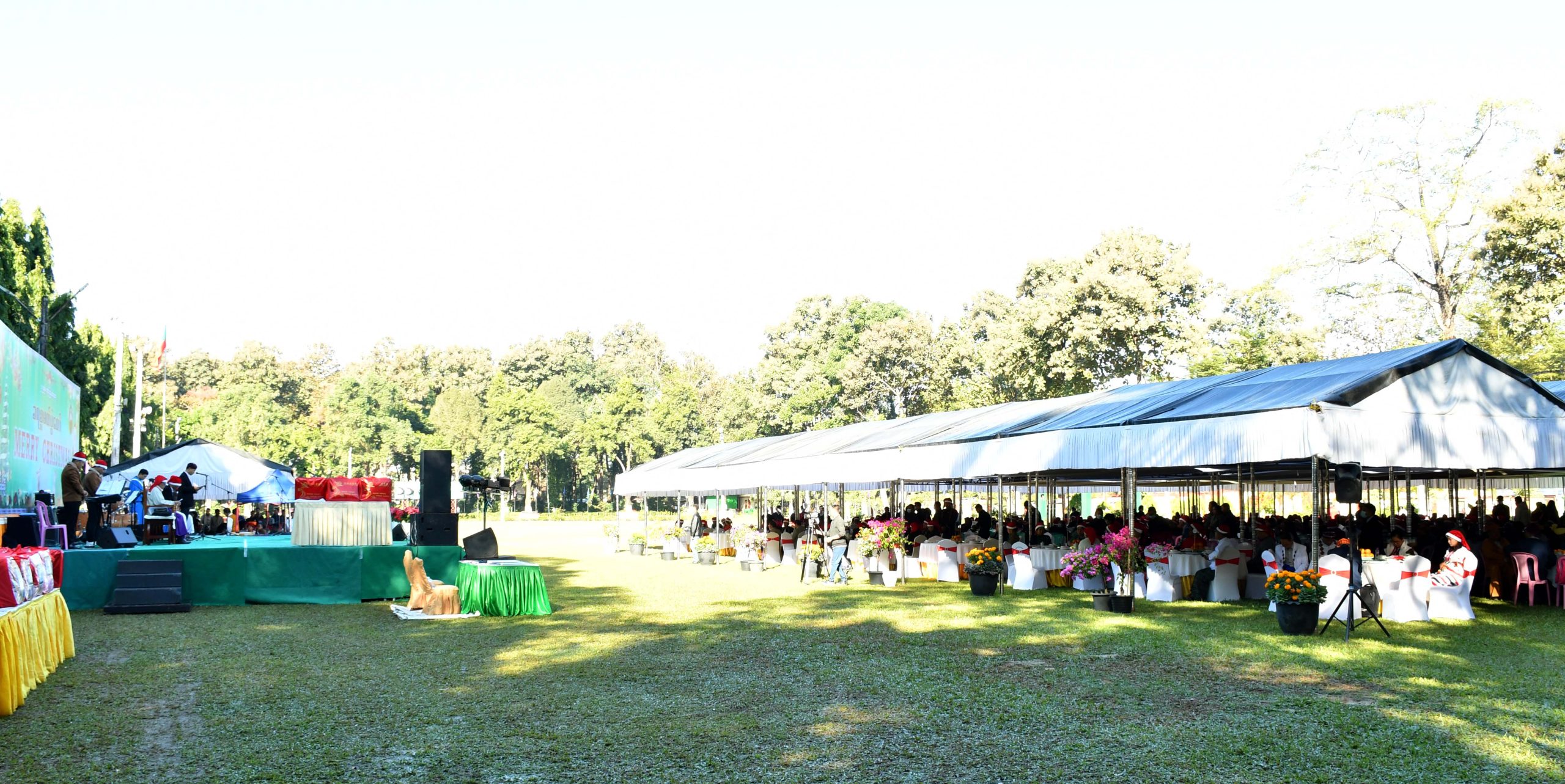 ထို့အတူ နံနက် ၉ နာရီတွင် ၂၀၂၅ ခုနှစ် ကချင်ပြည်နယ်အစိုးရအဖွဲ့၏ မိသားစု ခရစ္စမတ်ပွဲတော်ကို ပြည်နယ်အစိုးရအဖွဲ့ရုံးရှေ့ မြက်ခင်းပြင်၌ စည်ကားသိုက်မြိုက်စွာ ကျင်းပပြုလုပ်ခဲ့ကြရာ မိသားစုခရစ္စမတ်ပွဲတော်သို့ ပြည်နယ်ဝန်ကြီးချုပ်နှင့် ဇနီးဒေါ်နန်ဆိုင်း၊ ပြည်နယ်တရားလွှတ်တော်တရားသူကြီးချုပ်၊ ပြည်နယ်ဝန်ကြီးများနှင့် ၎င်းတို့၏ ဇနီးများ၊ ပြည်နယ်အဆင့်ဌာနဆိုင်ရာ တာဝန်ရှိသူများ၊ တိုင်းရင်းသားစာပေနှင့် ယဉ်ကျေးမှုအသင်းအဖွဲ့များ၊ ငြိမ်းချမ်းရေးအကျိုးတော်ဆောင်အဖွဲ့ များ၊ ဘာသာရေးအသင်းအဖွဲ့များ၊ လူမှုကူညီရေးအသင်းများမှ တာဝန်ရှိသူများ၊ အထူးဖိတ်ကြားထား သော ဧည့်သည်တော်များ တက်ရောက်ကြရာ ရိုးရာဧည့်ကြိုသီချင်း၊ ဧည့်ကြိုအကတို့ဖြင့် နွေးထွေးစွာကြိုဆိုနှုတ်ဆက်ခဲ့ကြသည်။