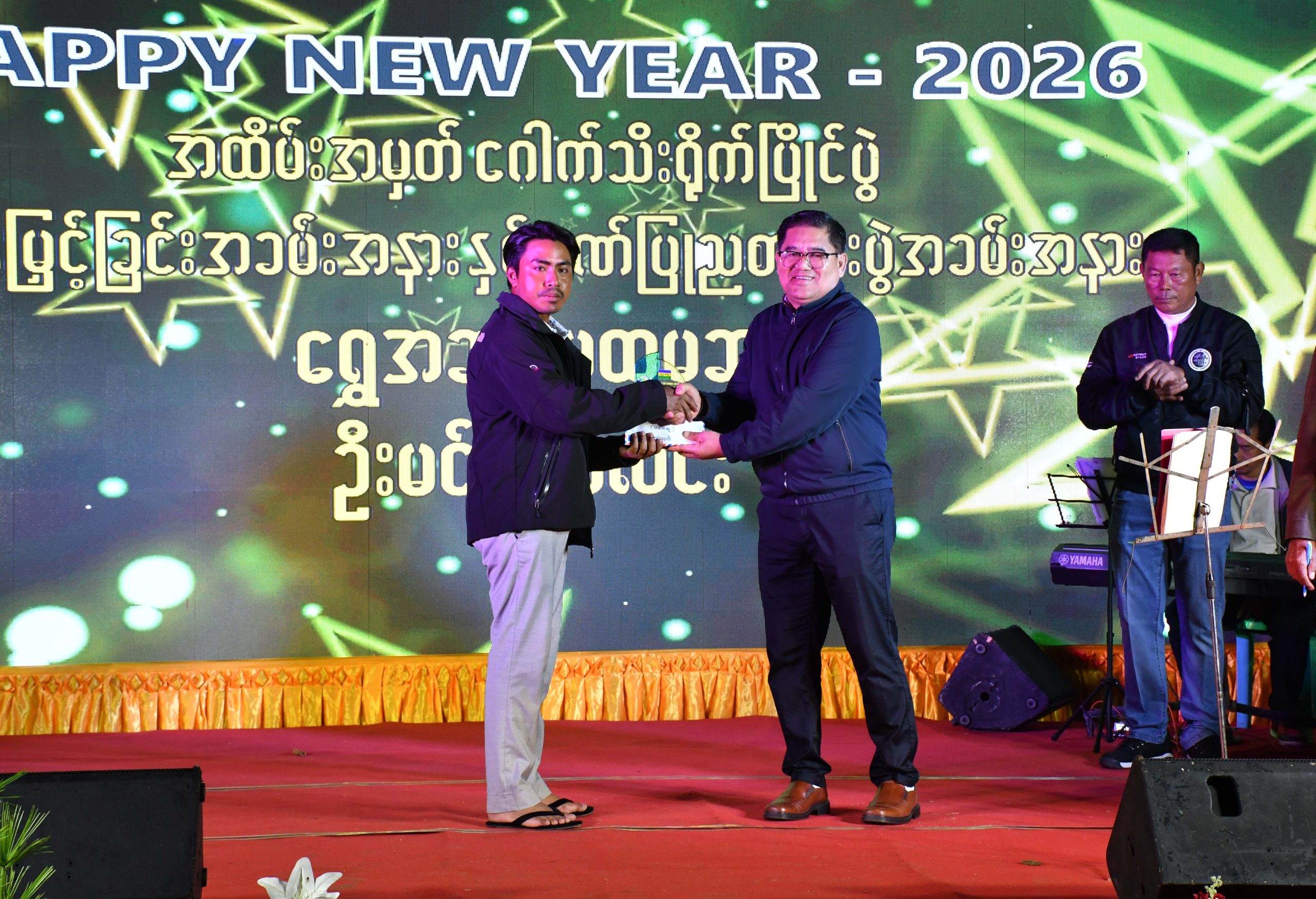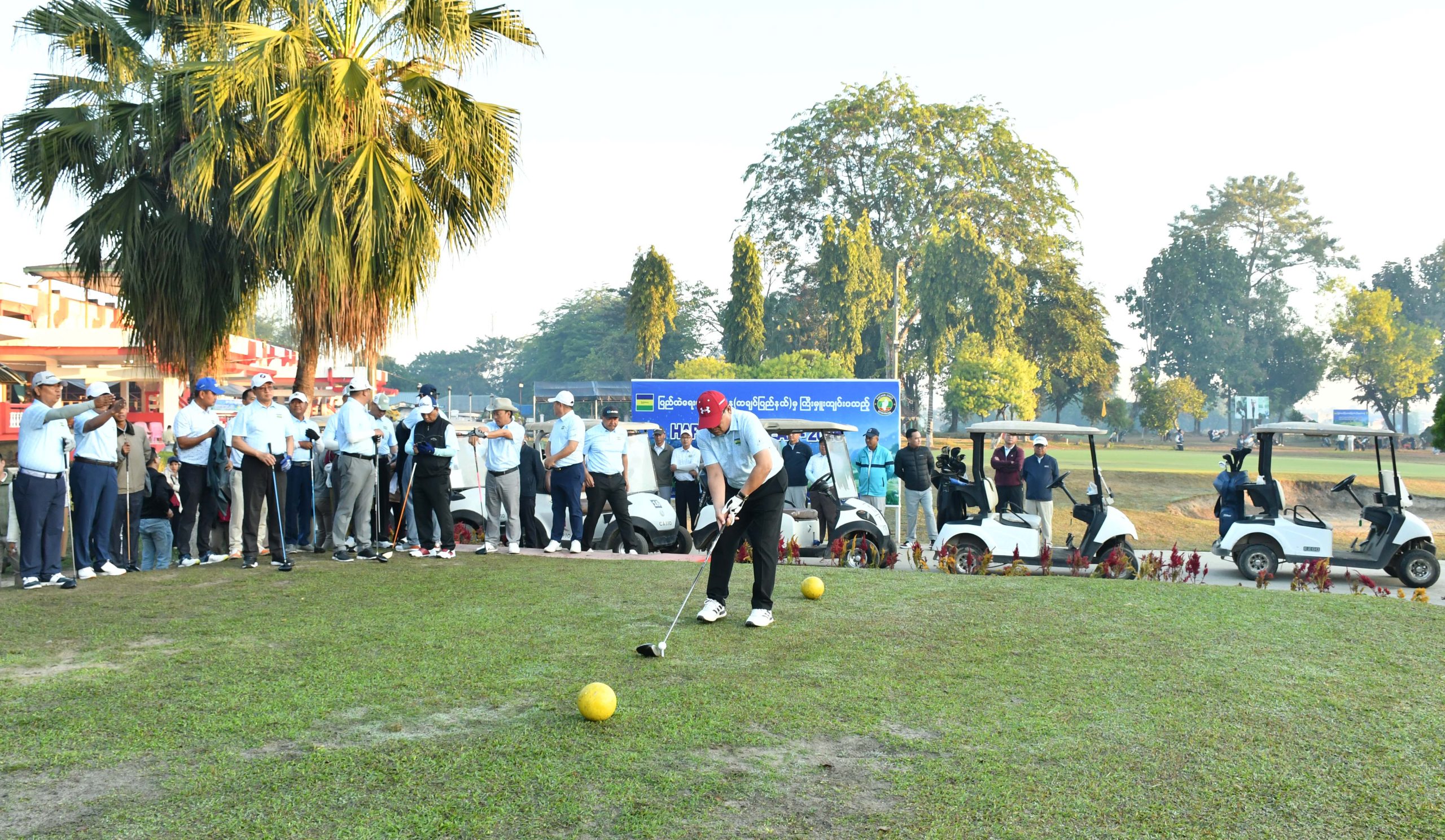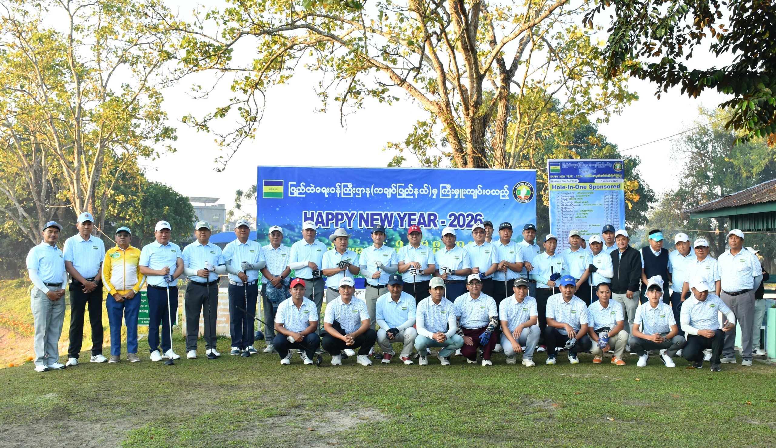 အလားတူ ဇန်နဝါရီ ၁ ရက် နံနက် ၇ နာရီကလည်း မြစ်ကြီးနားမြို့ Northern Star ဂေါက်ကလပ်၌ ပြည်ထဲရေးဝန်ကြီးဌာန(ကချင်ပြည်နယ်)မှ ကြီးမှူးကျင်းပသော Happy New Year အထိမ်းအမှတ် ဂေါက်သီးရိုက်ပြိုင်ပွဲ ဖွင့်ပွဲသို့ တက်ရောက်ပြီး ပြည်နယ်ဝန်ကြီးချုပ်၊ ပြည်ထောင်စုရွေးကောက်ပွဲကော်မရှင်အဖွဲ့ဝင် ကချင်ပြည်နယ်တာဝန်ခံ ဦးခင်ဇော်၊ တိုင်းမှူး ဗိုလ်ချုပ်အောင်ဇော်ထွေး၊ ပြည်နယ်အစိုးရအဖွဲ့ဝင်များက Smoke Ball ကိုရိုက်၍ ဖွင့်လှစ်ပေးခဲ့ကြပြီး ညပိုင်းတွင် ဂေါက်သီးရိုက်ပြိုင်ပွဲ ဆုချီးမြှင့်ပွဲ အခမ်းအနားကို ကျင်းပရာ ပြည်နယ်ဝန်ကြီးချုပ်က ရွှေအဆင့်ရ ဆုရရှိသူများ၊ တိုင်းမှူးနှင့် တာဝန်ရှိသူများက ဂေါက်သီးရိုက်ပြိုင်ပွဲတွင် ဆုအမျိုးအစားအလိုက် ဆုရရှိသူများအား ဂုဏ်ပြုဆုများ ပေးအပ်ချီးမြှင့်ခဲ့ကြကြောင်း သိရသည်။