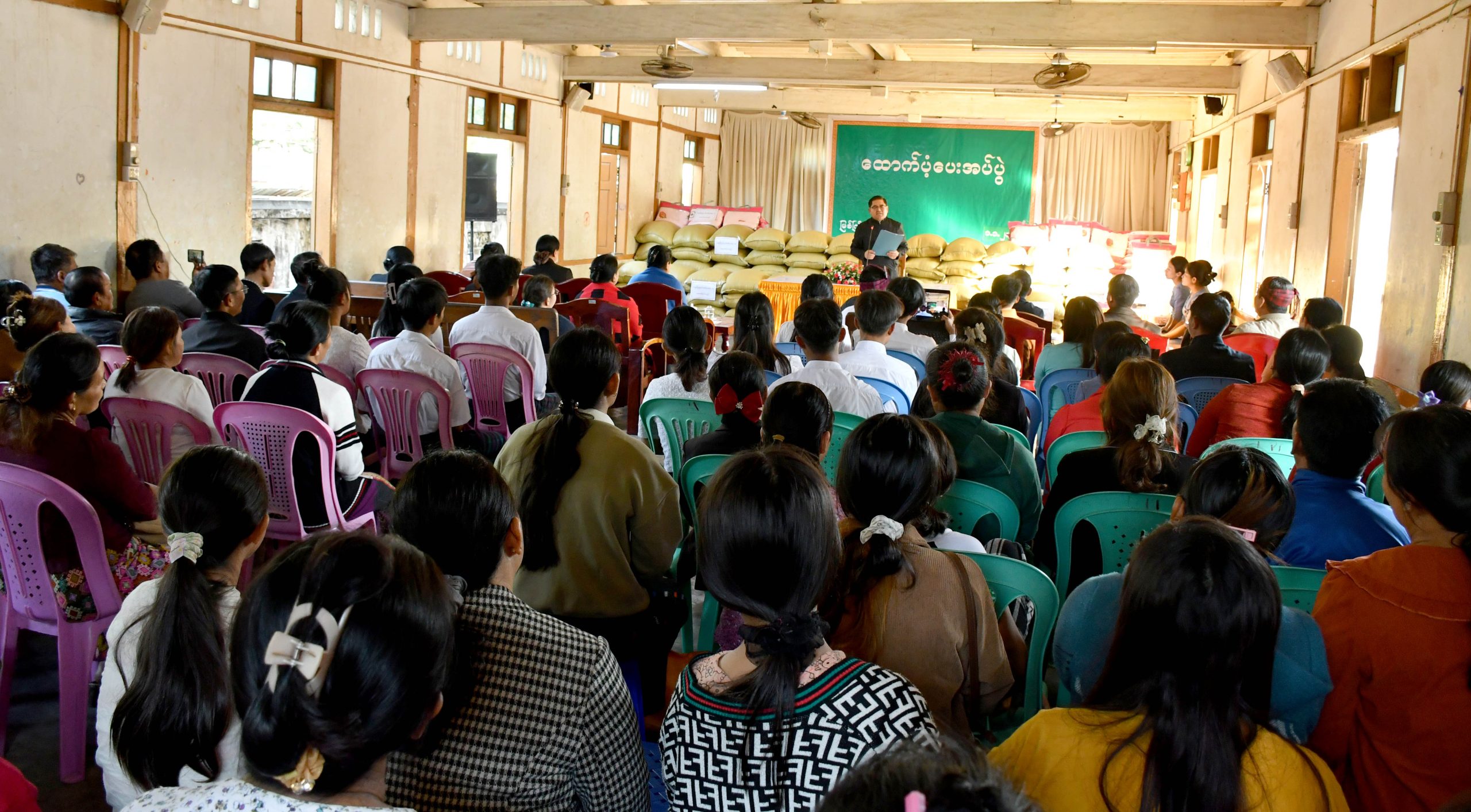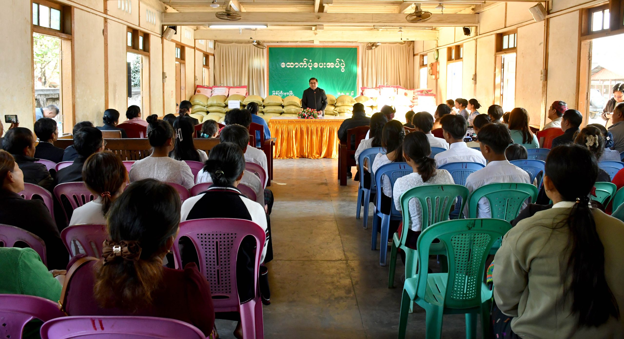 ထိုသို့ တွေ့ဆုံပြီး ပြည်နယ်ဝန်ကြီးချုပ်နှင့်ဇနီး၊ ပြည်နယ်အစိုးရအဖွဲ့ဝင်များက ယာယီတိမ်း ရှောင်စခန်းရှိ ဖားကန့်မြို့နယ် ရှရော်ခ၊ မနား၊ ဆိုင်းဂျာဘွမ်၊ ဆွတ်ရာ၊ မျောက်ဖြူကျေးရွာများမှ အိမ်ထောင်စု (၁၄၄)စုတို့အတွက် ဆန် (၂၄)ပြည်ပါ အိတ် (၁၀၀)အိတ်နှင့် ခြုံစောင်အထည် (၁၀၀) ထောက်ပံ့ပေးအပ်ခဲ့ကြရာ စခန်းတာဝန်ခံနှင့် တာဝန်ရှိသူများက ထောက်ပံ့ပေးအပ်မှုများအတွက် ကျေးဇူးတင်စကားနှင့် စခန်းအတွင်းခိုလှုံနေထိုင်လျက်ရှိသော မိသားစုများအတွက် လိုအပ်ချက်များကို တင်ပြခဲ့ကြရာ ပြည်နယ်ဝန်ကြီးချုပ်က မိမိတို့ ပြည်နယ်အစိုးရအဖွဲ့အနေဖြင့် ဒေသတွင်း ယာယီနေရပ်စွန့်ခွာပြည်သူများ နေထိုင်စားသောက်မှု အဆင်ပြေစေရေး စဉ်ဆက်မပြတ် ထောက်ပံ့ပေးအပ်လျက်ရှိသည့်အပြင် ယခုအခါ ဆောင်းရာသီရောက်ရှိပြီဖြစ်သည့်အတွက် ခြုံစောင်များကိုပါ ထောက်ပံ့ပေးအပ်ခြင်းဖြစ်ပါကြောင်း၊ အိမ်ထောင်စုများအနေဖြင့် ကျန်းမာရေးအလေးထားဂရုပြုနေ ထိုင်ကြရန်လိုကြောင်း မှာကြားခဲ့ပြီး အိမ်ထောင်စုများ သုံးရေချိုးရေလိုအပ်ချက်အတွက် ရေမော်တာ အရံဝယ်ယူထားနိုင်ရေး ငွေကျပ် ၃ သိန်းခွဲကို ထပ်မံထောက်ပံ့ပေးအပ်ကာ လိုအပ်ချက်များအပေါ် ပြည်နယ်အဆင့်ဌာနဆိုင်ရာ တာဝန်ရှိသူများနှင့် ညှိနှိုင်းပေါင်းစပ်၍ ဖြည့်ဆည်းဆောင်ရွက်ပေး ခဲ့သည်။