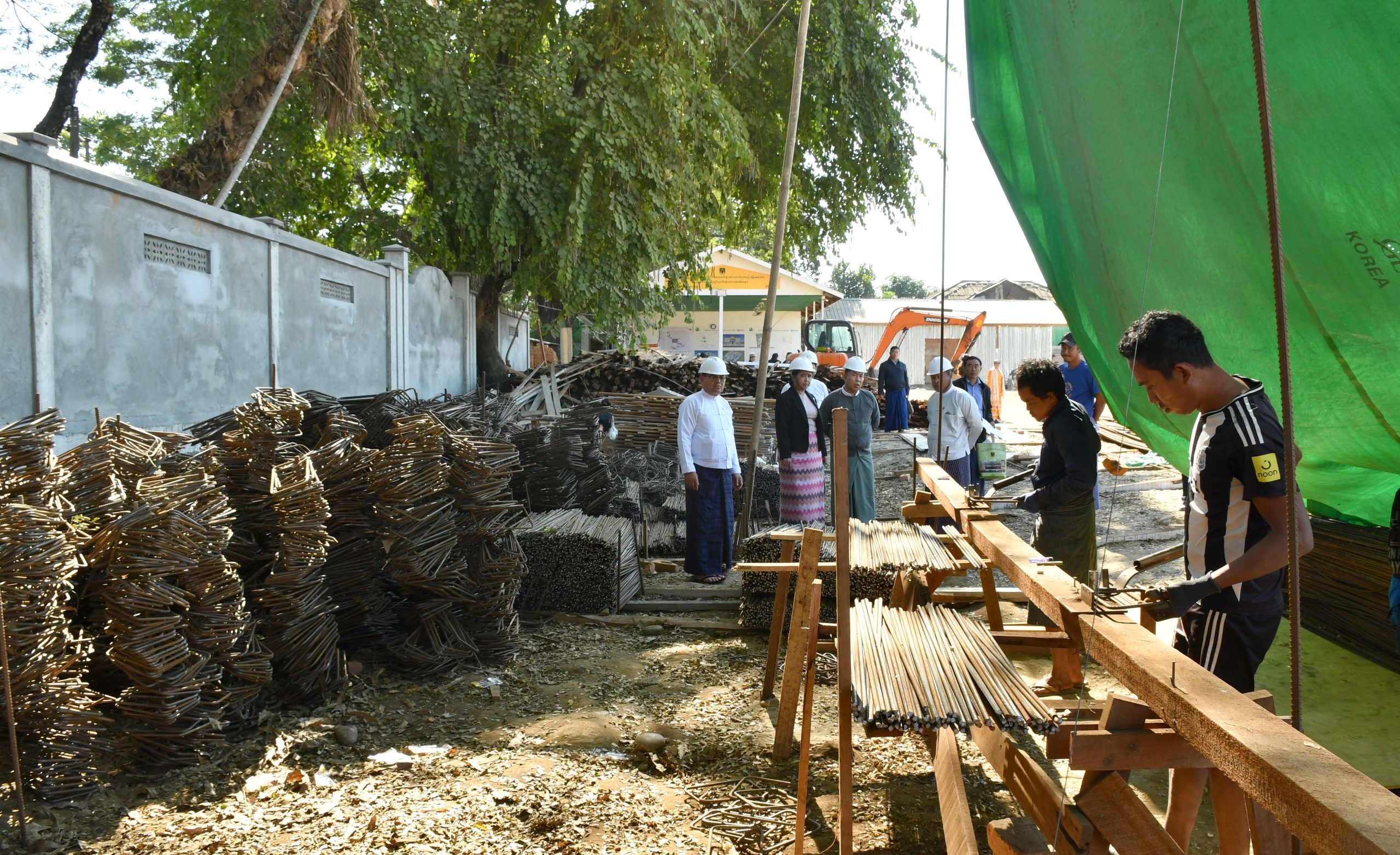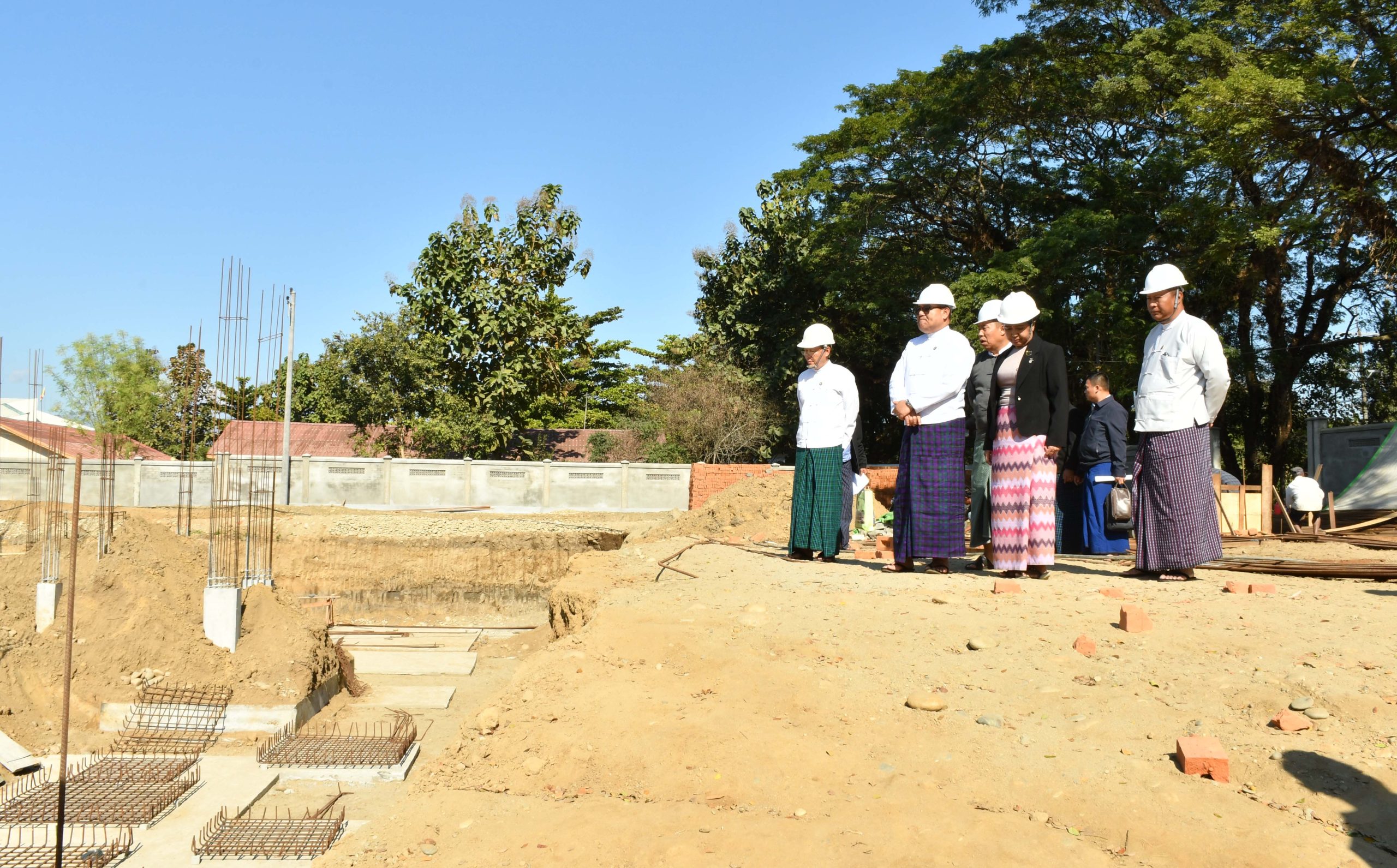 ထို့နောက် ပြည်နယ်ဝန်ကြီးချုပ်သည် ပြည်နယ်တရားလွှတ်တော်တရားသူကြီးချုပ်၊ ပြည်နယ်အစိုးရအဖွဲ့ဝင် ဝန်ကြီးများ၊ ပြည်နယ်ဥပဒေချူပ်၊ ပြည်နယ်အဆင့်ဌာနဆိုင်ရာ တာဝန်ရှိသူများနှင့်အတူ မြစ်ကြီးနားမြို့ မန်ခိန်ရပ်ကွက်အတွင်းရှိ ကွင်းအမှတ်- ၄ / ယောရင်ကွင်း၊ ဦးပိုင်အမှတ် ၃၅ /၂င ၊ ၃၅ /၂စ ၌ ကချင်ပြည်နယ်တရားလွှတ်တော်ရုံးအဆောက်အဦသစ် အလျား ၂၀၆ ပေ၊ အနံ ၁၅၃ ပေရှိ သံကူကွန်ကရစ်(၄)ထပ် အဆောက်အအုံ တည်ဆောက်ရေးလုပ်ငန်းခွင်သို့ သွားရောက်ကြည့်ရှုစစ်ဆေးခဲ့ကြရာ အဆိုပါ အဆောက်အဦသစ်အား ၂၀၂၅-၂၀၂၆ ဘဏ္ဍာရေးနှစ်အတွင်း ဆောင်ရွက်ပြီးစီးရမည့် မြေသားပြုပြင်ခြင်းလုပ်ငန်းနှင့် အောက်ခြေဖောင်ဒေးရှင်းဆောင်ရွက်ခြင်း လုပ်ငန်းများ၊ ခြံစည်းရိုးအုတ်ကာရံခြင်း၊ Ground Tank တည်ဆောက်ခြင်းလုပ်ငန်းများနှင့် ဆက်စပ်လုပ်ငန်းများ ဆောင်ရွက်နေမှု အခြေအနေများကို ကွင်းဆင်းကြည့်ရှုစစ်ဆေးခဲ့ကြကာ လုပ်ငန်းများ အရည်အသွေး ပြည့်မီစွာဖြင့် အချိန်မီပြီးစီးအောင် ဆောင်ရွက်ရေးမှာကြားခဲ့သည်။