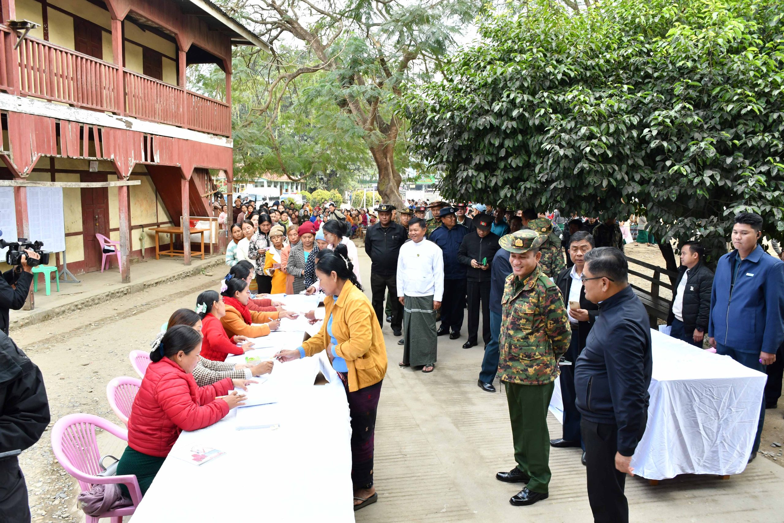 ကချင်ပြည်နယ်ဝန်ကြီးချုပ် ဦးခက်ထိန်နန်၊ ပြည်ထောင်စုရွေးကောက်ပွဲကော်မရှင်အဖွဲ့ဝင် ကချင်ပြည်နယ်တာဝန်ခံ ဦးခင်ဇော်၊မြောက်ပိုင်းတိုင်းစစ်ဌာနချုပ်တိုင်းမှူး ဗိုလ်ချုပ်အောင်ဇော်ထွေးနှင့် တာဝန်ရှိသူများသည် ဇန်နဝါရီ ၃ ရက် ညနေ ၃ နာရီက ပါတီစုံဒီမိုကရေစီအထွေထွေရွေးကောက်ပွဲ အပိုင်း(၂)အဖြစ် ဆက်လက်ကျင်းပမည့် ဝိုင်းမော်မြို့နယ်၊ မိုင်းနားကျေးရွာအတွင်းရှိ မဲဆန္ဒရှင် ပြည်သူများ ဆန္ဒမဲပေးရာတွင် ကြန့်ကြာမှုမရှိစေရေး အဆိုင်း (၂)ဆိုင်းခွဲ၍ လက်တွေ့စမ်းသပ် ဆန္ဒမဲပေးနေမှုများအား ကွင်းဆင်းကြည့်ရှုစစ်ဆေးခဲ့ကြသည်။