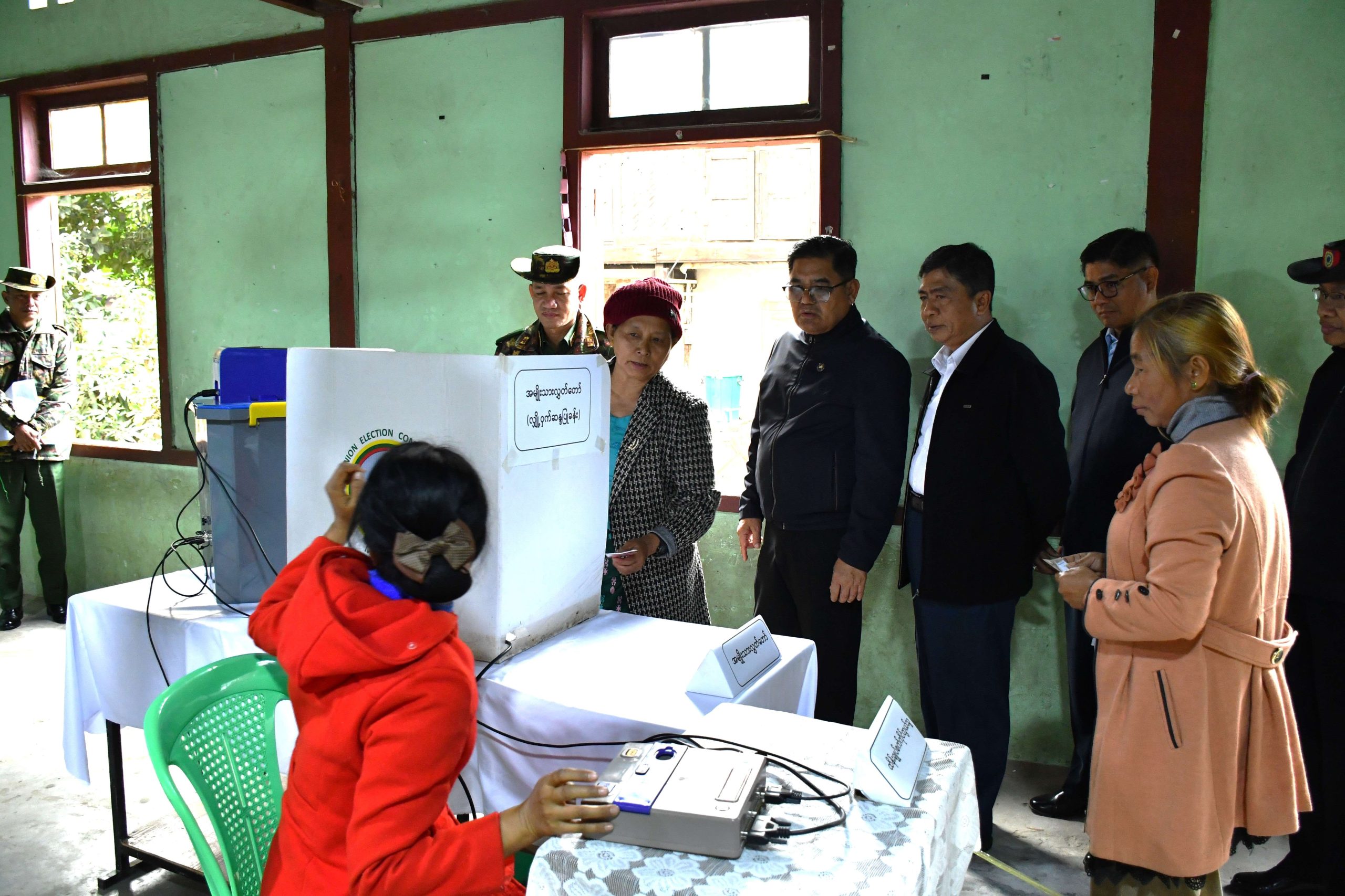 ထိုသို့ကွင်းဆင်းစစ်ဆေးရာတွင် ပြည်နယ်ဝန်ကြီးချုပ်၊ ကချင်ပြည်နယ်တာဝန်ခံ၊ တိုင်းမှူးနှင့် တာဝန်ရှိသူများသည် လာမည့် ၂၀၂၆ ခုနှစ်၊ ဇန်နဝါရီ ၁၁ ရက်နေ့တွင် အပိုင်း(၂)အဖြစ် ရွေးကောက်ပွဲကျင်းပပြုလုပ်သွားမည့် ဝိုင်းမော်မြို့နယ်၊ မိုင်းနားကျေးရွာ၊ အခြေခံပညာအထက်တန်းကျောင်း (မိုင်းနား)၌ ဖွင့်လှစ်သွားမည့် မဲရုံအမှတ် (၃၉)၌ ခရိုင်/ မြို့နယ်ရွေးကောက်ပွဲကော်မရှင်အဖွဲ့ခွဲ ဥက္ကဋ္ဌများနှင့် တာဝန်ရှိသူများ၊ မဲရုံမှူး၊ ဒုတိယမဲရုံမှူးနှင့် မဲရုံဝန်ထမ်းများက ကျေးရွာအတွင်းမှ မဲဆန္ဒရှင် ပြည်သူများအား ဆန္ဒမဲပေးရာတွင် လွယ်ကူချောမောစွာ မဲပေးနိုင်ရေး အဆိုင်း (၂)ဆိုင်းခွဲ၍ သက်ဆိုင်ရာလွှတ်တော်အလိုက် မဲပေးစက်ဖြင့် မဲပေးခြင်းလုပ်ငန်းစဉ်အတိုင်း လျှို့ဝှက်ဆန္ဒမဲပေးခြင်းအား စမ်းသပ်သရုပ်ပြမဲပေးမှု အခြေအနေများကို လှည့်လည်ကြည့်ရှုစစ်ဆေးခဲ့ကြသည်။