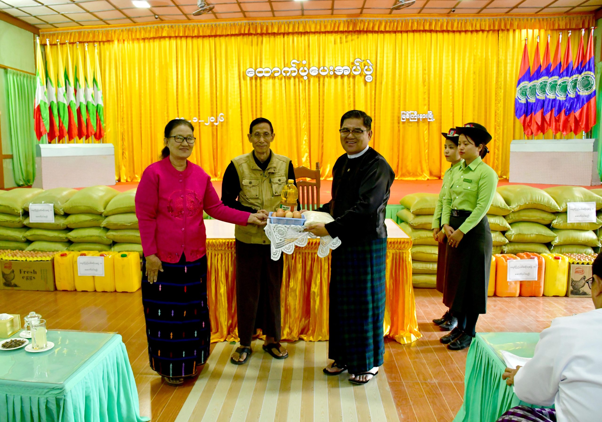 ထိုသို့ တွေ့ဆုံစဉ် ပြည်နယ်ဝန်ကြီးချုပ်၊ ပြည်နယ်ဝန်ကြီးနှင့် ပြည်နယ်ဥပဒေချုပ်တို့က ဗန်းမော်မြို့နယ်နှင့် မိုးမောက်မြို့နယ်များမှ ယာယီတိမ်းရှောင်လာသောအိမ်ထောင်စု (၂၁၂)စုတို့အတွက် ဆန် (၂၄)ပြည်ပါအိတ် (၂၁၂)အိတ်၊ ဆီ (၂၁၂) ပိဿာနှင့် ကြက်ဥ (၄၂၄၀)လုံးအား ထောက်ပံ့ပေးအပ်ရာ တိမ်းရှောင်ပြည်သူတစ်ဦးက ထောက်ပံ့ပေးအပ်မှုများအတွက် ကျေးဇူးတင်စကားနှင့် စခန်းနေမိသားစုများအတွက် လိုအပ်ချက်များကို တင်ပြခဲ့ကြသည်။