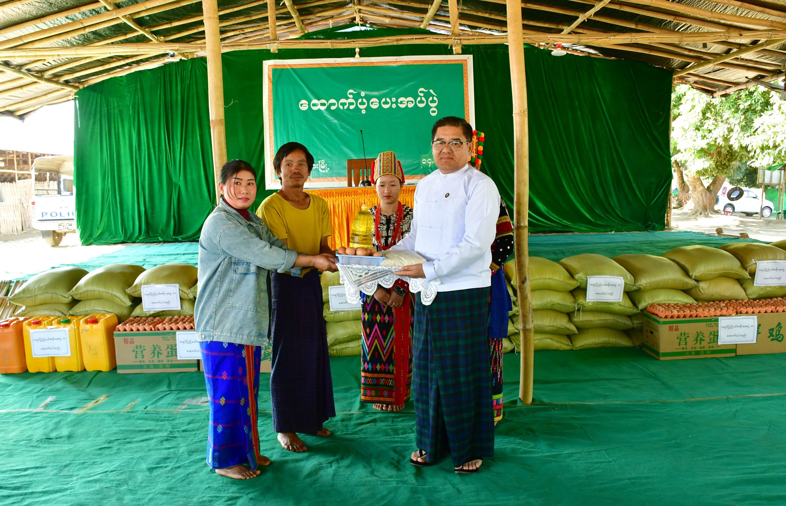 ထိုသို့ တွေ့ဆုံရာတွင် ပြည်နယ်ဝန်ကြီးချုပ်နှင့် ပြည်နယ်အစိုးရအဖွဲ့ဝင်များသည် မန်ခိန်ရပ်ကွက်အတွင်းရှိ စန်းကားယာယီတိမ်းရှောင်စခန်း၊ ချီဖွေယာယီတိမ်းရှောင်စခန်းများ၊ နောင်နန်းကျေးရွာအုပ်စု၊ မော်တောင်းကျေးရွာနှင့် ဂျော်မဆတ် ယာယီတိမ်းရှောင်စခန်းများတွင် ခိုလှုံနေထိုင်လျက်ရှိသော ဝိုင်းမော်မြို့နယ်အတွင်းရှိ ကျေးရွာများနှင့် ဖားကန့်မြို့နယ်အတွင်းရှိ ဆိုင်းခရာကျေးရွာများမှ နေရပ်စွန်ခွာ အိမ်ထောင်စု(၂၀၅)စုတို့အတွက် ဆန် (၂၄) ပြည်ပါအိတ် (၂၀၅) အိတ်၊ ဆီ (၂၀၅) ပိဿာနှင့် ကြက်ဥ(၄၁၀၀)လုံးတို့ကို ထောက်ပံ့ပေးအပ်ရာ စန်းကားယာယီတိမ်းရှောင်စခန်းတာဝန်ခံက ကျေးဇူးတင်စကားနှင့် စခန်းများအတွင်း လိုအပ်သည်များကို တင်ပြခဲ့သည်။