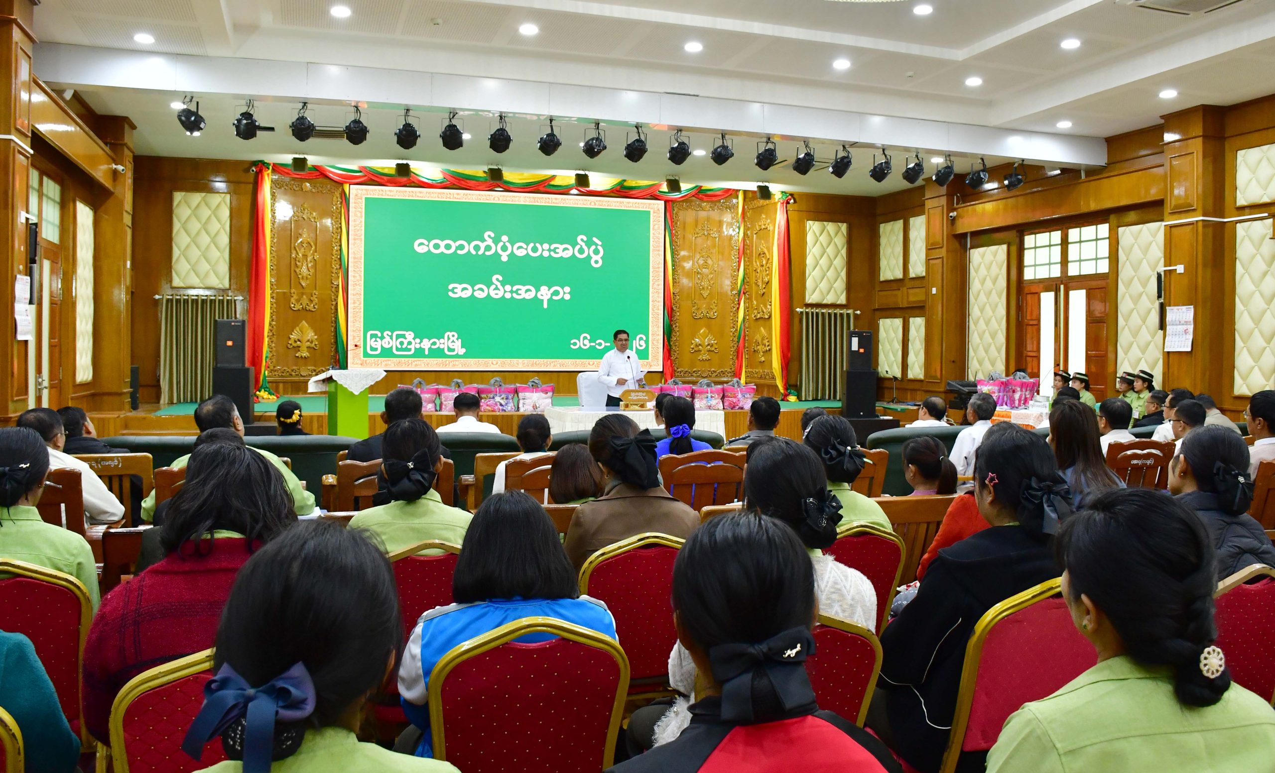 အဆိုပါ အခမ်းအနားတွင် ပြည်နယ်ဝန်ကြီးချုပ်က ဗန်းမော်တက္ကသိုလ်မှ သင်ကြားရေးဝန်ထမ်းများအား ၂၀၂၄ ခုနှစ်၊ ဒီဇင်ဘာလအတွင်းမှ စတင်၍ ဌာနဆိုင်ရာများ၊ ဝန်ထမ်းများနှင့် ဒေသခံ ပြည်သူများသည် နီးစပ်ရာဆွေမျိုးနေအိမ်များနှင့် နေရာဒေသအသီးသီးသို့ ယာယီတိမ်းရှောင်နေထိုင်ခဲ့ရပါကြောင်း၊ ထို့အတူ ဗန်းမော်တက္ကသိုလ်မှ သင်ကြားရေးနှင့်စီမံဝန်ထမ်းများအနေဖြင့် နီးစပ်ရာ ဆွေမျိုးများ နေထိုင်သည့် မြို့များရှိ တက္ကသိုလ်အသီးသီးသို့ တာဝန်ထမ်းဆောင်နေကြသည်ကို သိရှိရသည့်အတွက် ကျေးဇူးတင်ဝမ်းမြောက်မိပါကြောင်း၊ ပြည်နယ်အစိုးရအဖွဲ့အနေဖြင့် ဒေသတွင်းနယ်မြေအခြေအနေအရ နေရပ်များကို စွန့်ခွာ၍ ထွက်ပြေးတိမ်းရှောင်လာကြသော ပြည်သူများအား နေထိုင်စားသောက်မှုအဆင်ပြေစေရေး ဆောင်ရွက်ပေးလျက်ရှိသည့်အပြင် နိုင်ငံတော်မှလည်း လစဉ်တစ်ဦးလျှင် ငွေကျပ် ၂၀၀၀၀ နှုန်းထောက်ပံ့ပေးလျက်ရှိပါကြောင်း၊ ဆရာ၊ ဆရာများအနေဖြင့် အခက်အခဲများကို ရင်ဆိုင်ကြုံတွေ့ရမည်ဖြစ်သော်လည်း နိုင်ငံနှင့်မိမိတို့၏ ဌာနကို ချစ်သည့်စိတ်ဖြင့် ဆက်လက်တာဝန်ထမ်းဆောင်ပေးကြရန် လိုအပ်ပါကြောင်း အားပေးတိုက်တွန်းပြောကြားသည်။