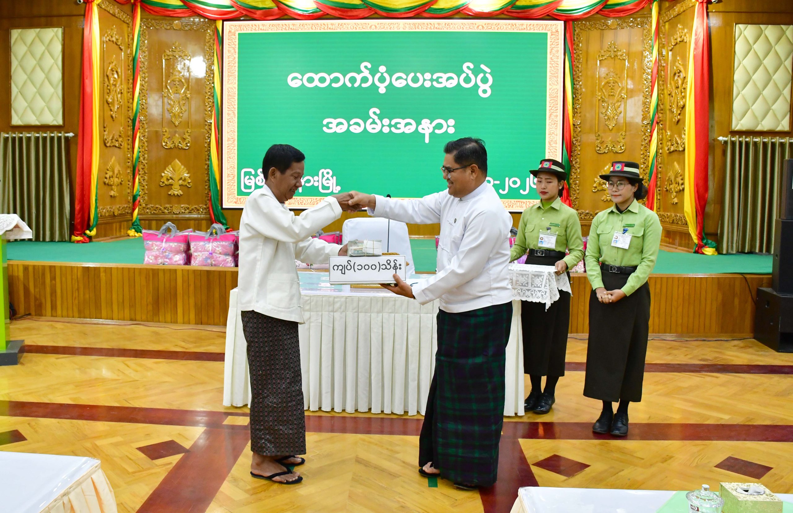 ယင်းနောက် ပြည်နယ်ဝန်ကြီးချုပ်နှင့် အဖွဲ့ဝင်များသည် ပြည်နယ်အစိုးရအဖွဲ့ရုံး မေခခန်းမ၌ ကျင်းပပြုလုပ်သည့် ဗန်းမော်ခရိုင်၊ ဗန်းမော်တက္ကသိုလ်မှ တာဝန်ခံပါမောက္ခချုပ်နှင့် ဆရာ၊ ဆရာမများ၊ ဝန်ထမ်းများအား ထောက်ပံ့ပေးအပ်ပွဲ အခမ်းအနားသို့ တက်ရောက်ခဲ့ကြသည်။