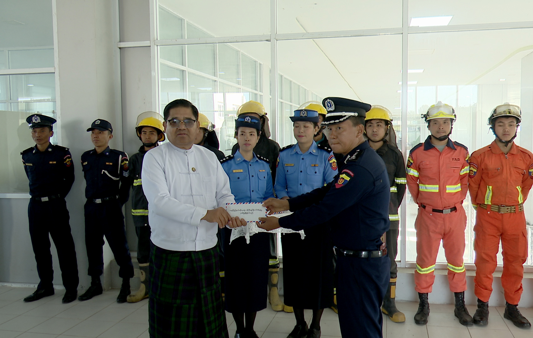 ကချင်ပြည်နယ်အစိုးရအဖွဲ့၏ ကြီးကြပ်လမ်းညွှန်မှုဖြင့် ကချင်ပြည်နယ်မီးသတ်ဦးစီးဌာနနှင့် မြစ်ကြီးနားလေဆိပ်တို့ ပူးပေါင်း၍ လေဆိပ်မီးဘေးကြိုတင်ကာကွယ်ရေးဟောပြောပွဲနှင့် မီးဘေးလုံခြုံရေးစီမံချက်ဇာတ်တိုက်လေ့ကျင့်ခြင်း အခမ်းအနားကို ယနေ့ နံနက် ၉ နာရီက မြစ်ကြီးနားလေဆိပ်အဆောက်အအုံ၌ ကျင်းပပြုလုပ်ရာ ပြည်နယ်ဝန်ကြီးချုပ် ဦးခက်ထိန်နန်၊ မြောက်ပိုင်းတိုင်းစစ်ဌာနချုပ်တိုင်းမှူး ဗိုလ်ချုပ်အောင်ဇော်ထွေးနှင့် တာဝန်ရှိသူများ တက်ရောက်ကြသည်။
