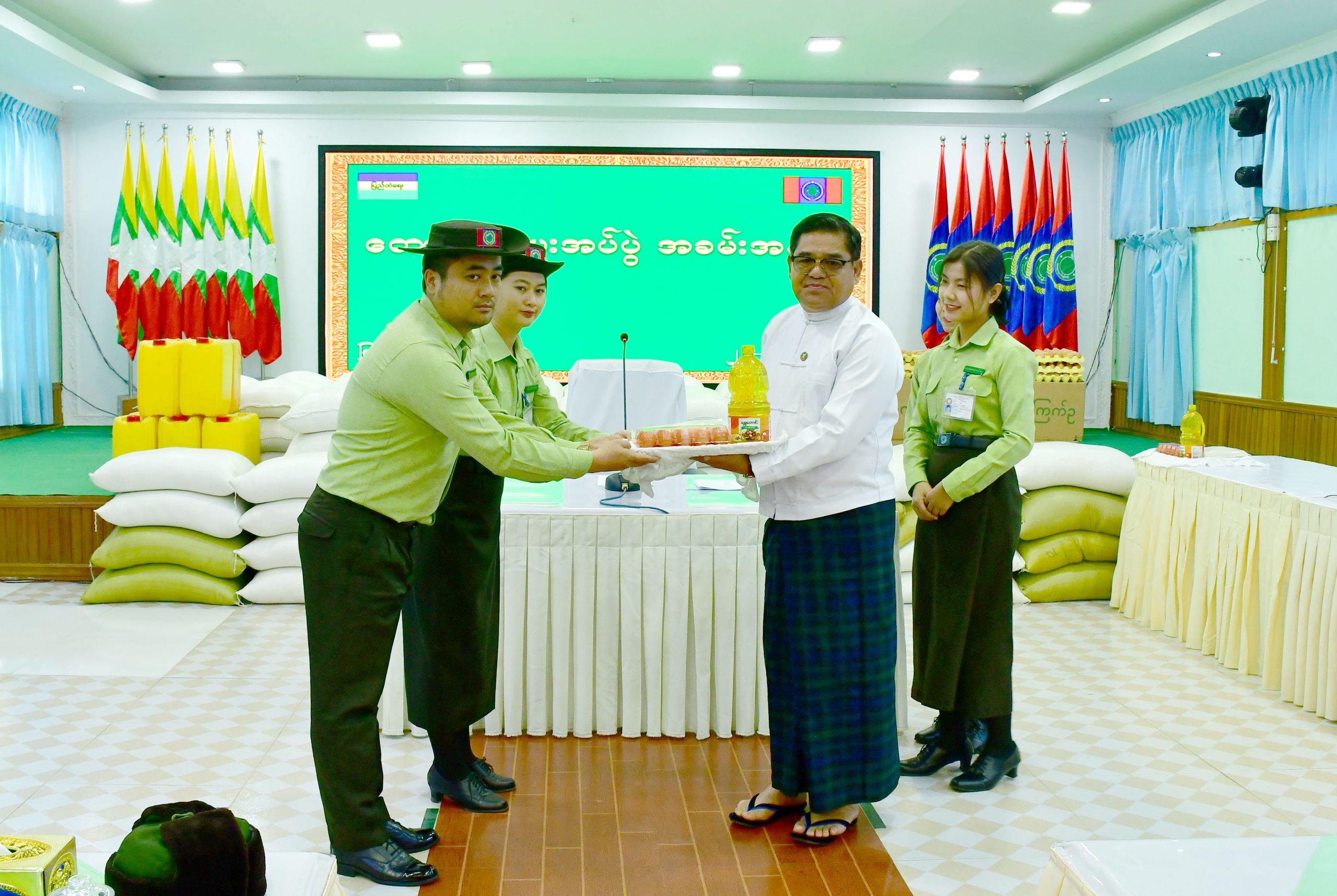 အဆိုပါ အခမ်းအနားတွင် ပြည်နယ်ဝန်ကြီးချုပ်၊ ပြည်နယ်တရားလွှတ်တော်တရားသူကြီးချုပ်နှင့် ပြည်နယ်အစိုးရအဖွဲ့ဝင်များက နယ်မြေအခြေအနေအရ ယာယီတိမ်းရှောင်လာကြသည့် ဗန်းမော်ခရိုင်နှင့် ချီဖွေခရိုင်အတွင်းမှ ဝန်ထမ်းများ၊ ဆွမ်ပရာဘွမ်မြို့နယ်၊ ကံပိုင်တည်မြို့၊ ဆင်ဘိုမြို့နှင့် ဆဒုံးမြို့အထွေထွေအုပ်ချုပ်ရေးဦးစီးဌာနများမှ ဝန်ထမ်းများအတွက် တစ်ဦးလျှင် ဆန်(၁)အိတ်၊ ဆီ (၁)ပိဿာ၊ ကြက်ဥတစ်ကတ်နှုန်းဖြင့် စုစုပေါင်းဝန်ထမ်း (၂၁၁)ဦးတို့အတွက် တန်ဖိုးငွေကျပ် (၂၃၄၂၁၀၀၀) ကို အသီးသီးထောက်ပံ့ပေးအပ်ခဲ့ကြရာ ယာယီတိမ်းရှောင်ဝန်ထမ်းများကိုယ်စား အရာထမ်းတစ်ဦးက ကျေးဇူးတင်စကားပြန်လည်ပြောကြားသည်။