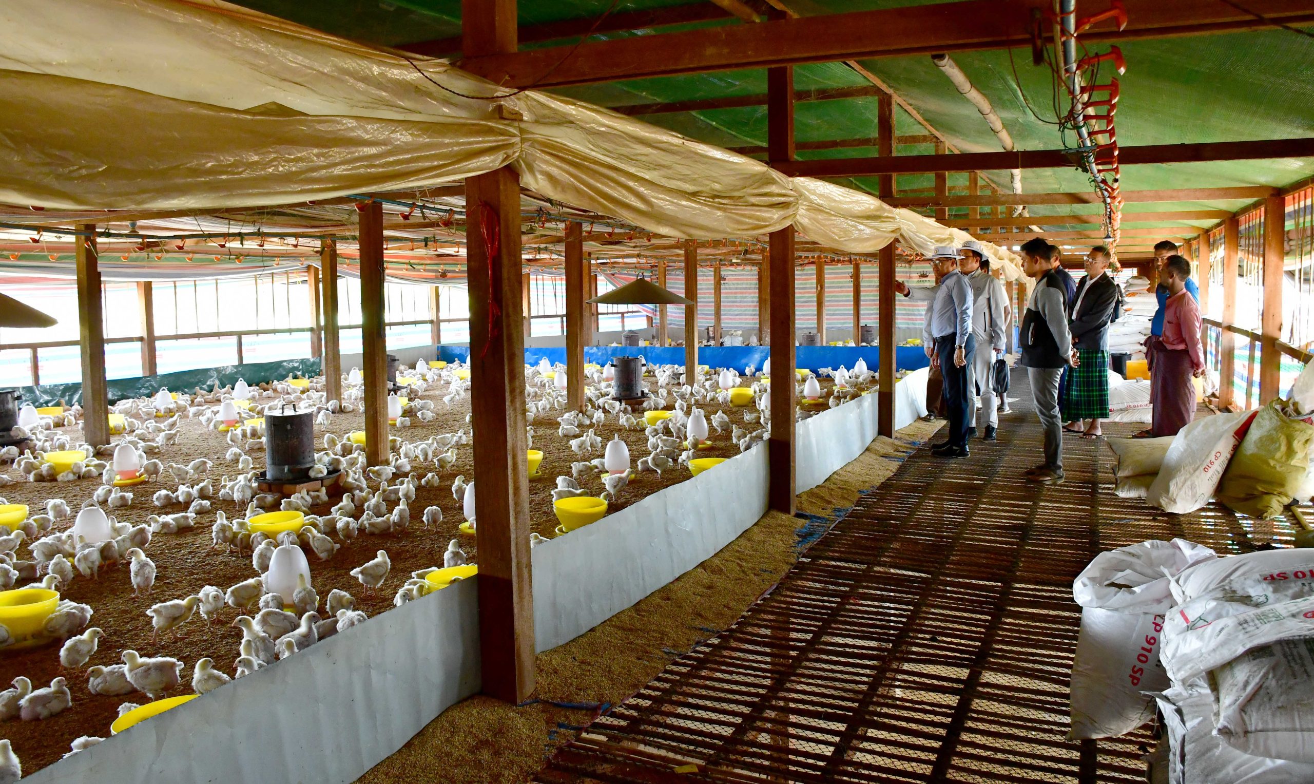 ကချင်ပြည်နယ်အစိုးရအဖွဲ့အနေဖြင့် ဒေသတွင်း စားရေရိက္ခာဖူလုံရေးတွင် အဓိကကျသည့် သားငါးစားသုံးမှုဖူလုံလာစေရေးနှင့် ဈေးနှုန်းတည်ငြိမ်စွာ ဝယ်ယူစားသောက်နိုင်ရေးအတွက် ပလန ကျေးရွာအုပ်စု၊ ငွေပျော်စံပြကျေးရွာအနီးတွင် အသားတိုးကြက် မွေးမြူရေးခြံများတည်ဆောက်၍ မွေးမြူရေးလုပ်ငန်းဆောင်ရွက်လျက်ရှိသည့် အခြေအနေများကို ပြည်နယ်ဝန်ကြီးချုပ် ဦးခက်ထိန်နန်သည် တာဝန်ရှိသူများနှင့်အတူ ကွင်းဆင်းစစ်ဆေးခဲ့ကြသည်။