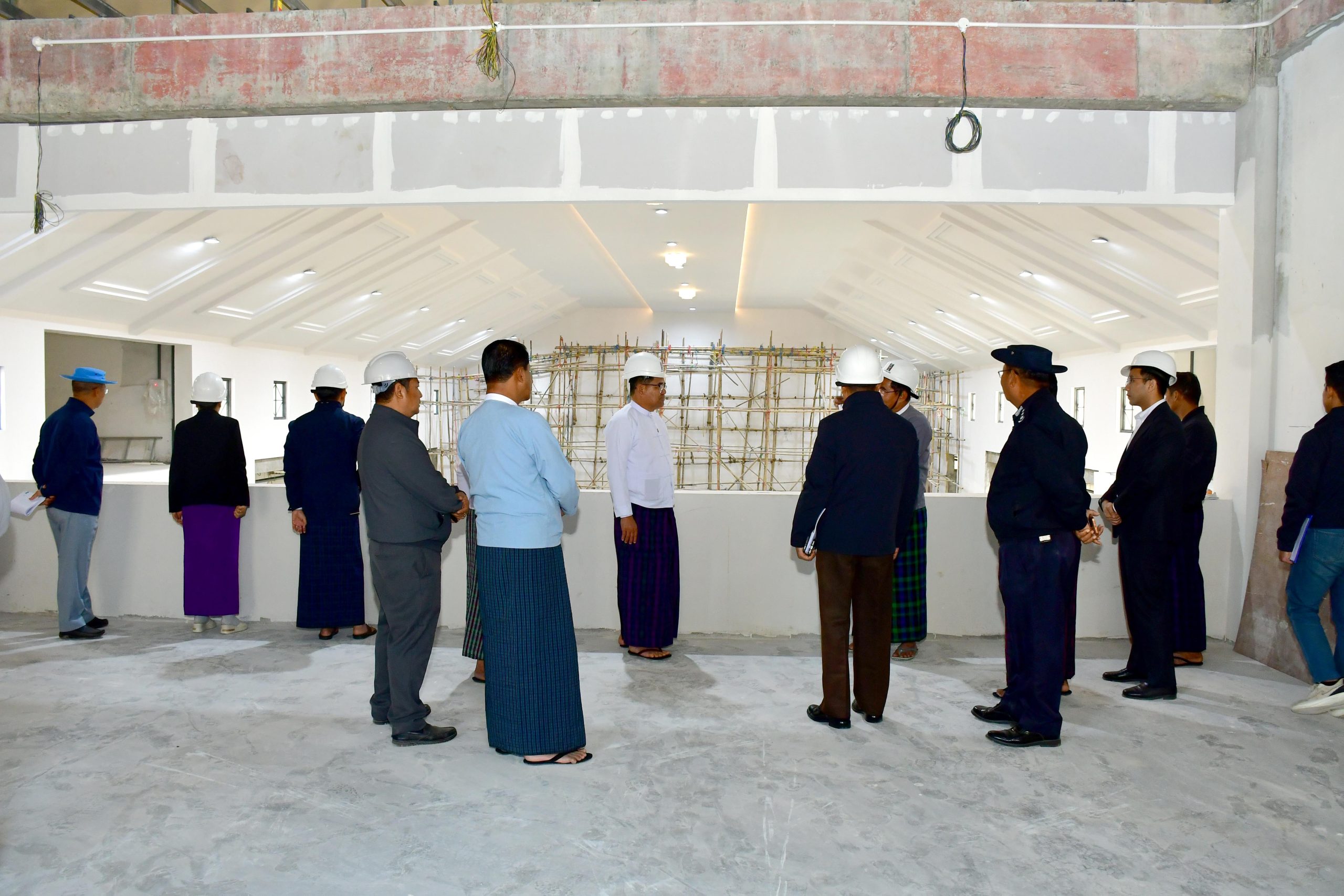 ထို့နောက် ပြည်နယ်ဝန်ကြီးချုပ်၊ ပြည်နယ်အစိုးရအဖွဲ့ဝင်များနှင့် ပြည်နယ်အဆင့်ဌာနဆိုင်ရာ တာဝန်ရှိသူများက မြို့တော်ခန်းမသစ် အဆောက်အအုံ အကြမ်းထည်တည်ဆောက်ပြီးစီးမှု အခြေအနေများနှင့် ခန်းမအတွင်း အခန်းဖွဲ့စည်းပုံများ၊ ပင်မခန်းမကြီး ပြင်ဆင်ဆောက်လုပ်သွားမည့် အစီအစဉ်များကို လှည့်လည်ကြည့်ရှုစစ်ဆေးခဲ့ပြီး လိုအပ်သည်များကို ဌာနဆိုင်ရာ တာဝန်ရှိသူများနှင့် ပေါင်းစပ်ညှိနှိုင်းဆောင်ရွက်ပေးခဲ့သည်။