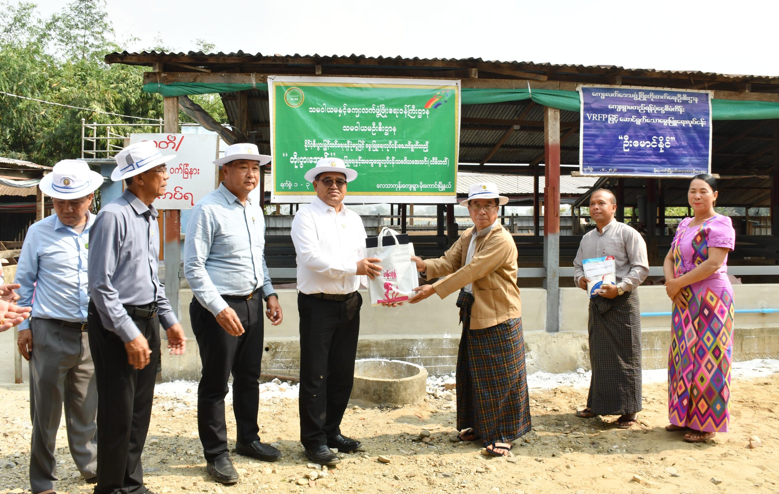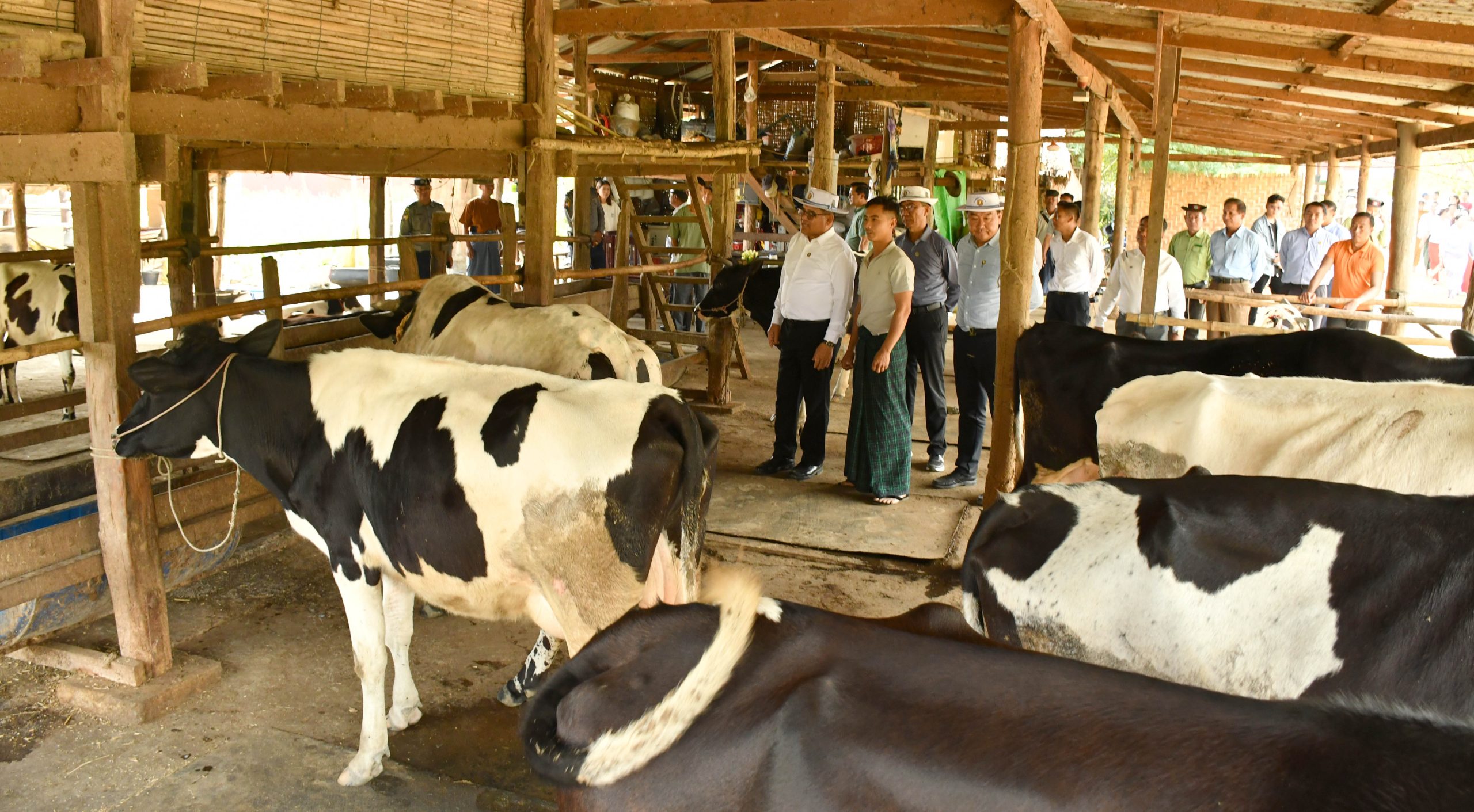 ဆက်လက်၍ အဆိုပါကျေးရွာအတွင်း နိုင်ငံ့စီးပွားမြှင့်တင်ရေး ရန်ပုံငွေပံ့ပိုးကူညီထောက်ပံ့မှုဖြင့် နို့စားနွားမွေးမြူရေးလုပ်ငန်း ဆောင်ရွက်လျက်ရှိသည့် ဦးစိုးထက်ပိုင် ခြံဝင်းအတွင်း နို့စားနွားကောင်ရေ ၂၆ ကောင်ကျော် မွေးမြူထားရှိမှုတို့ကို ကြည့်ရှုစစ်ဆေးခဲ့ကြကာ မွေးမြူရေးအထောက် အကူပြုဆေးဝါးများကို ထောက်ပံ့ပေးအပ်ခဲ့ကြသည်။