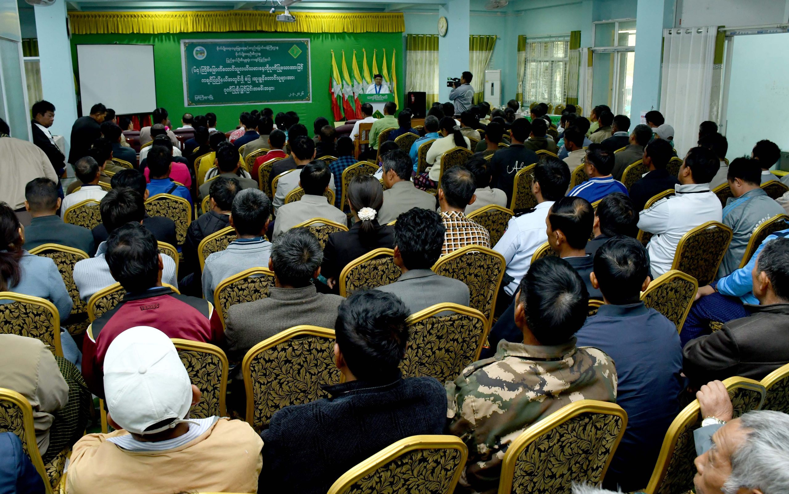 ရှေးဦးစွာ ပြည်ထောင်စုသမ္မတမြန်မာနိုင်ငံတော်၊ ယာယီသမ္မတ၊ နိုင်ငံတော်လုံခြုံရေးနှင့် အေး ချမ်းသာယာရေးကော်မရှင်ဥက္ကဋ္ဌ ဗိုလ်ချုပ်မှူးကြီး သတိုးမဟာသရေစည်သူ သတိုးသီရိသုဓမ္မ မင်းအောင်လှိုင်ထံမှ ပေးပို့လာသည့် သဝဏ်လွှာအား ပြည်နယ်ဝန်ကြီးချုပ် ဦးခက်ထိန်နန်က ဖတ်ကြားသည်။