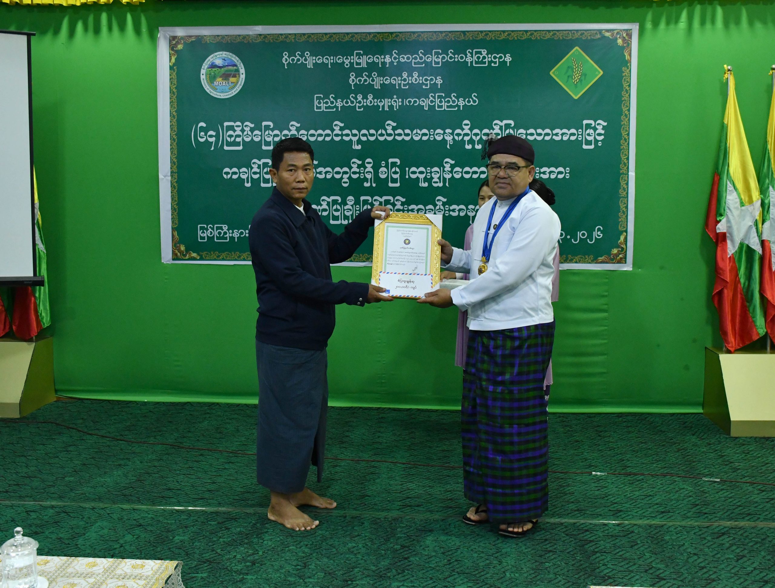 ယင်းနောက် ပြည်နယ်ဝန်ကြီးချုပ်နှင့် ပြည်နယ်အစိုးရအဖွဲ့ဝင်များက ပြည်နယ်အတွင်း ခရိုင်အလိုက် စိုက်ပျိုးထုတ်လုပ်မှုကဏ္ဍတွင် စွမ်းစွမ်းတမံဆောင်ရွက်ခဲ့ကြသော တောင်သူများအနက် အထွက်နှုန်းတိုးတက်အောင် ဆောင်ရွက်နိုင်သည့်အပြင် အခြားတောင်သူများကို စည်းရုံးပြီး အားကြိုးမာန်တက်ဆောင်ရွက်ခဲ့မှုအတွက် စံပြထူးချွန်တောင်သူဆုနှင့် သီးနှံအထွက်နှုန်းတိုးတက်အောင်၊ သီးထပ်စွမ်းအား အမြင့်ဆုံးရအောင် ဆောင်ရွက်နိုင်မှုအတွက် စံပြတောင်သူဆုရ တောင်သူများအား ဂုဏ်ပြုဆုများကို အသီးသီးပေးအပ်ချီးမြှင့်ခဲ့ကြသည်။