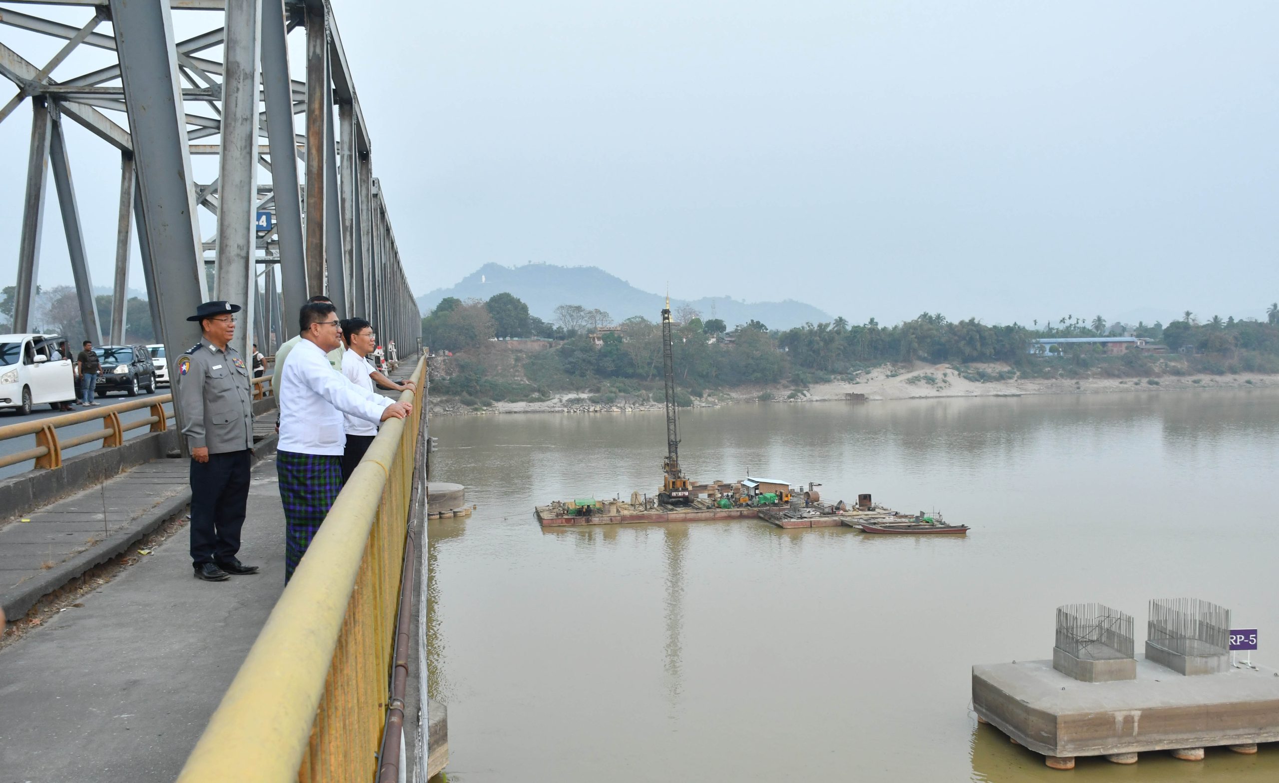 ယင်းနောက် ပြည်နယ်ဝန်ကြီးချုပ်နှင့် အဖွဲ့ဝင်များသည် ဗလမင်းထင်အမှတ်(၁)တံတားမှတစ်ဆင့် ဗလမင်းထင် အမှတ် (၂) တံတားရေလယ်တိုင်များ တည်ဆောက်နေမှုအခြေအနေများနှင့် မြစ်ကြောင်းရှင်းလင်းရေးလုပ်ငန်းများ ဆောင်ရွက်နေမှုအခြေအနေများ၊ မြစ်ကြောင်းရှင်းလင်းရေးလုပ်ငန်းကြောင့် ရေစီးကြောင်းပြောင်းလဲမှုဖြစ်ပေါ်ပြီး ဝိုင်းမော်ဘက်ကမ်းအား တိုက်စားနိုင်မှုလျော့ကျနိုင်မည့် အခြေအနေများကို ကြည့်ရှုစစ်ဆေးခဲ့ကြကြောင်း သိရသည်။