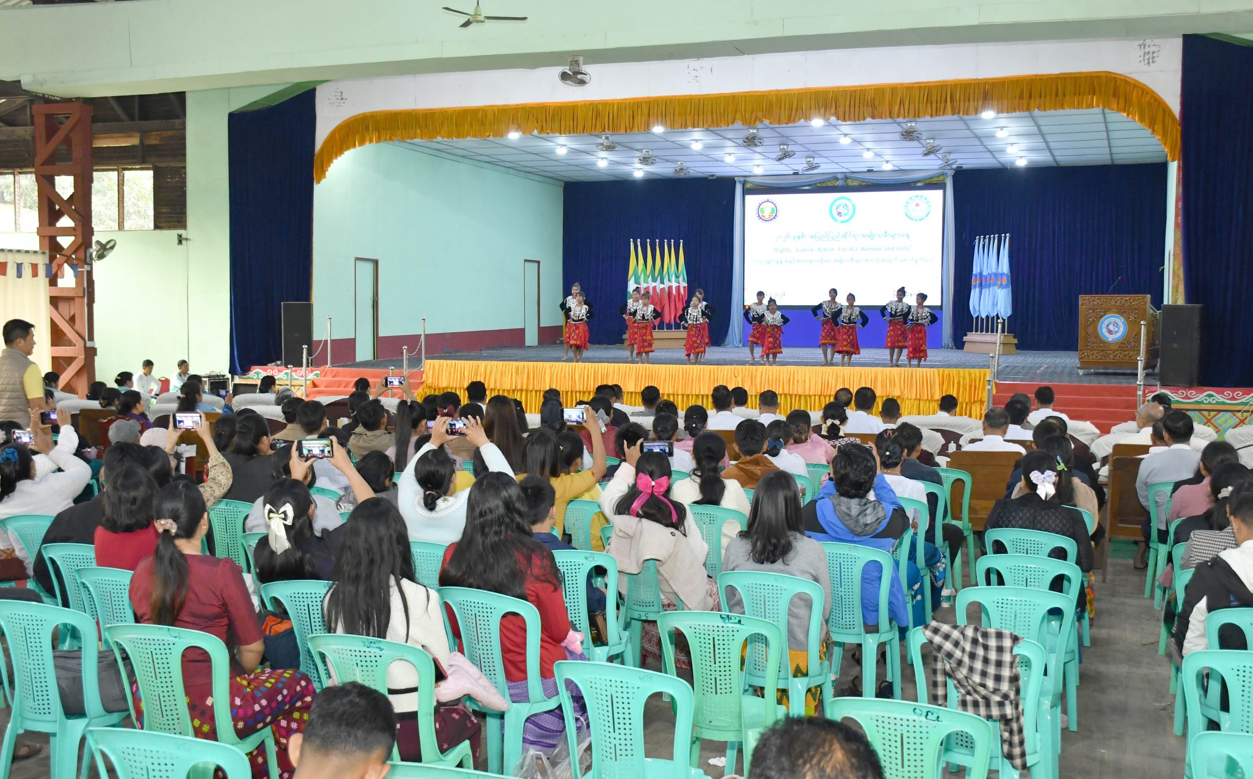“တရားမျှတမှုနှင့် အခွင့်အရေးများရရှိရေး အမျိုးသမီးများအားလုံးအတွက် ဆောင်ရွက်ပေး” ဆောင်ပုဒ်ဖြင့် ၂၀၂၆ ခုနှစ်၊ အပြည်ပြည်ဆိုင်ရာအမျိုးသမီးများနေ့ အထိမ်းအမှတ်အခမ်းအနားကို ယနေ့ နံနက်ပိုင်းက ကချင်ပြည်နယ်၊ မြစ်ကြီးနားမြို့ ပြည်သူ့အားကစားကွင်းအတွင်းရှိ မိုးလုံလေလုံအားကစားခန်းမ၌ ကျင်းပပြုလုပ်ရာ ပြည်နယ်ဝန်ကြီးချုပ် ဦးခက်ထိန်နန် တက်ရောက်သည်။