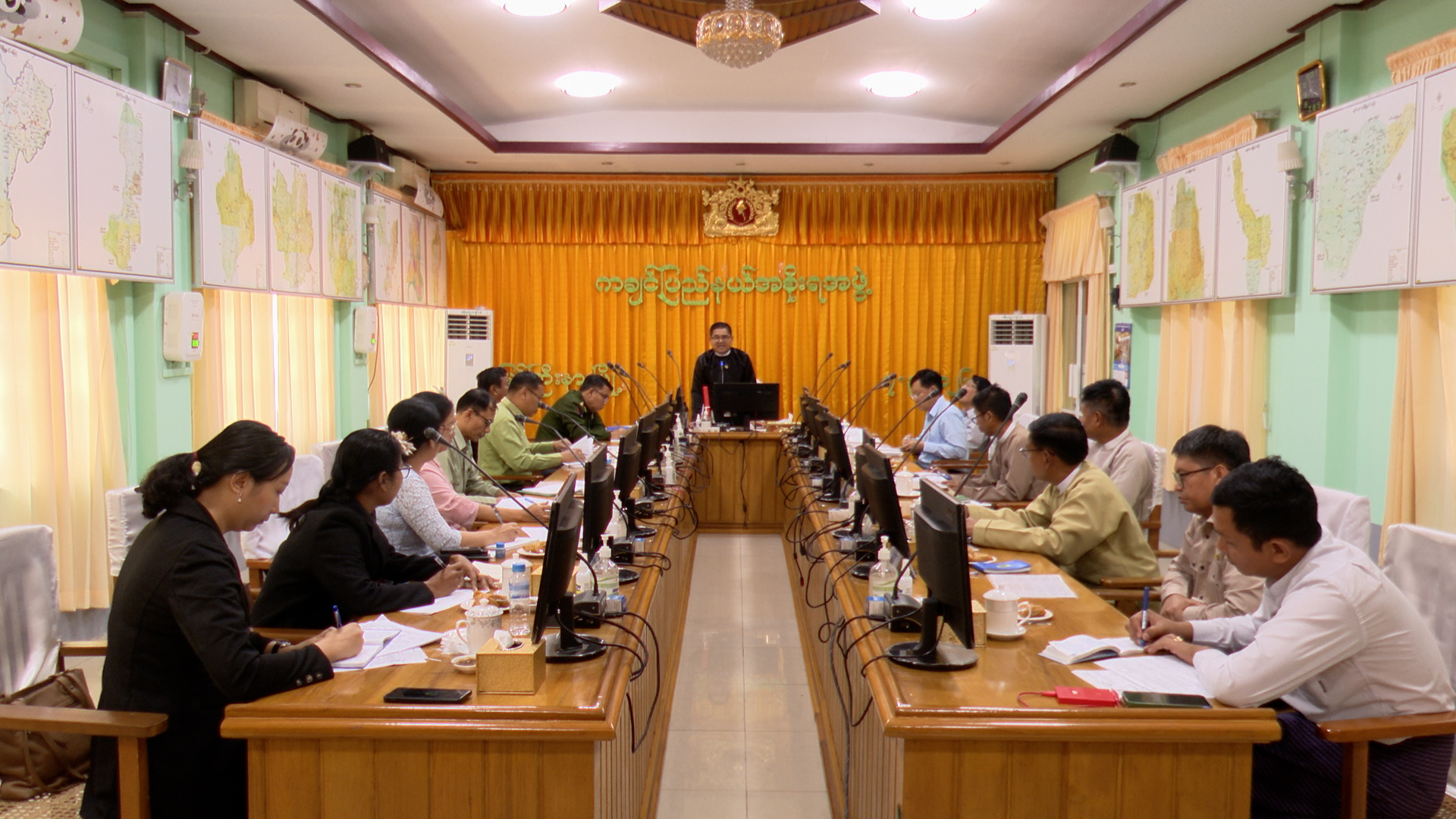 ကချင်ပြည်နယ်အတွင်း တဖက်နိုင်ငံသို့ သွင်းကုန်ပစ္စည်းများနှင့်ပတ်သက်၍ တရားဝင်သွင်းကုန်လိုင်စင်ဖြင့် တင်သွင်းခွင့်ပြုနိုင်ရေးနှင့် စစ်ဆေးဆောင်ရွက်နိုင်ရေးတို့အတွက် မိုင်းနားအခြေပြုကံပိုင်တည်ကုန်သွယ်ရေးစခန်း ယာယီယာဉ်စစ်ဆေးကွင်း ဖွင့်လှစ်ဆောင်ရွက်ရာတွင် လုပ်ငန်းများအဆင်ပြေချောမွေ့စွာ ဆောင်ရွက်နိုင်ရေးအတွက် လုပ်ငန်းညှိနှိုင်းအစည်းအဝေးကို ယနေ့ နံနက် ၈ နာရီက ပြည်နယ်အစိုးရအဖွဲ့ရုံး မလိခခန်းမ၌ ကျင်းပပြုလုပ်ခဲ့သည်။