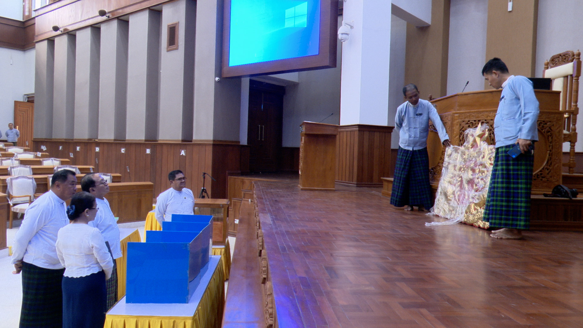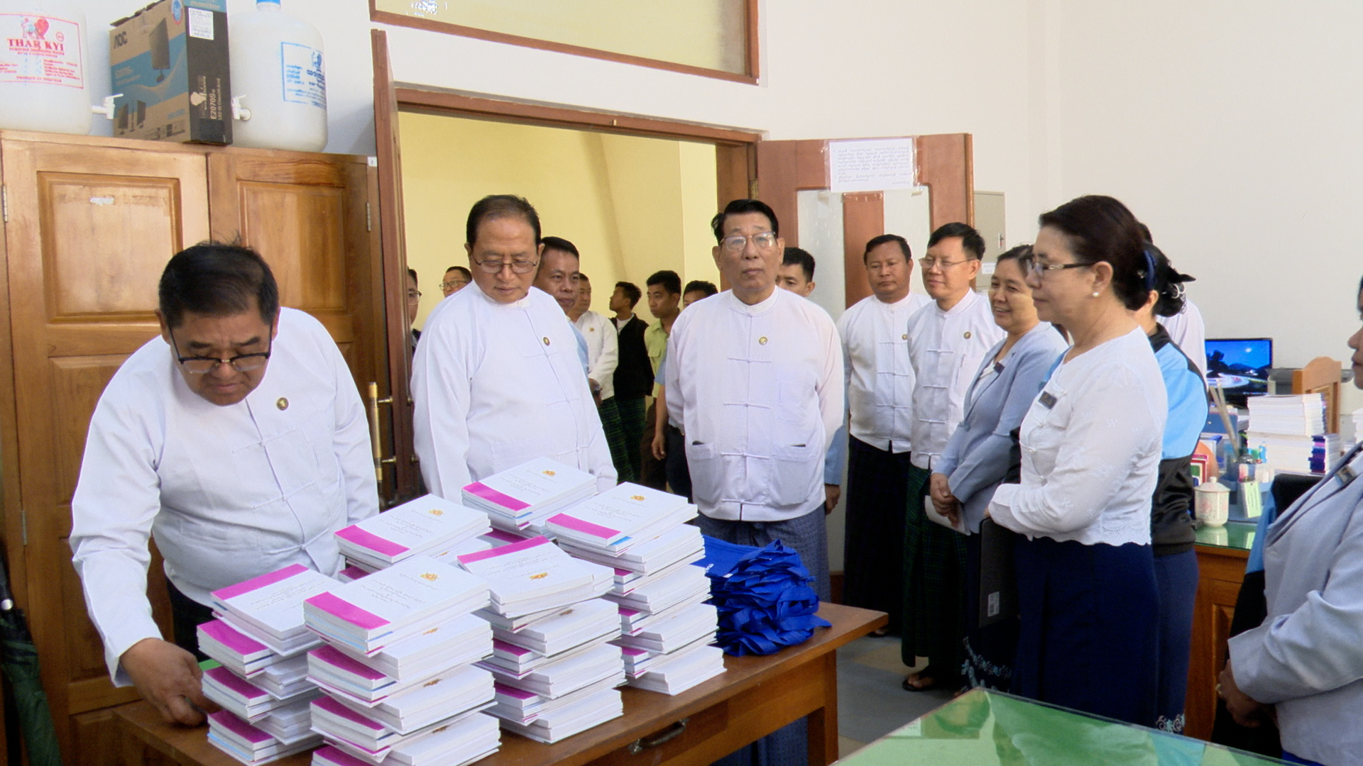 ကချင်ပြည်နယ်အတွင်း တတိယအကြိမ်ကချင်ပြည်နယ်လွှတ်တော်ပထမပုံမှန် အစည်းအဝေးကျင်းပနိုင်ရေးအတွက် ကြိုတင်ပြင်ဆင်ဆောင်ရွက်လျက်ရှိရာ လွှတ်တော်အစည်းအဝေးကျင်းပရေး ဦးစီးကော်မတီနာယက၊ ပြည်နယ်ဝန်ကြီးချုပ် ဦးခက်ထိန်နန်သည် မတ် ၁၀ ရက် နံနက် ၉ နာရီက လွှတ်တော်ရုံးအတွင်း ပြင်ဆင်ဆောင်ရွက်ပြီးစီးမှု အခြေအနေများကို သွားရောက်ကြည့်ရှုစစ်ဆေးခဲ့ကြသည်။